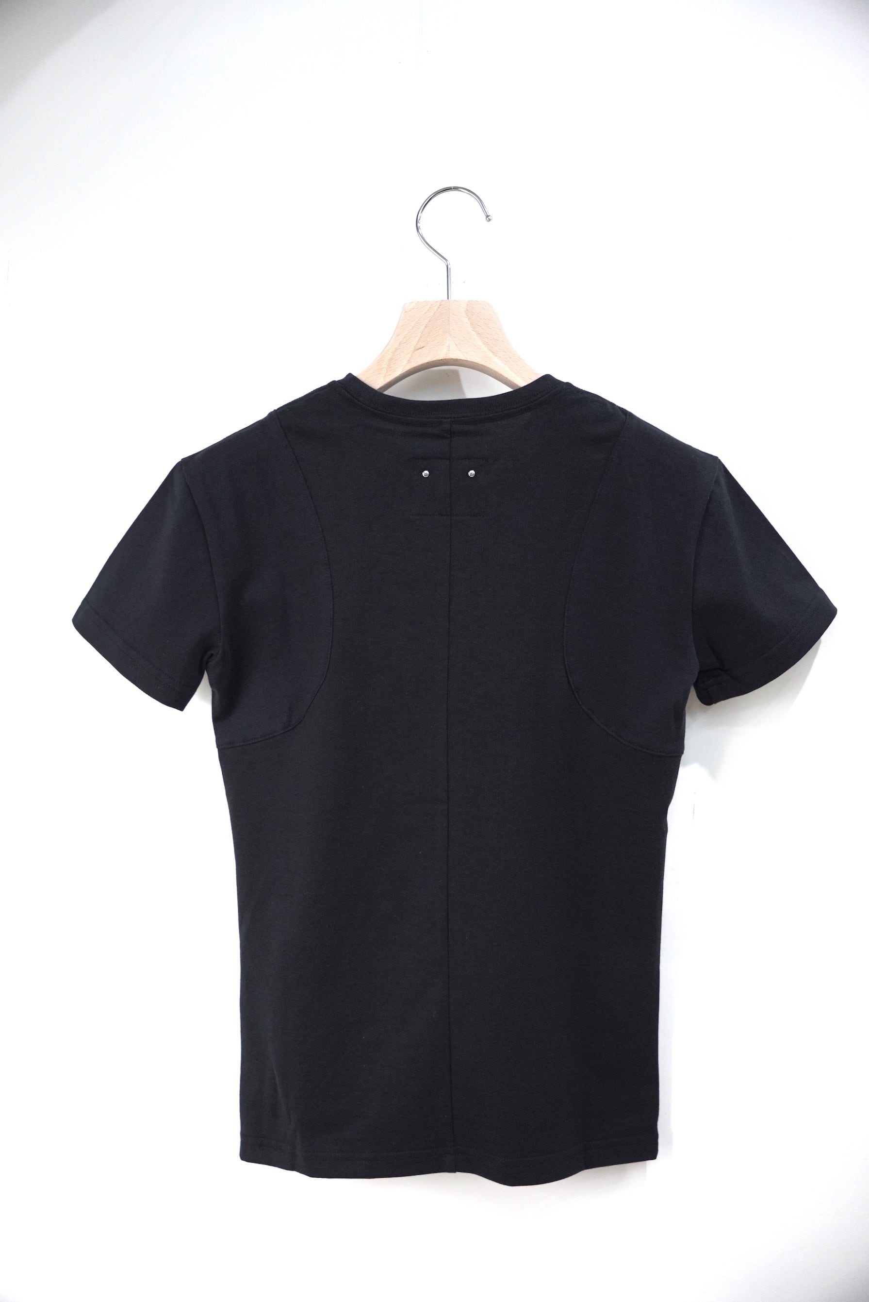 肩甲骨をイメージした切り替えや、タイトなシルエットはある意味簡易的に身体へ近づける ために落とし込んだディティールです。