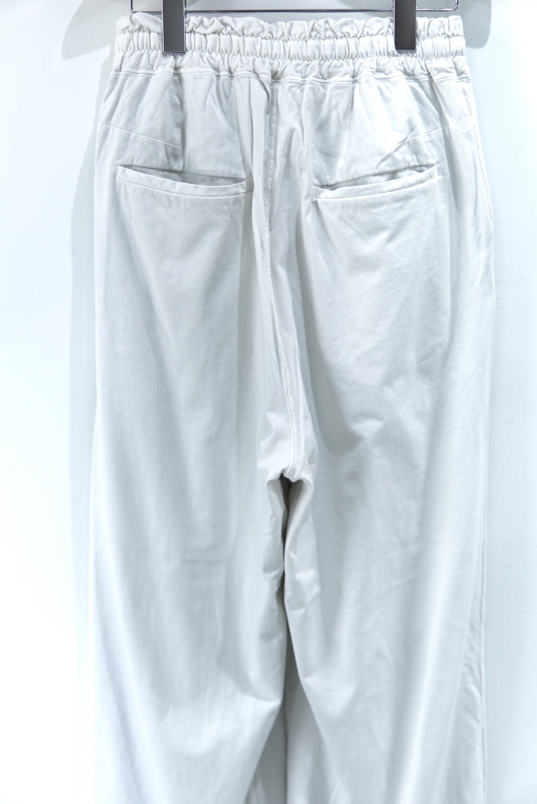 本来はTシャツに使用する伸びがよく心地良い天竺を二枚重ねで使用したワイドスラックス。