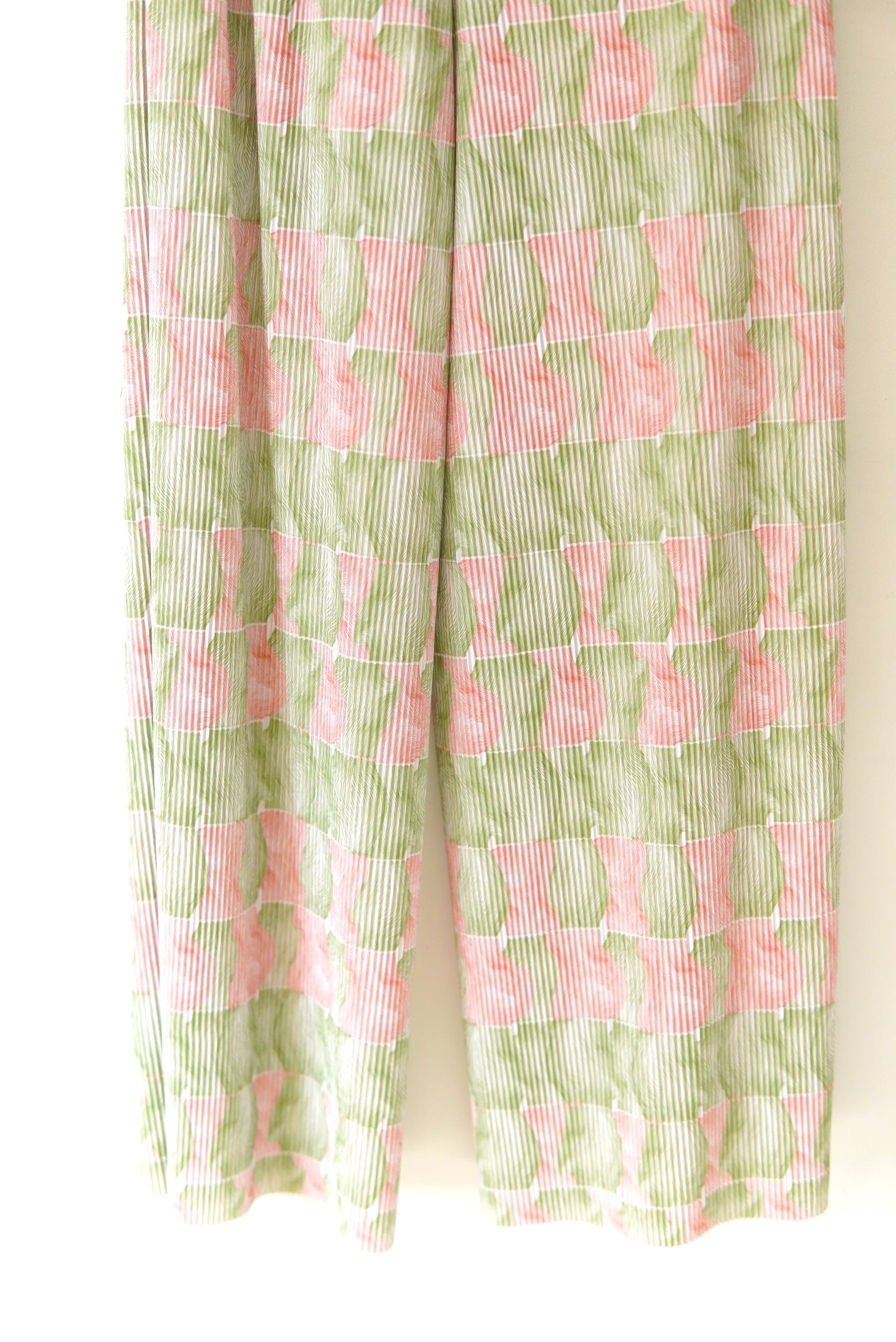 プリーツ素材ですので非常に履きやすく、ウエストのゴム紐でサイズも幅広く着用頂けます。