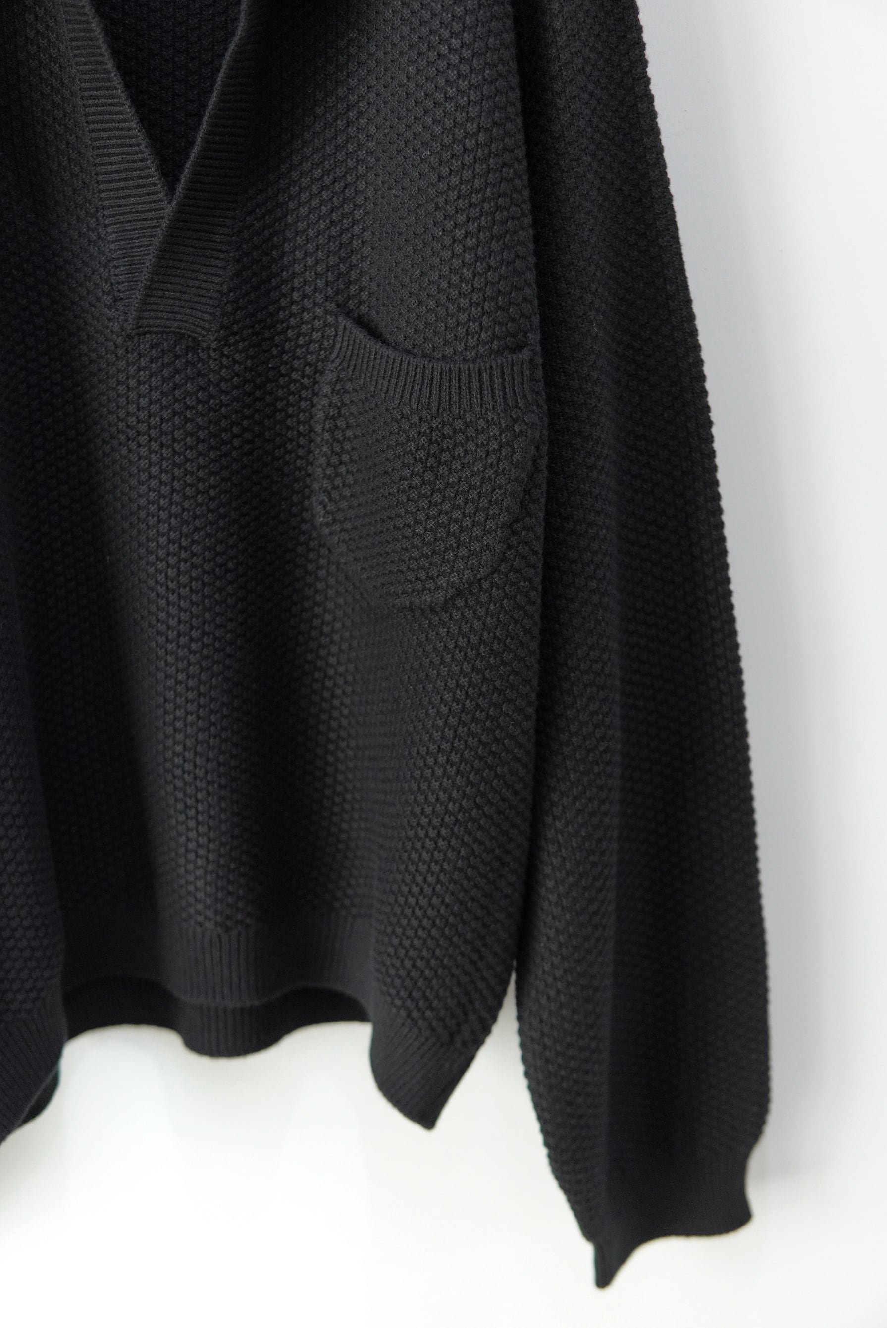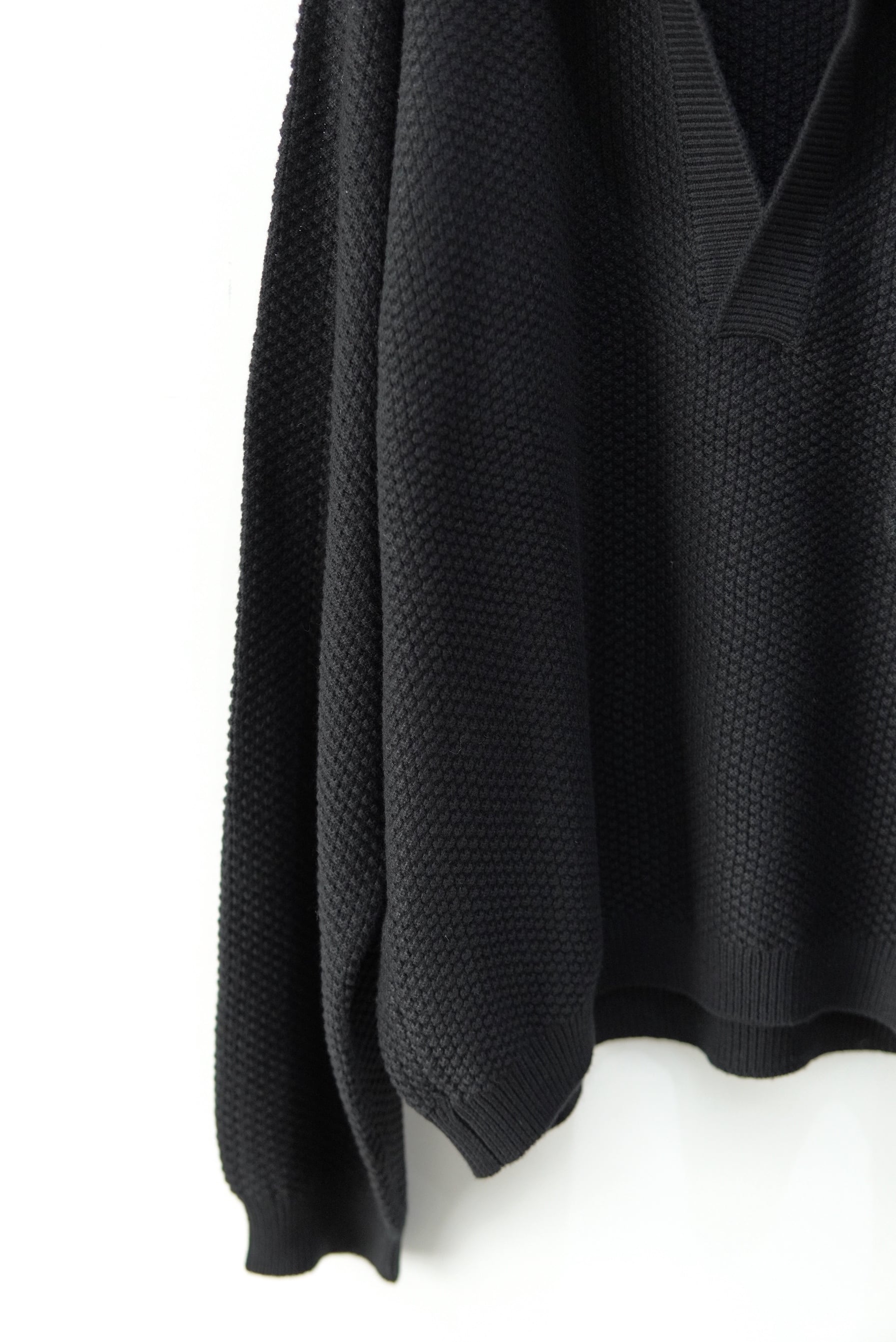 強い凹凸が豊かな表情を作りながら非常に肌あたりが良い編み地を使用。