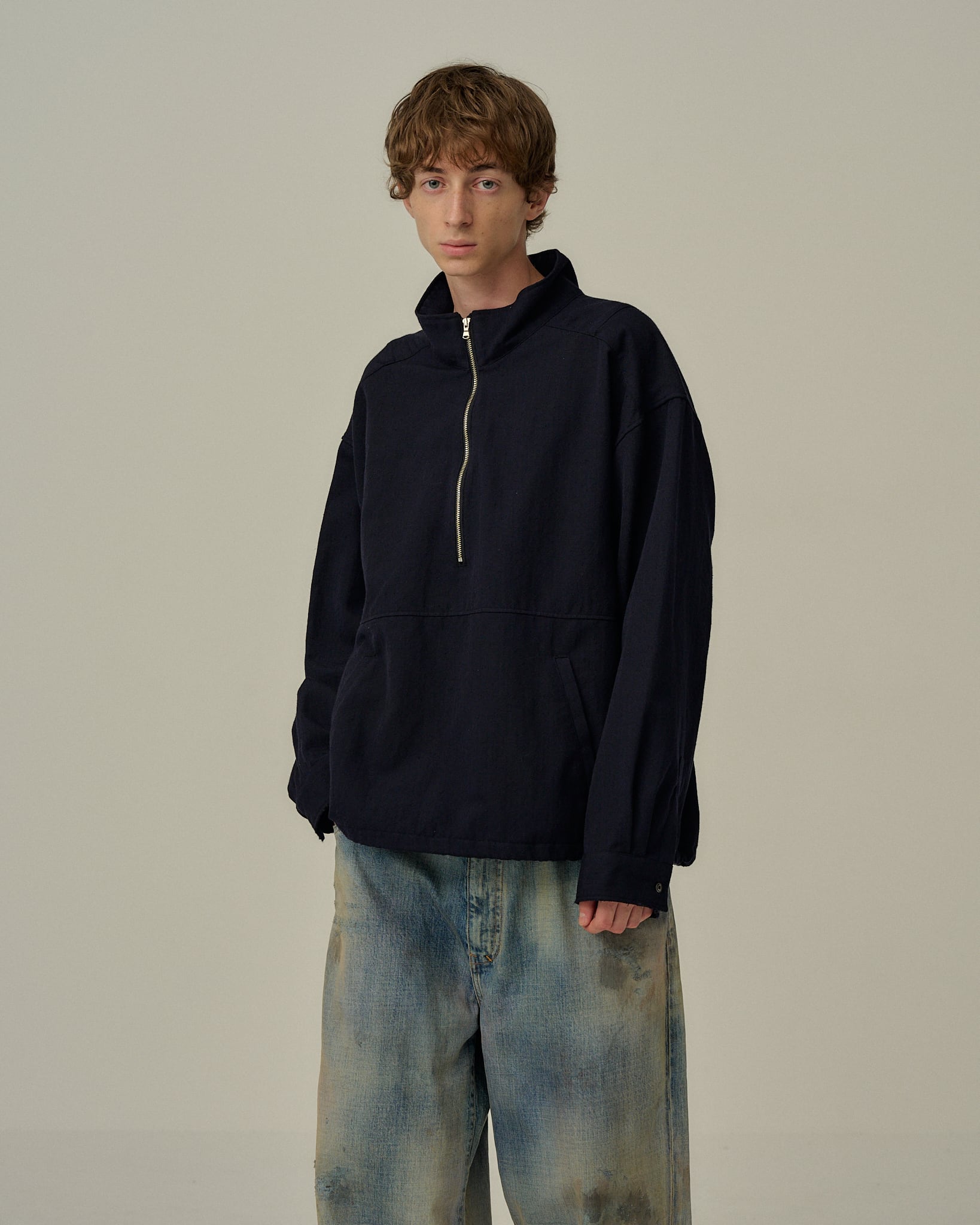 秋冬らしい表情を持たせたハーフジップのプルオーバーシャツ。