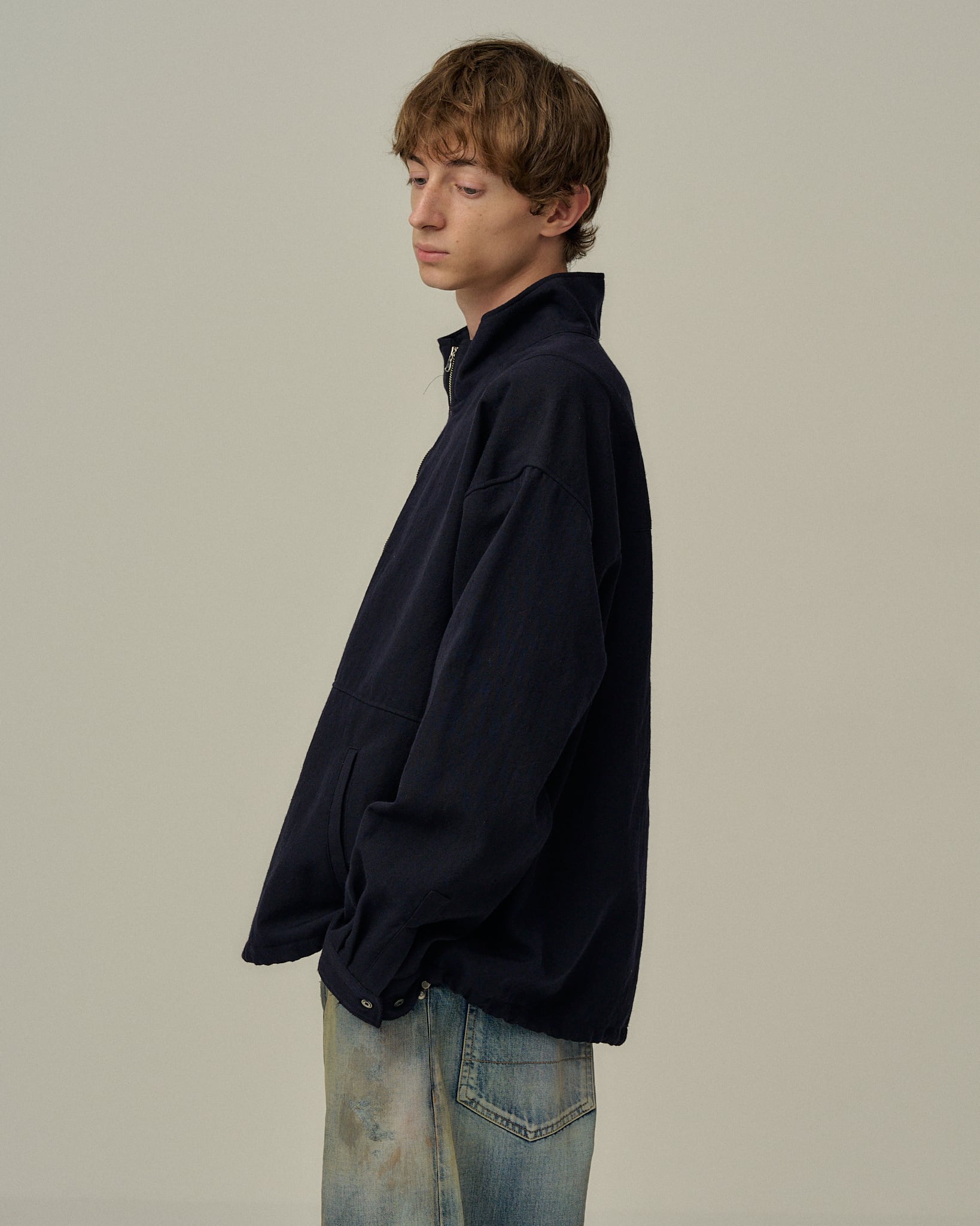 秋季にはZIPを広げてシャツとして裾を絞るとブルゾンのように丸く膨らみ