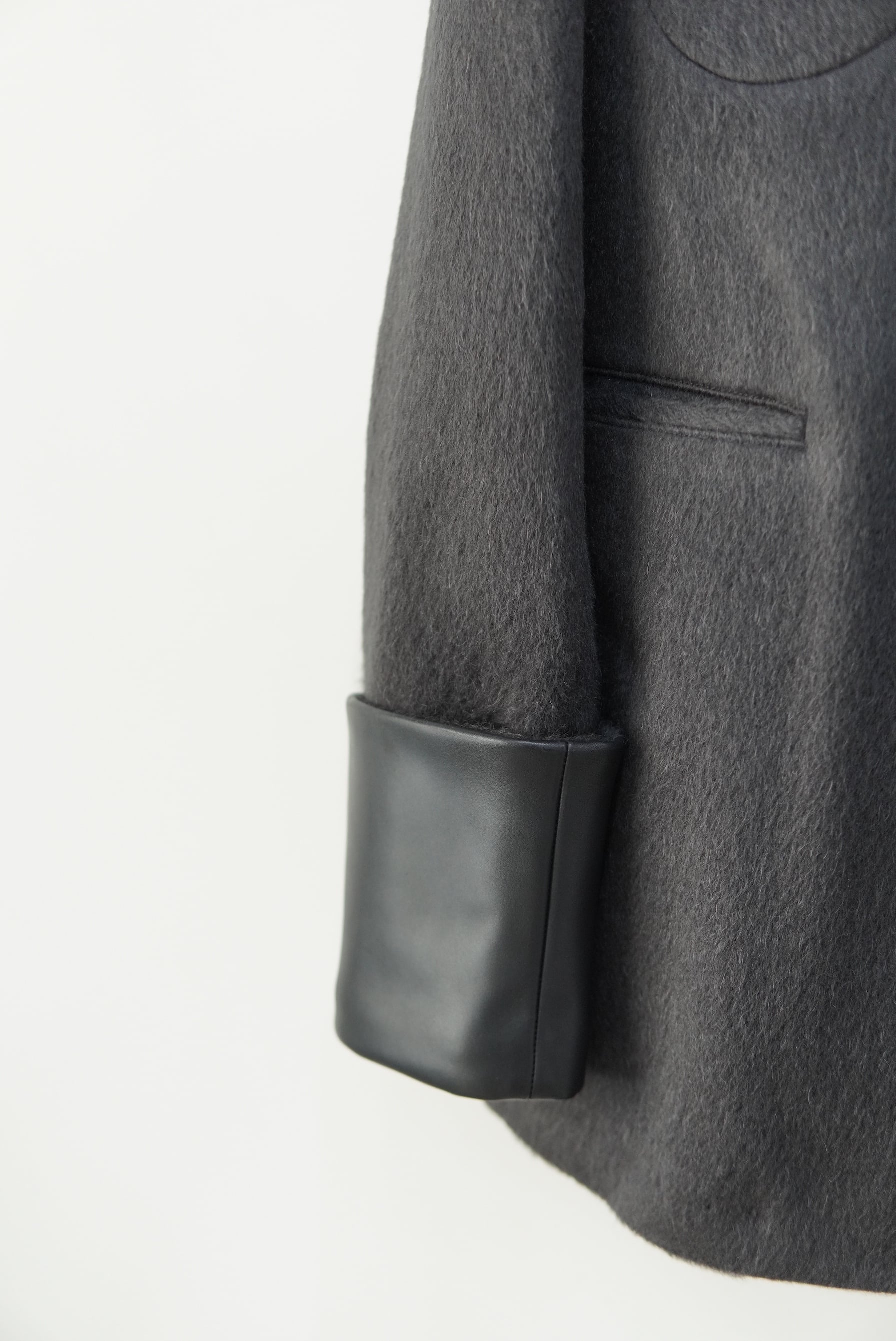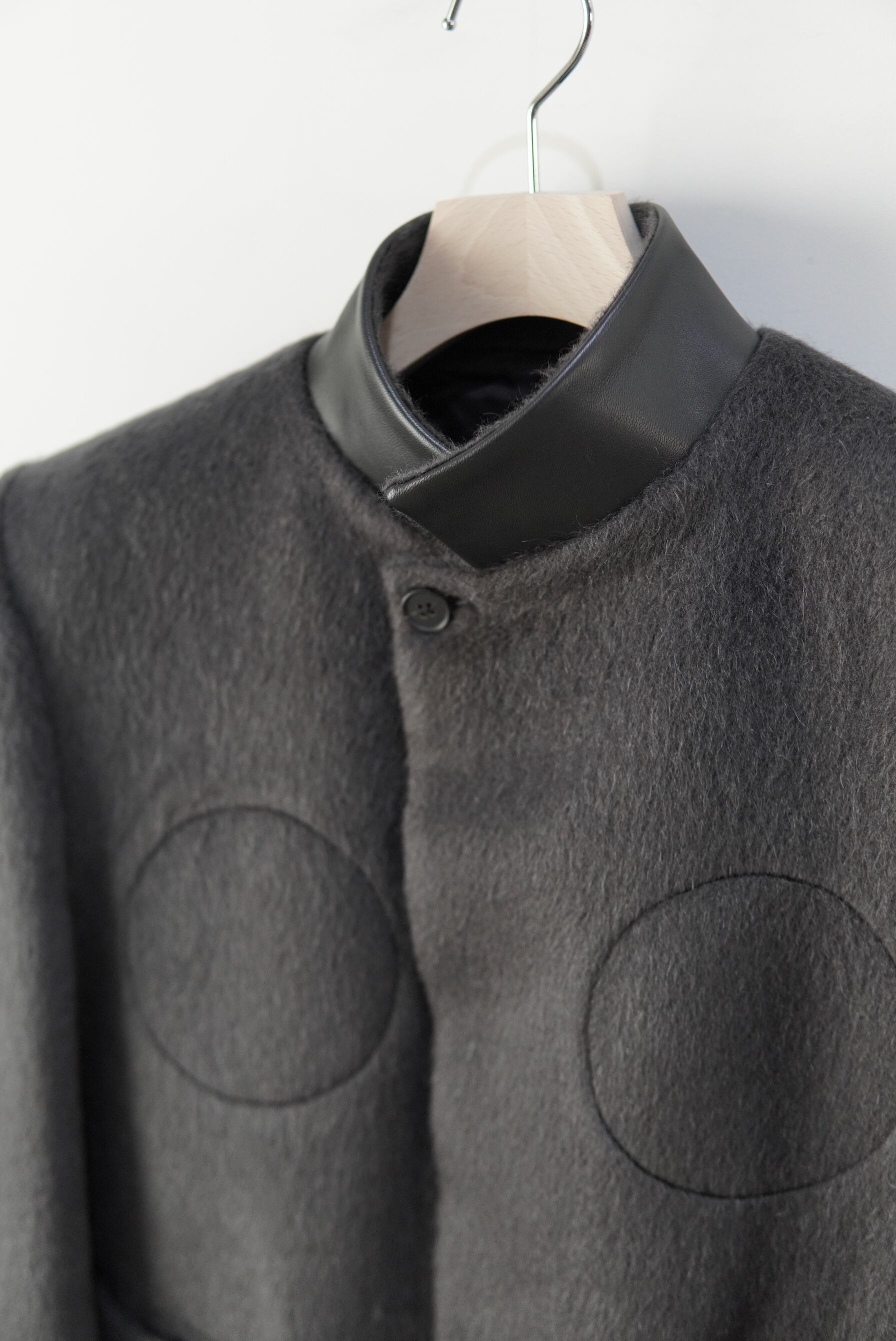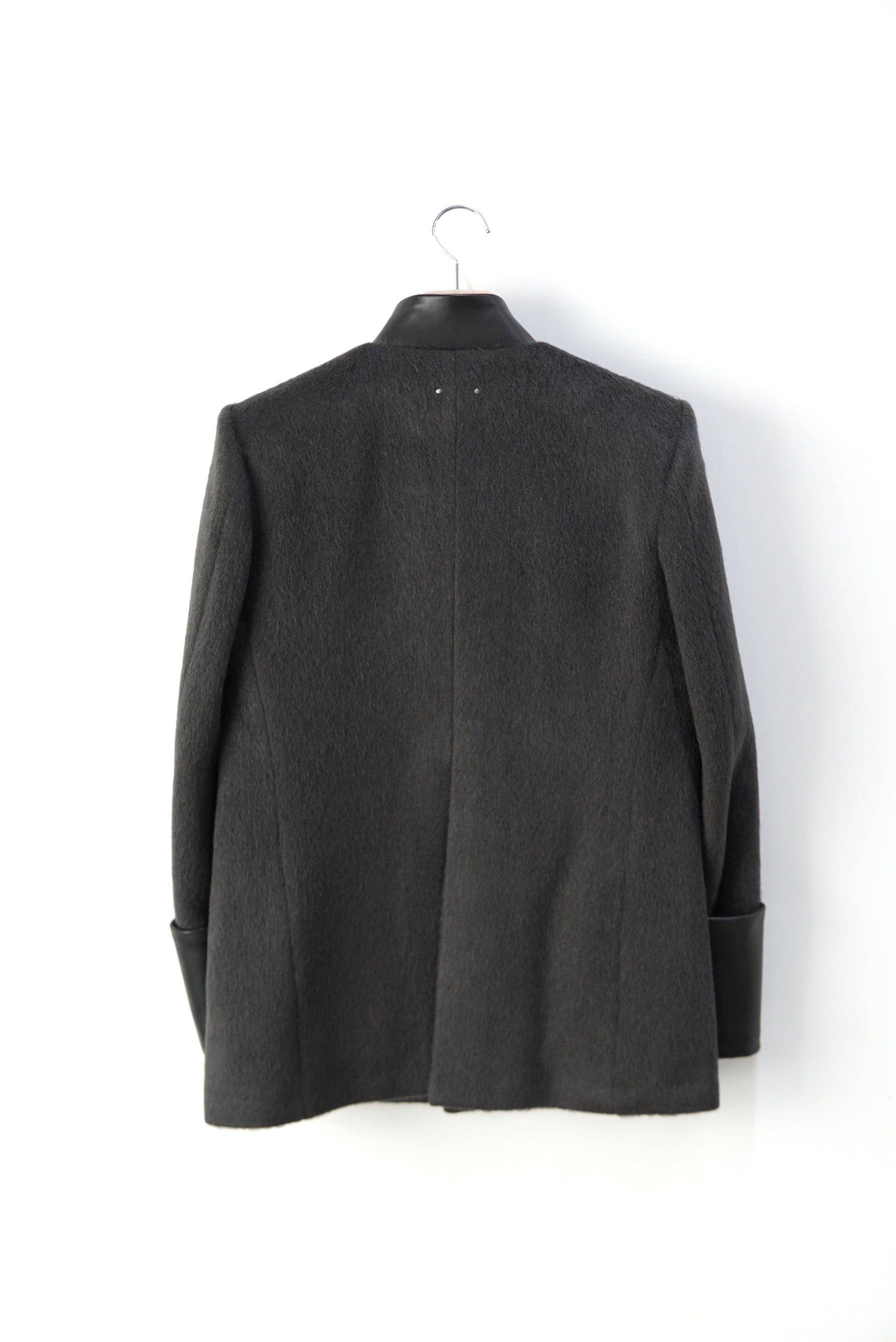 今シーズンでは抑圧的なものから様々な展開を試みており、このジャケットでは”縛る側” =規律に服従している人側のイメージです。