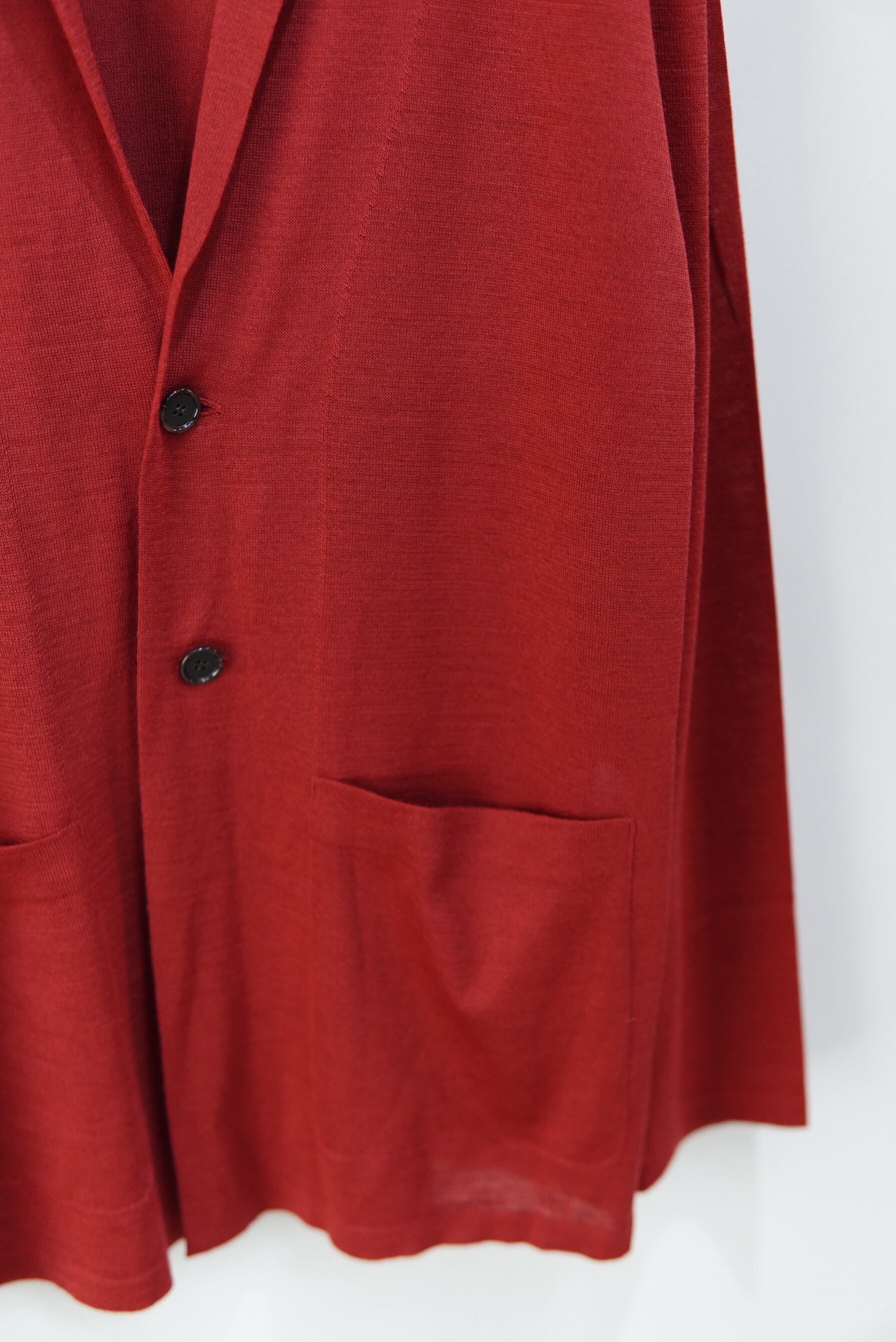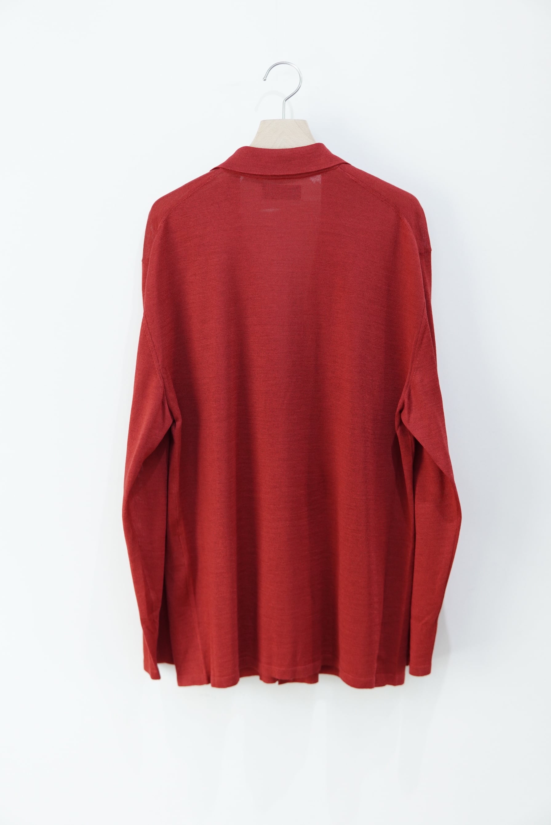 16GGで編み立てた極めてクリアで滑らかなタッチで、細いラペルのカーディガン風に羽織れるデザイン。