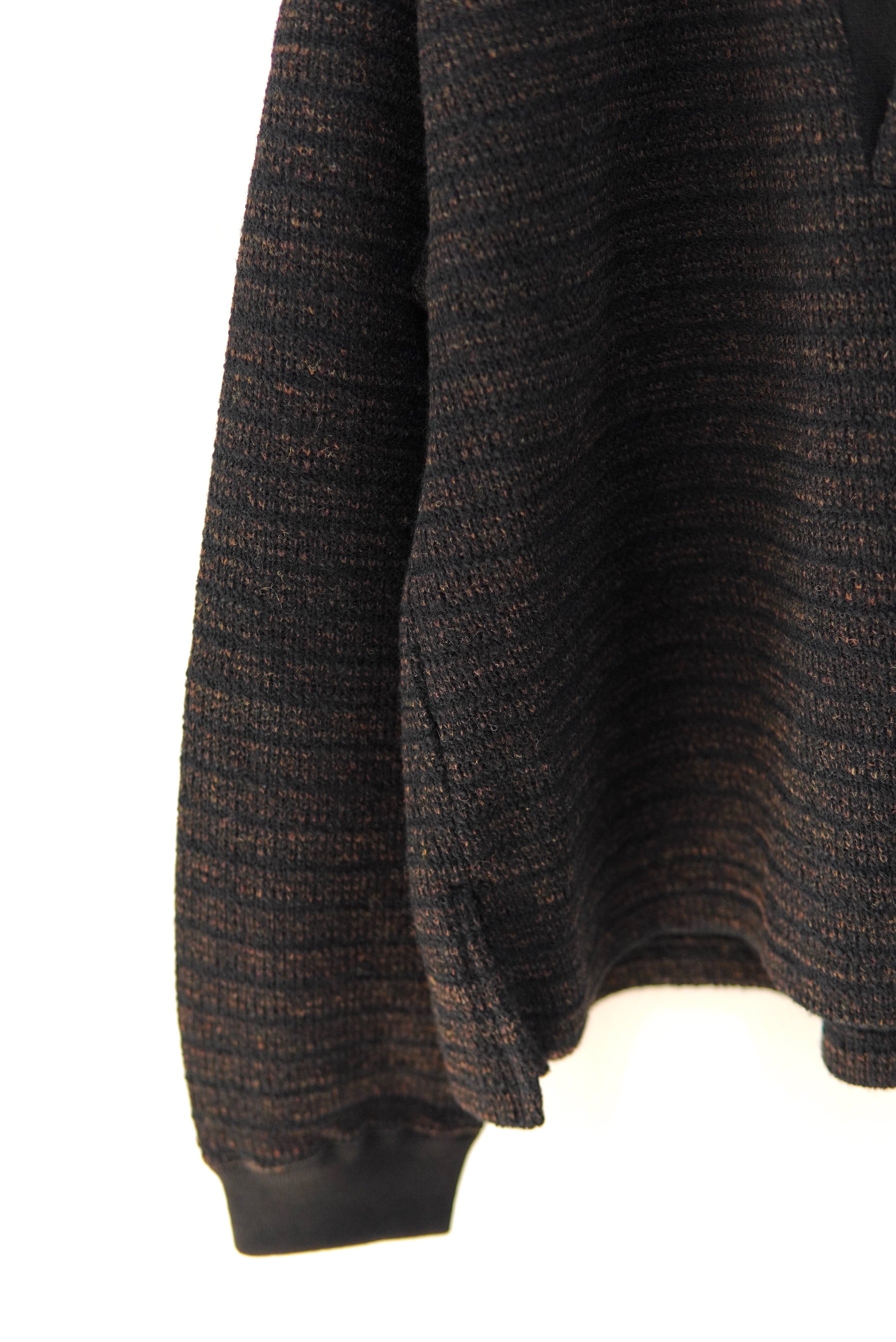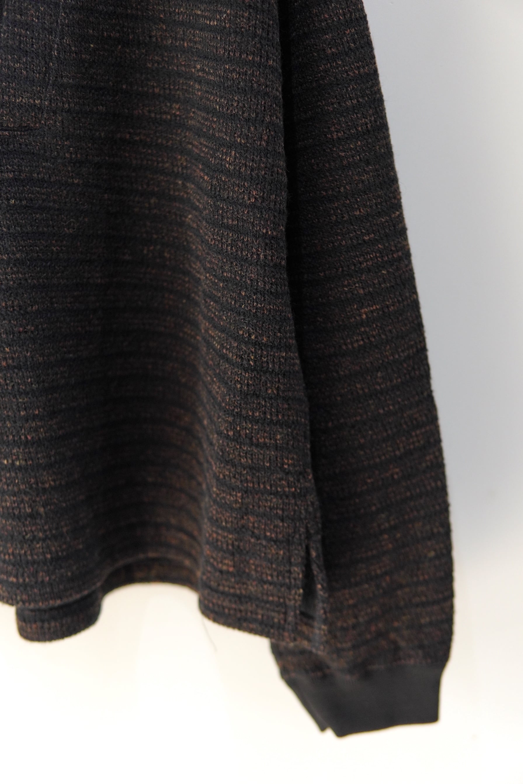 編み柄で細かなボーダーを並べることで懐かしさと少しのいなたさを表現しております。