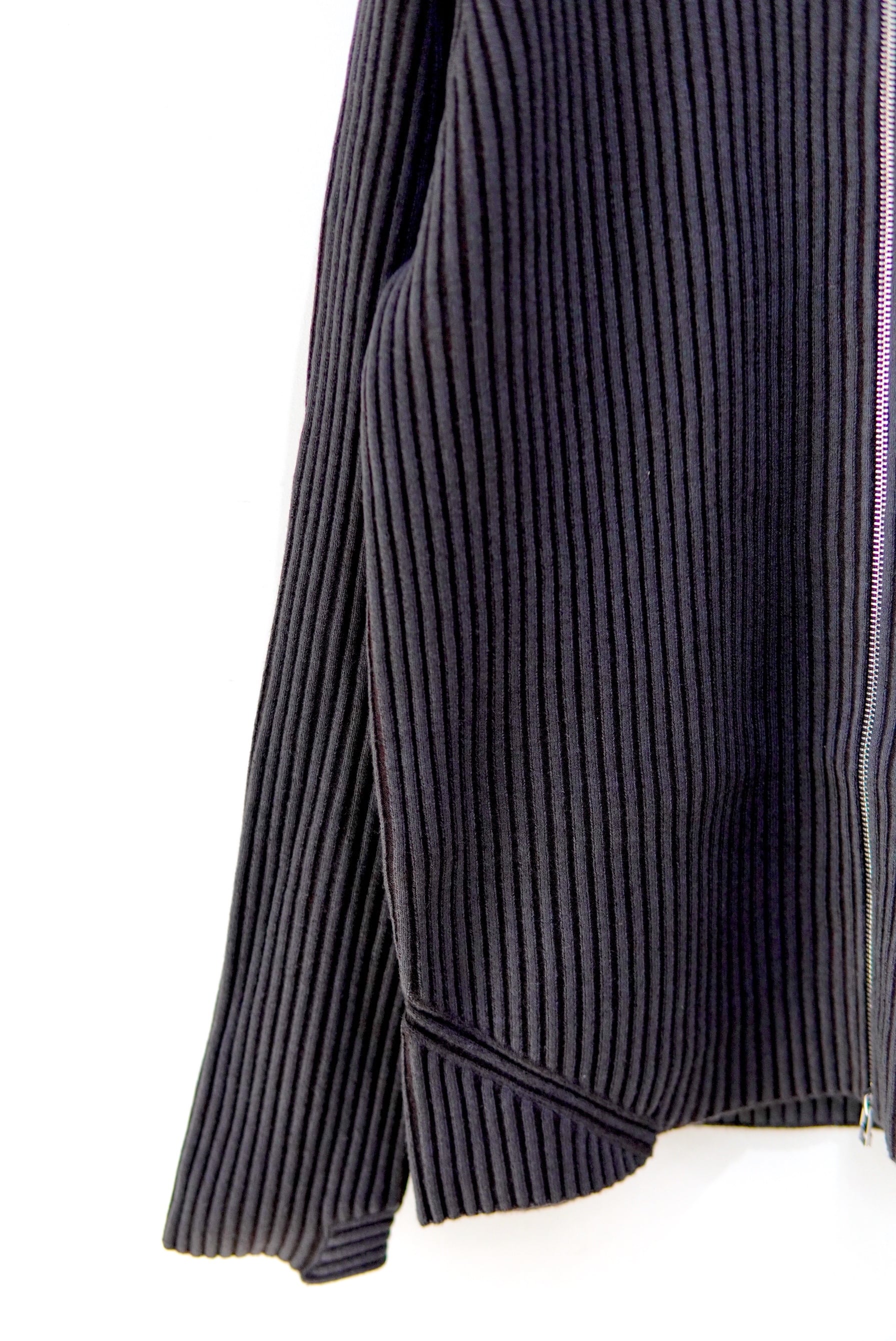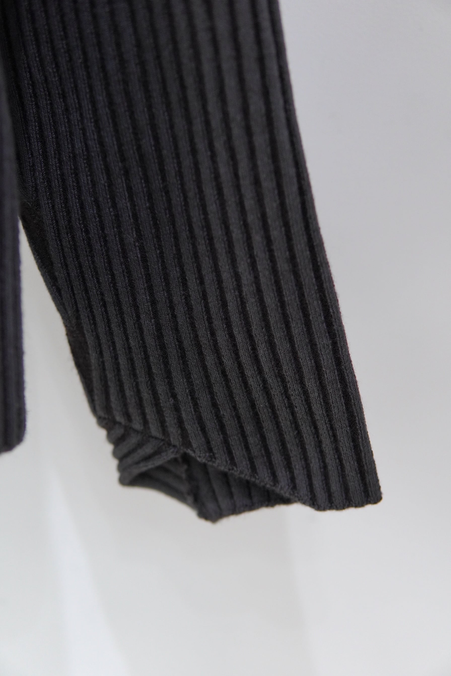 メリノウールで作られ、リブ編みのピッチの高さを変えることで起伏のあるテクスチャーを強調しています。リラックスしたボクシーシルエットでデザイン されており、リブ編みの方向を変えることでリズムとテクスチャーを生み出すディテールが特徴です。