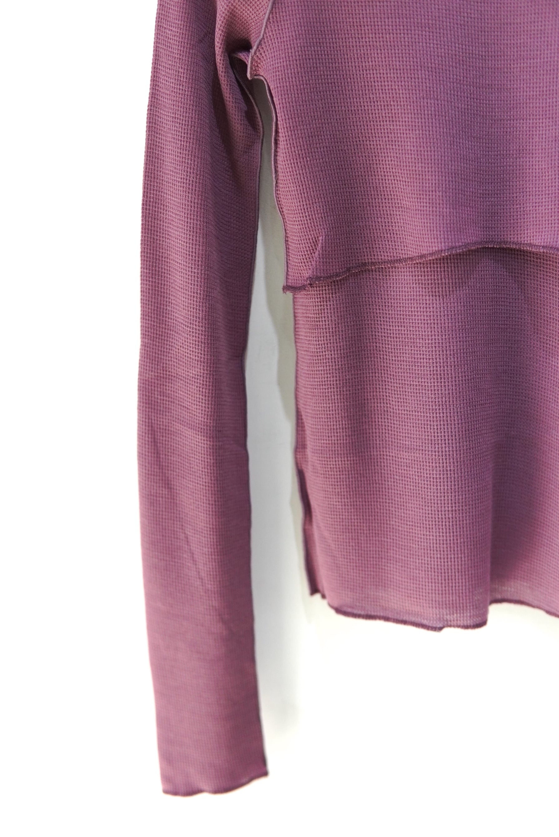 ウールのワッフル生地を使用した、インナーとしても着用できるトップス。
