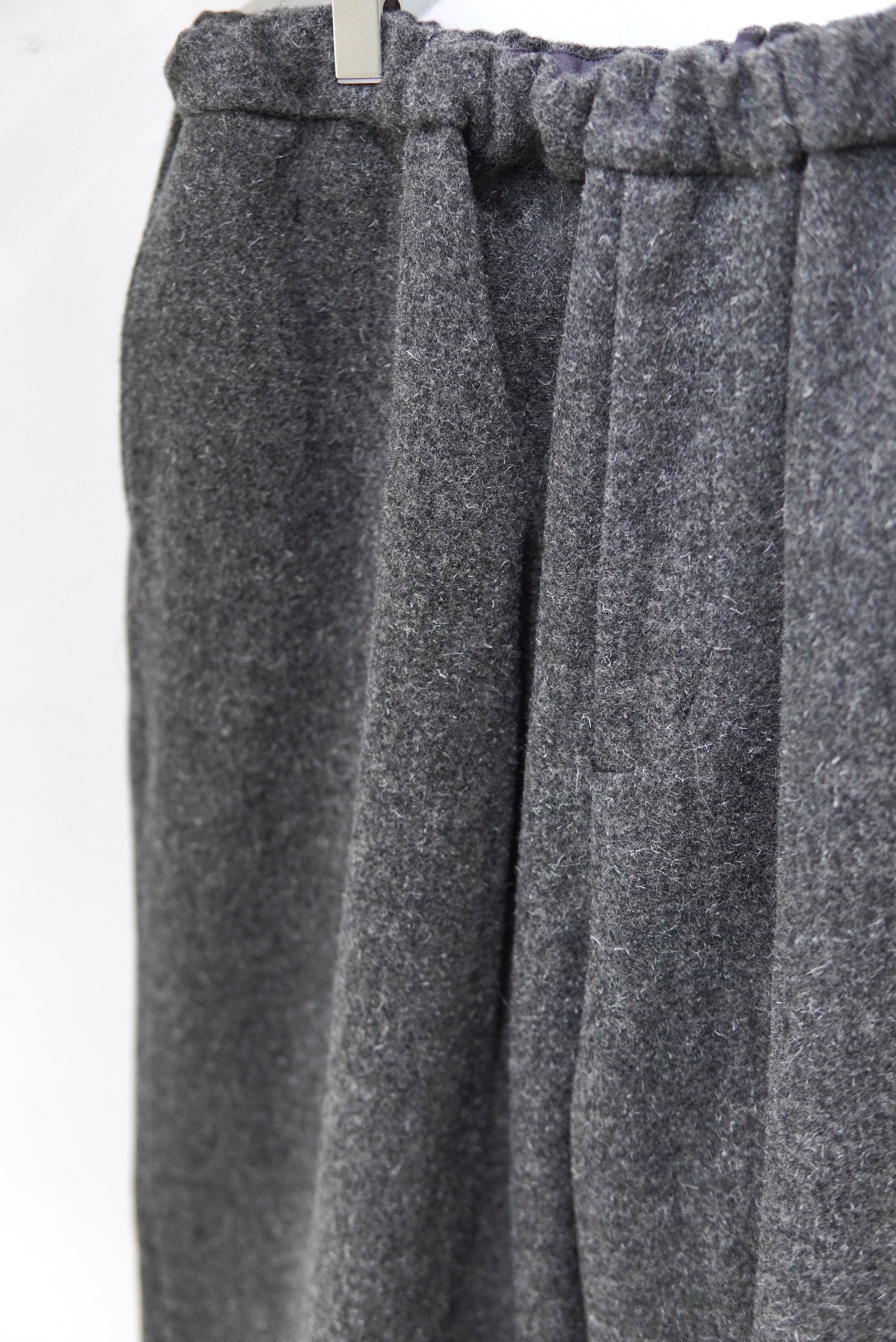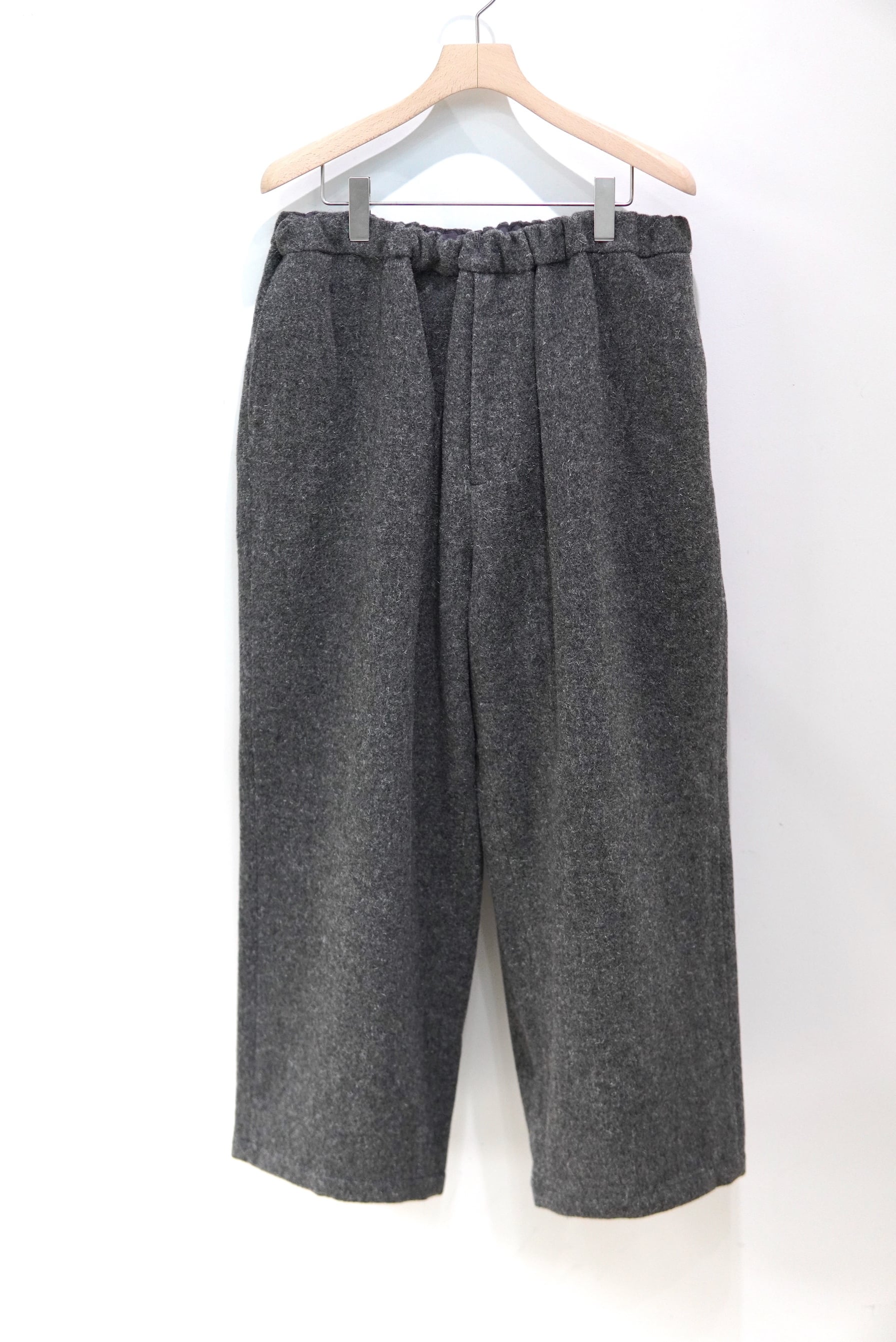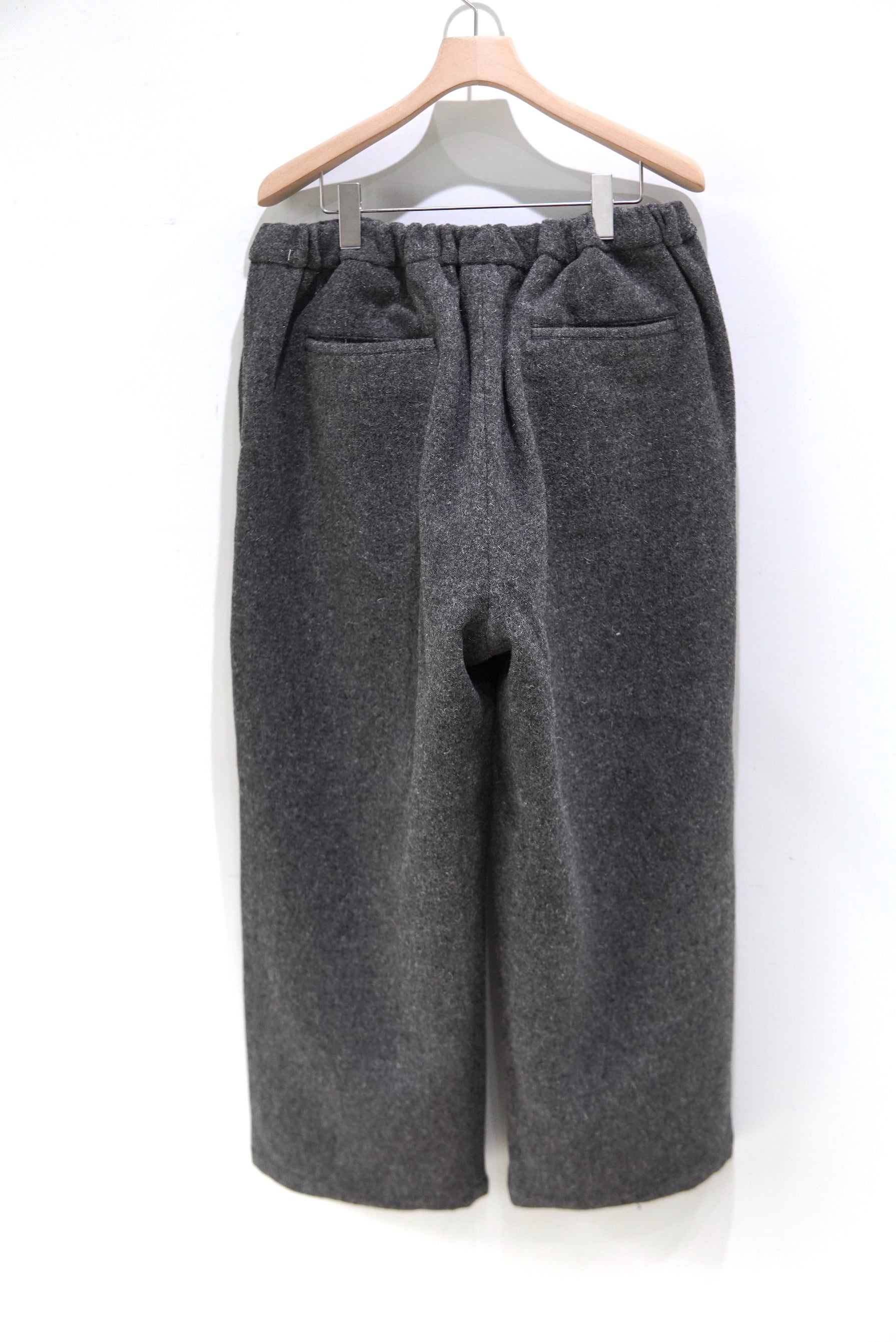 尾州地方の歴史のある機屋にて、旧式の織機を使用して製織したオリジナル素材。 希少性の高いケンピ混の紡毛糸を使用したクラシックなウールのコート生地です。 原料が持つ膨らみを最大限に生かした規格と仕上げにより、空気を多く含んだふっくらとした生地感。 重厚感のある見掛けとは裏腹に、比較的着疲れしない着心地も特徴です。