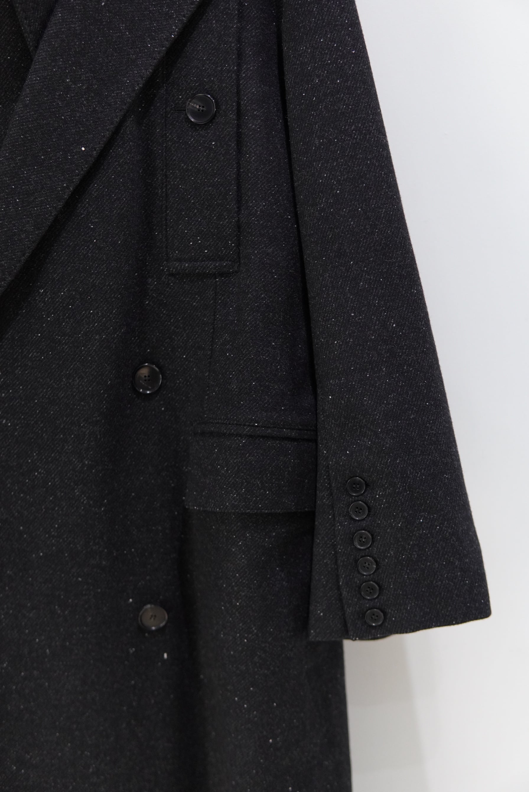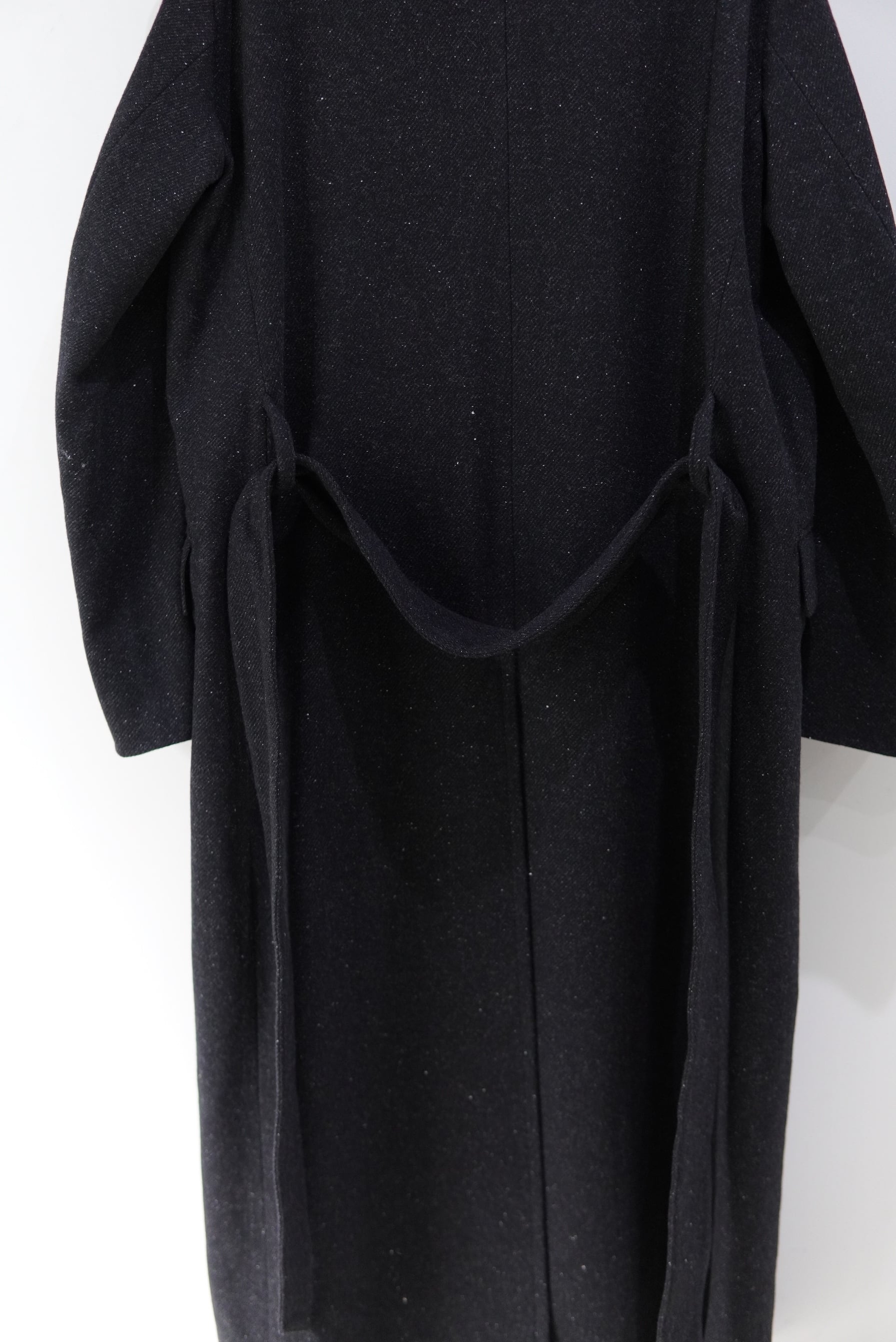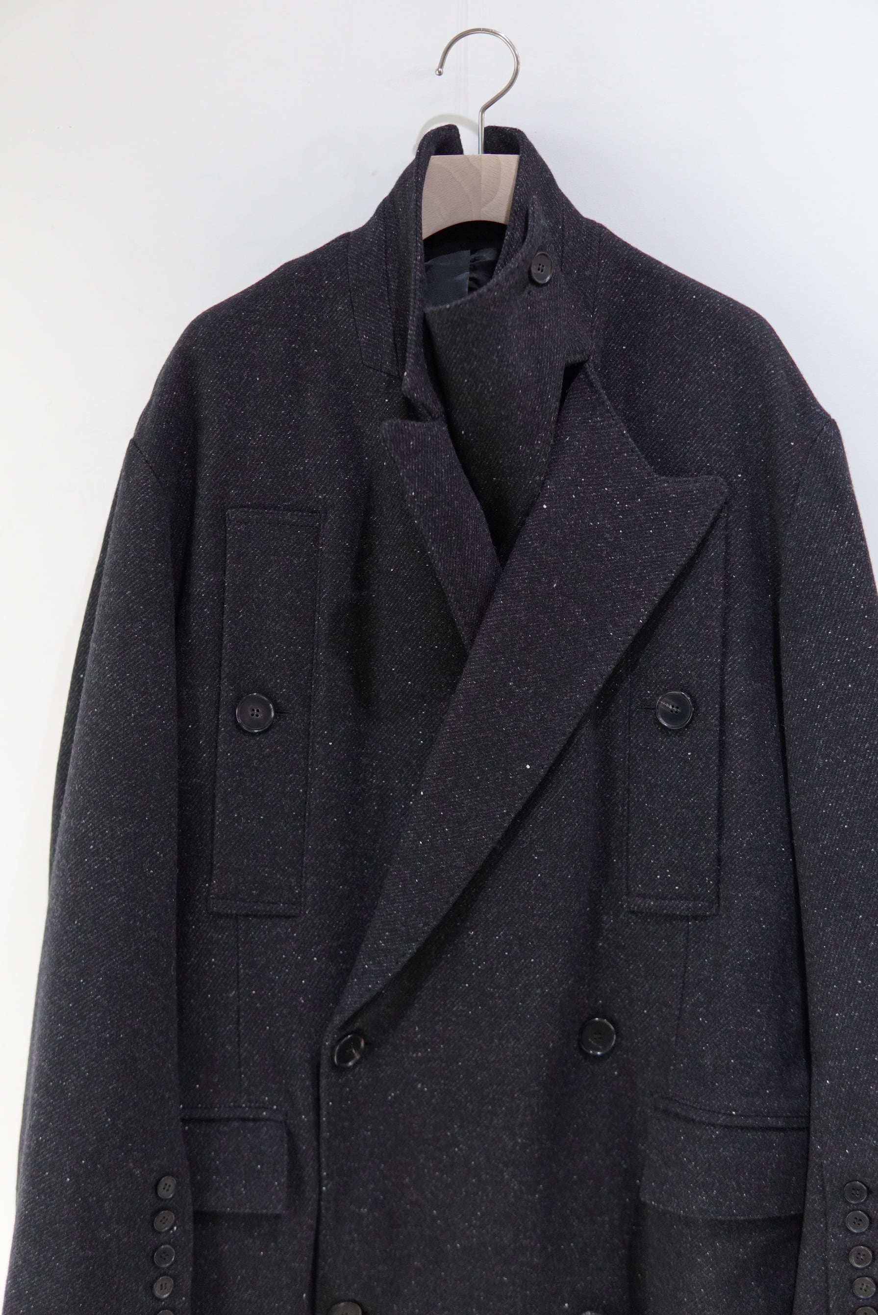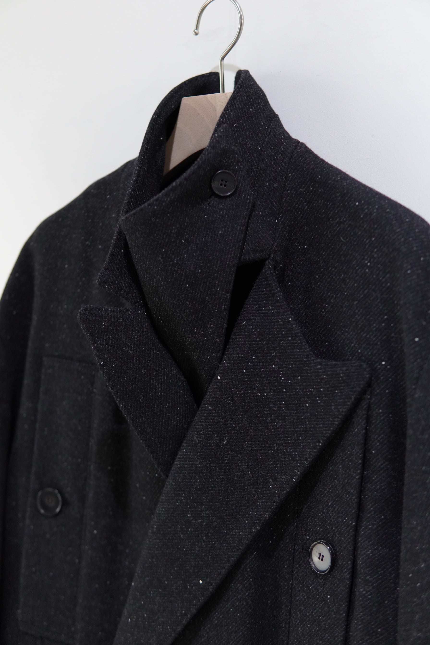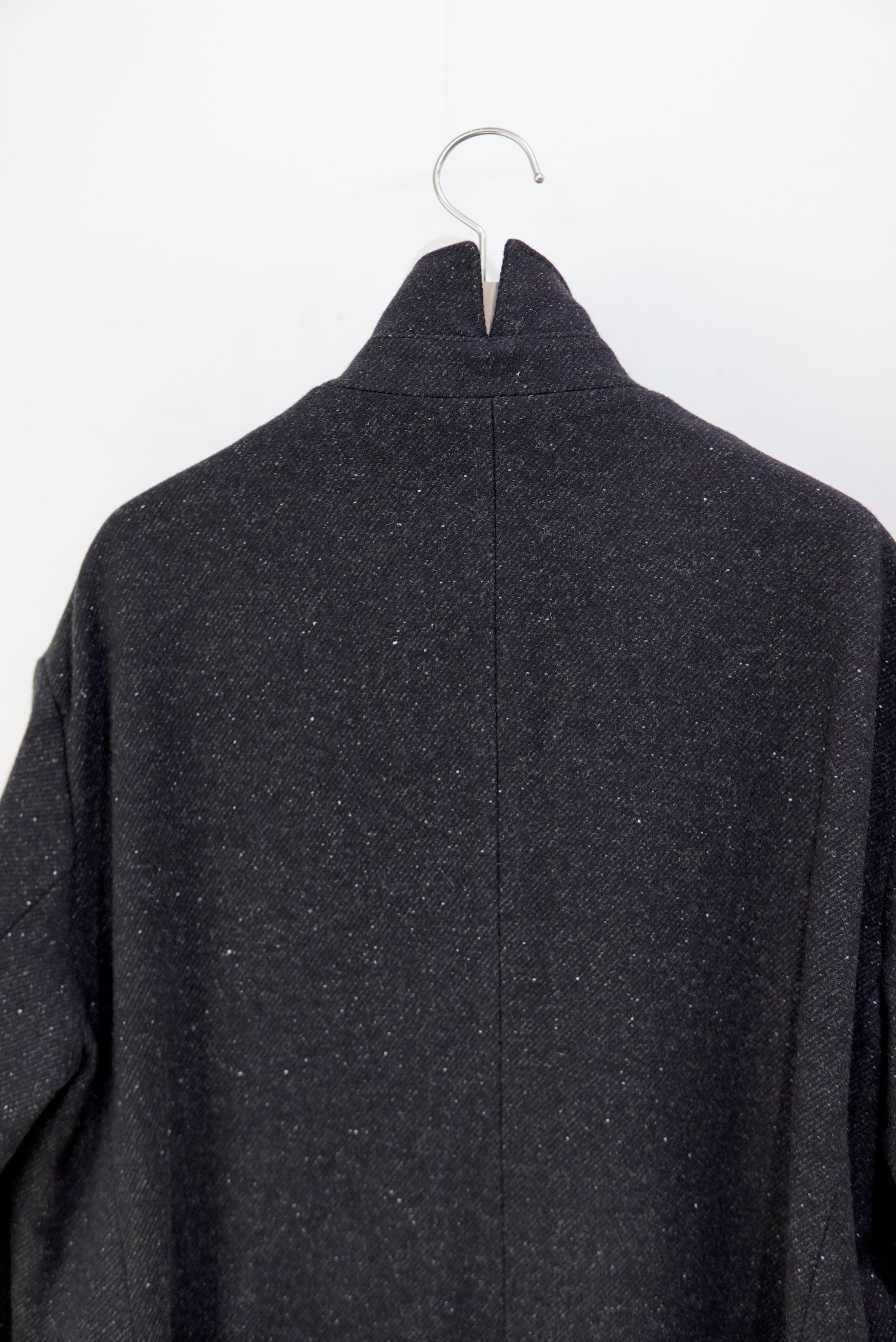 FW24コレクションを象徴する、ラペルが首元に巻き付く"BAT COLLAR OVER COAT"を基にアップデート。