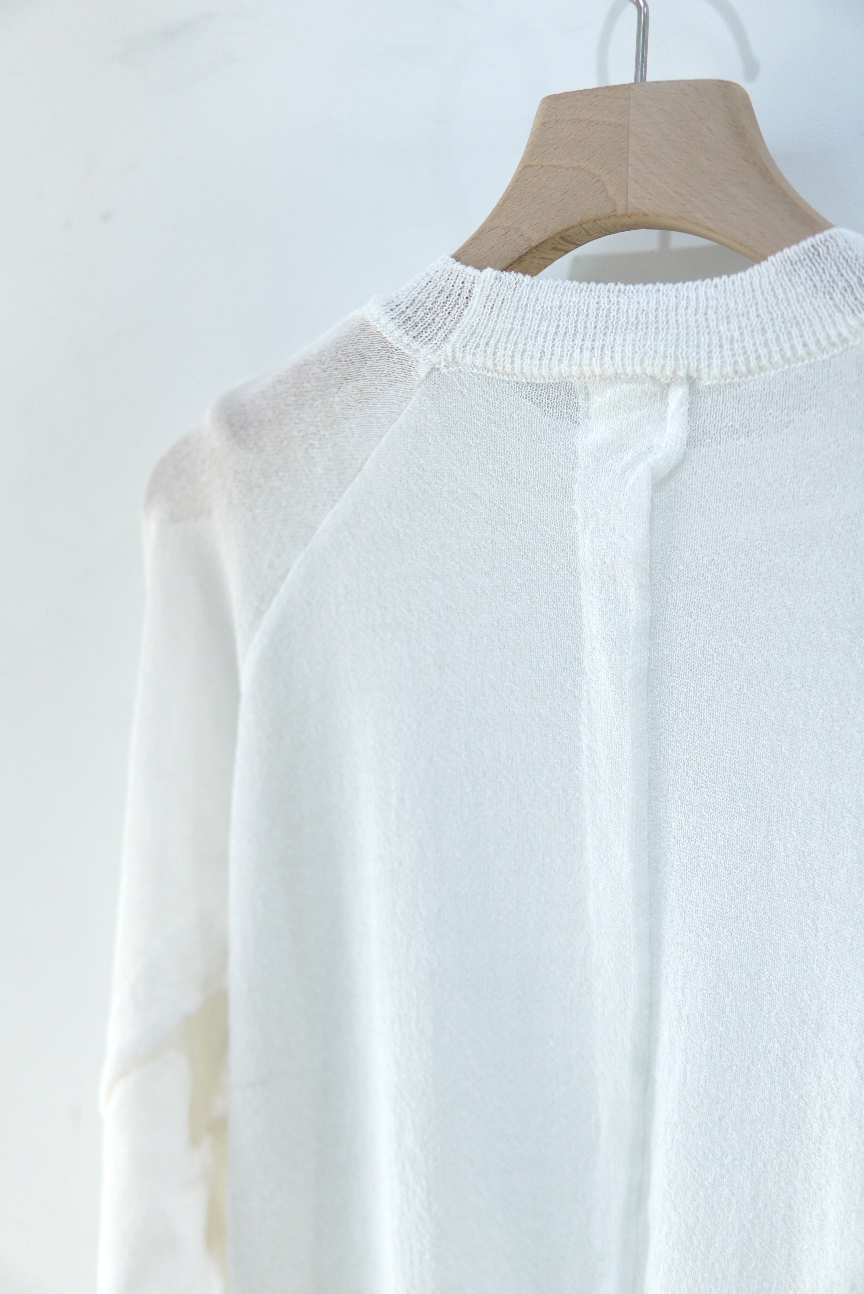 軽さとドライ感があり、べたつきにくく、夏秋に使いやすいニットです。