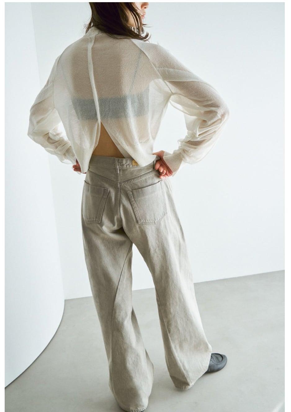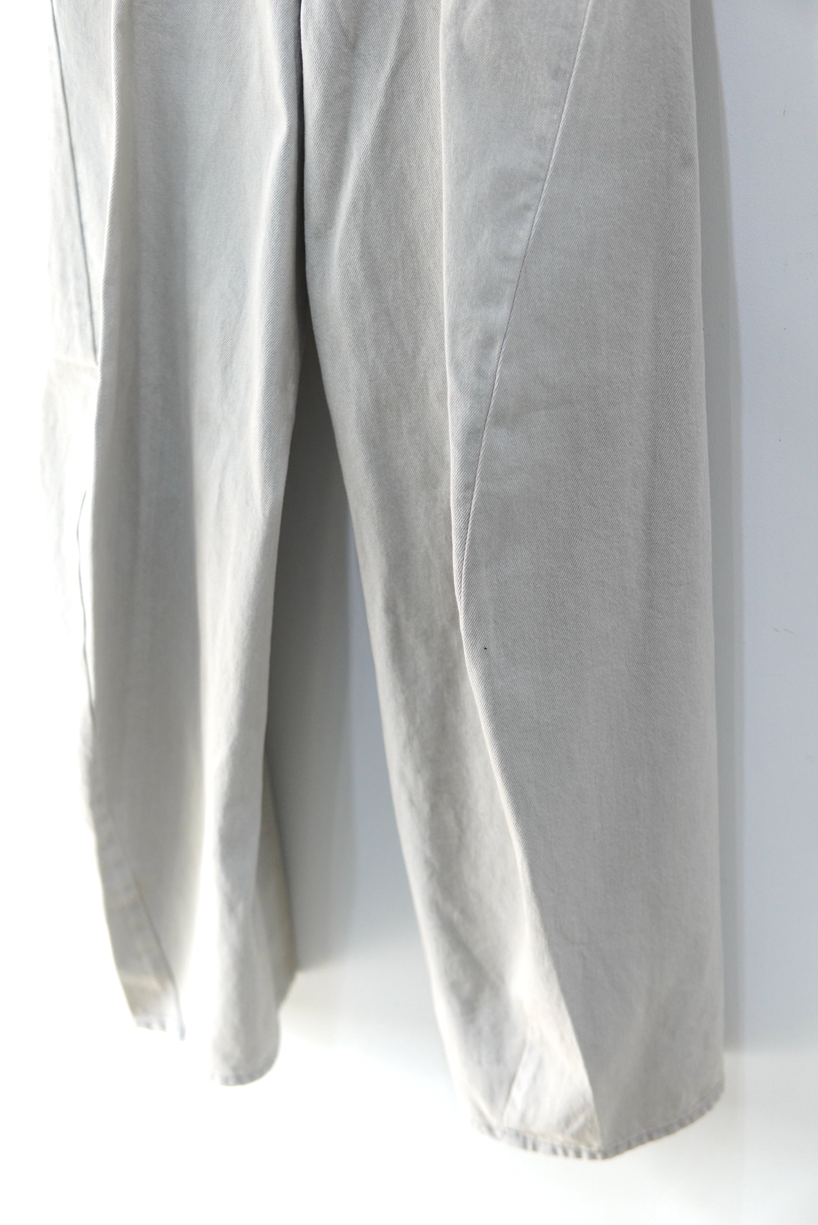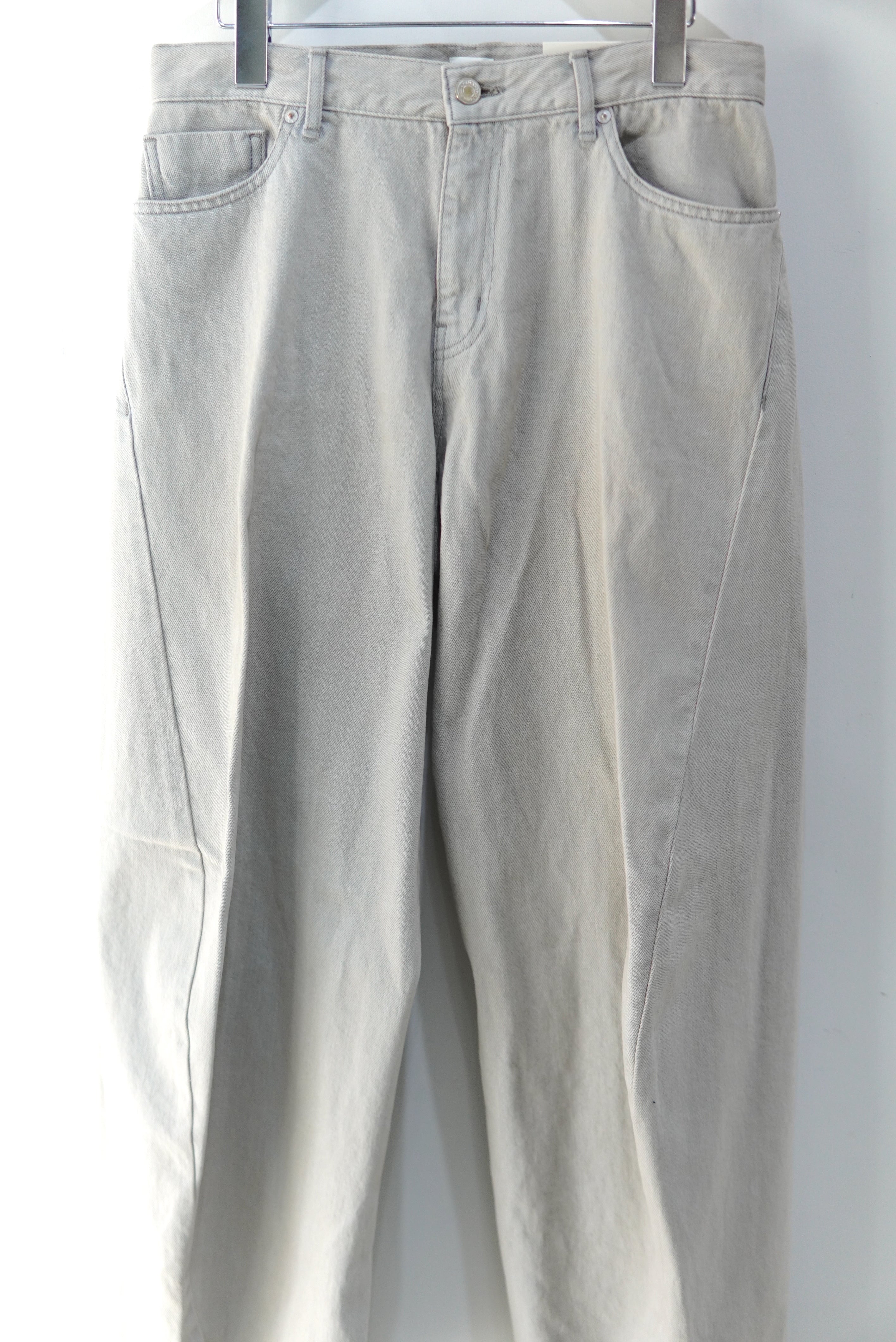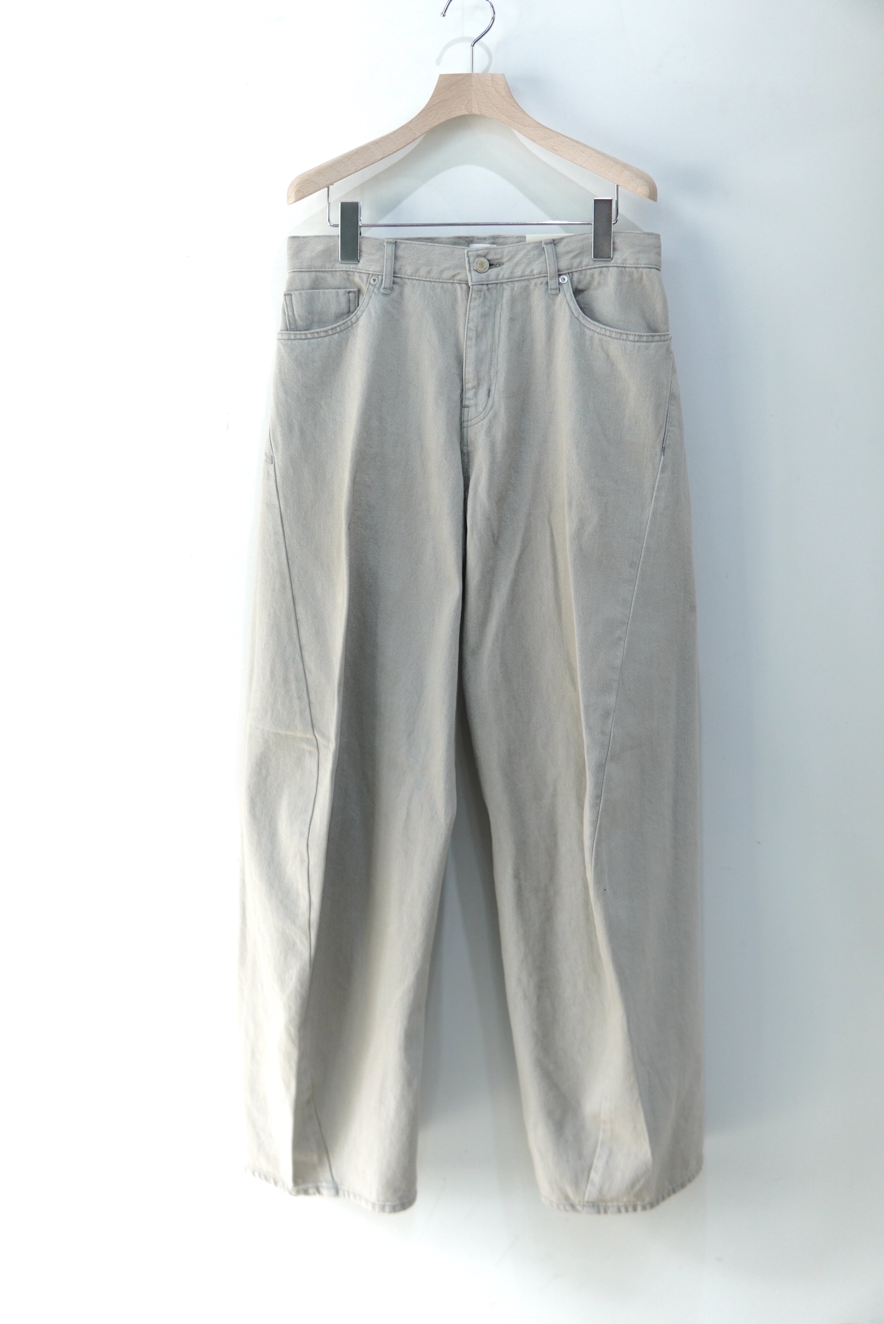 ワイドなシルエットベースに、立体的に形成された湾曲したパターン、美しいカーブシルエットで、迫力のあるデニム。