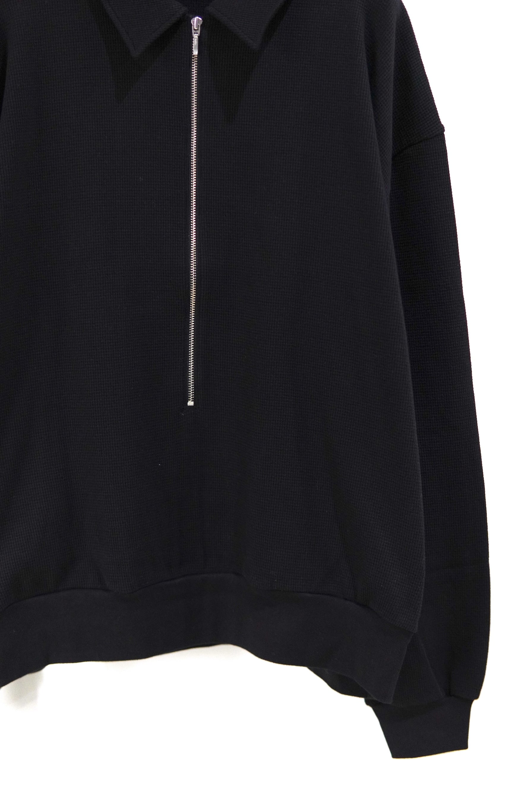 REVERBERATEのシグネチャーモデルであるハーフジップ仕様のカットソー。 長めに取られたジップが特徴的です。 MATERIAL 100% COTTON size 2 着丈 69cm 身幅 68cm 肩幅 60cm 袖丈 63cm