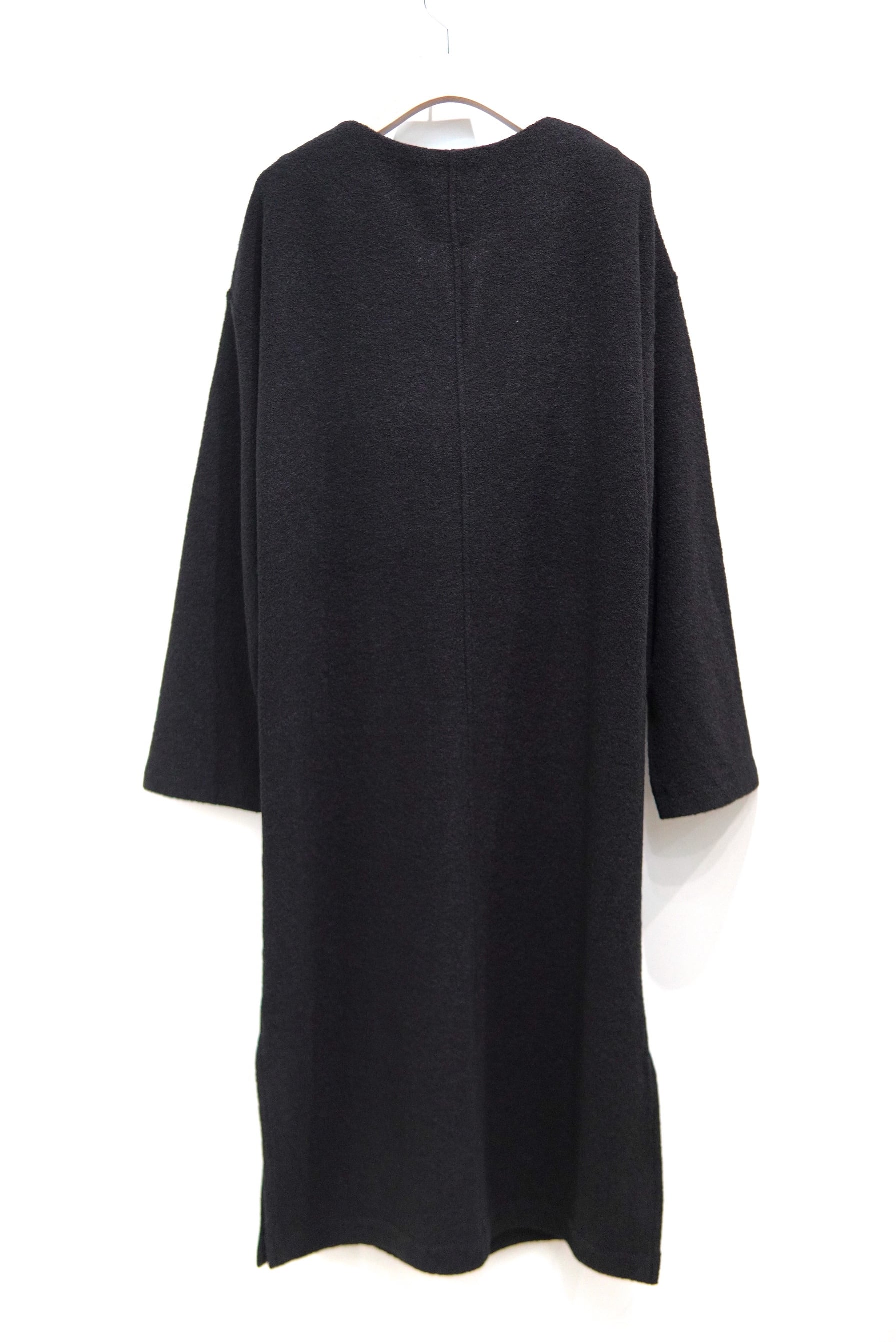 ループの豊かな表情とふっくらと柔らかな肌あたりが特徴のウールナイロンのブークレを使用したジャージードレス。