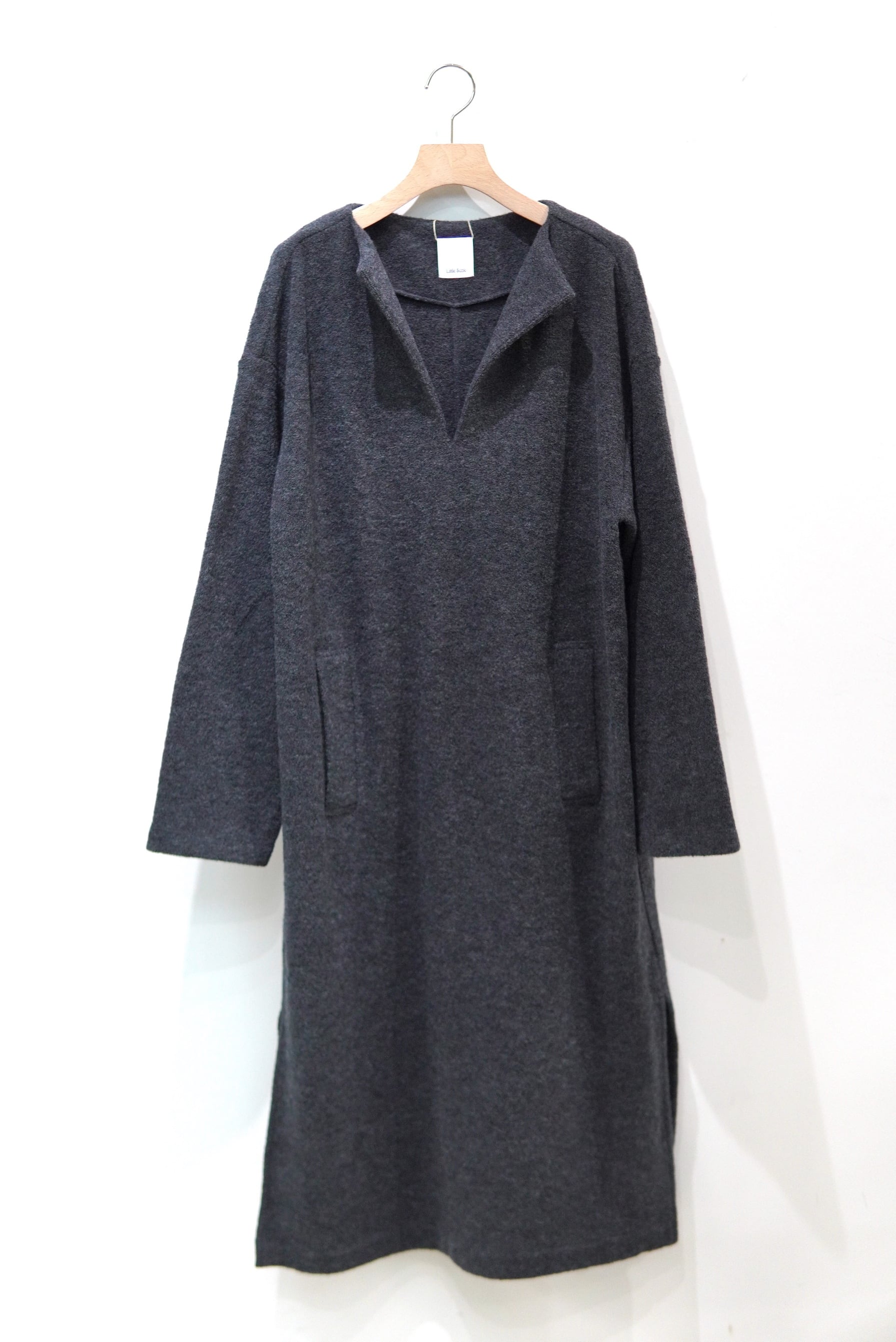 ループの豊かな表情とふっくらと柔らかな肌あたりが特徴のウールナイロンのブークレを使用したジャージードレス。