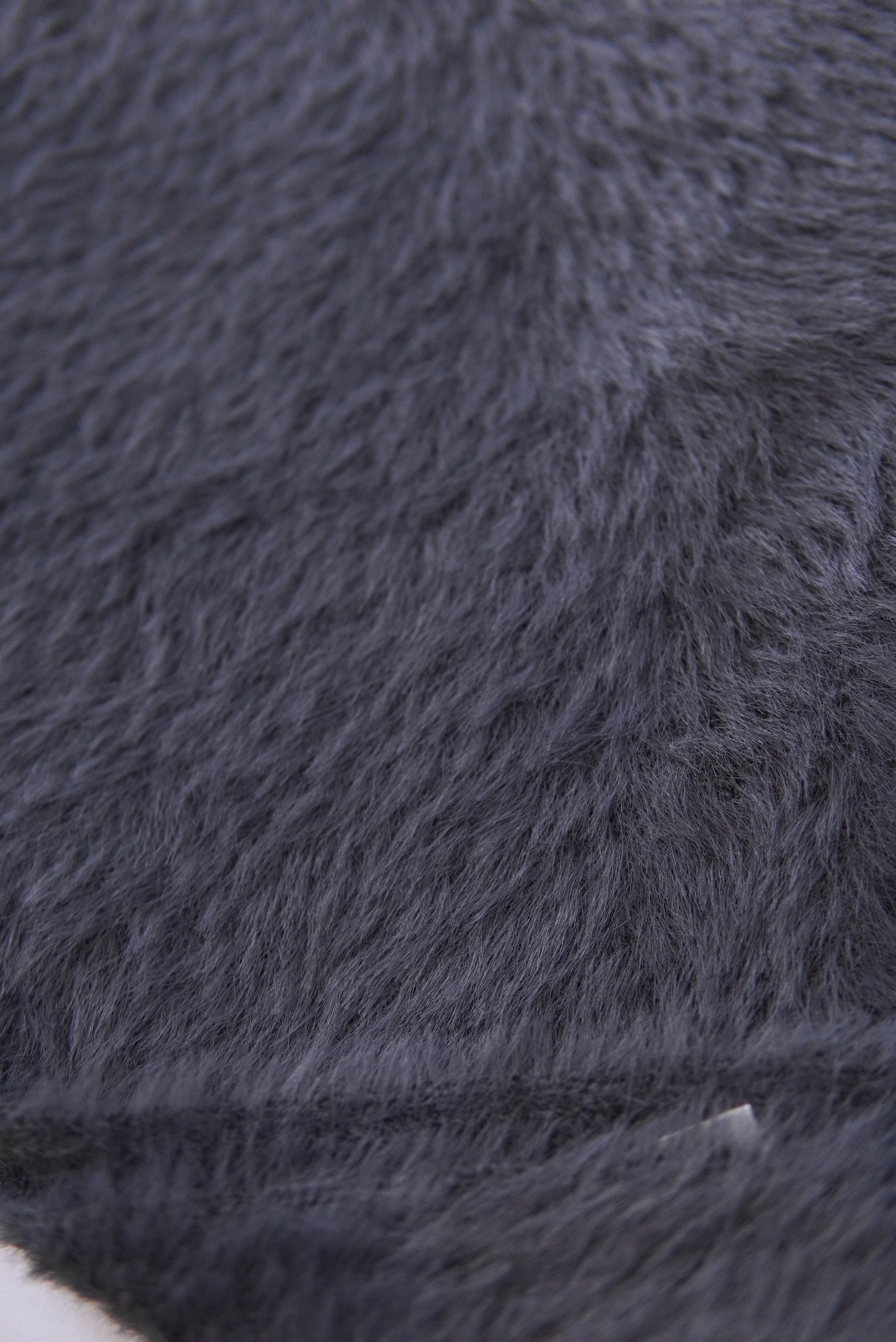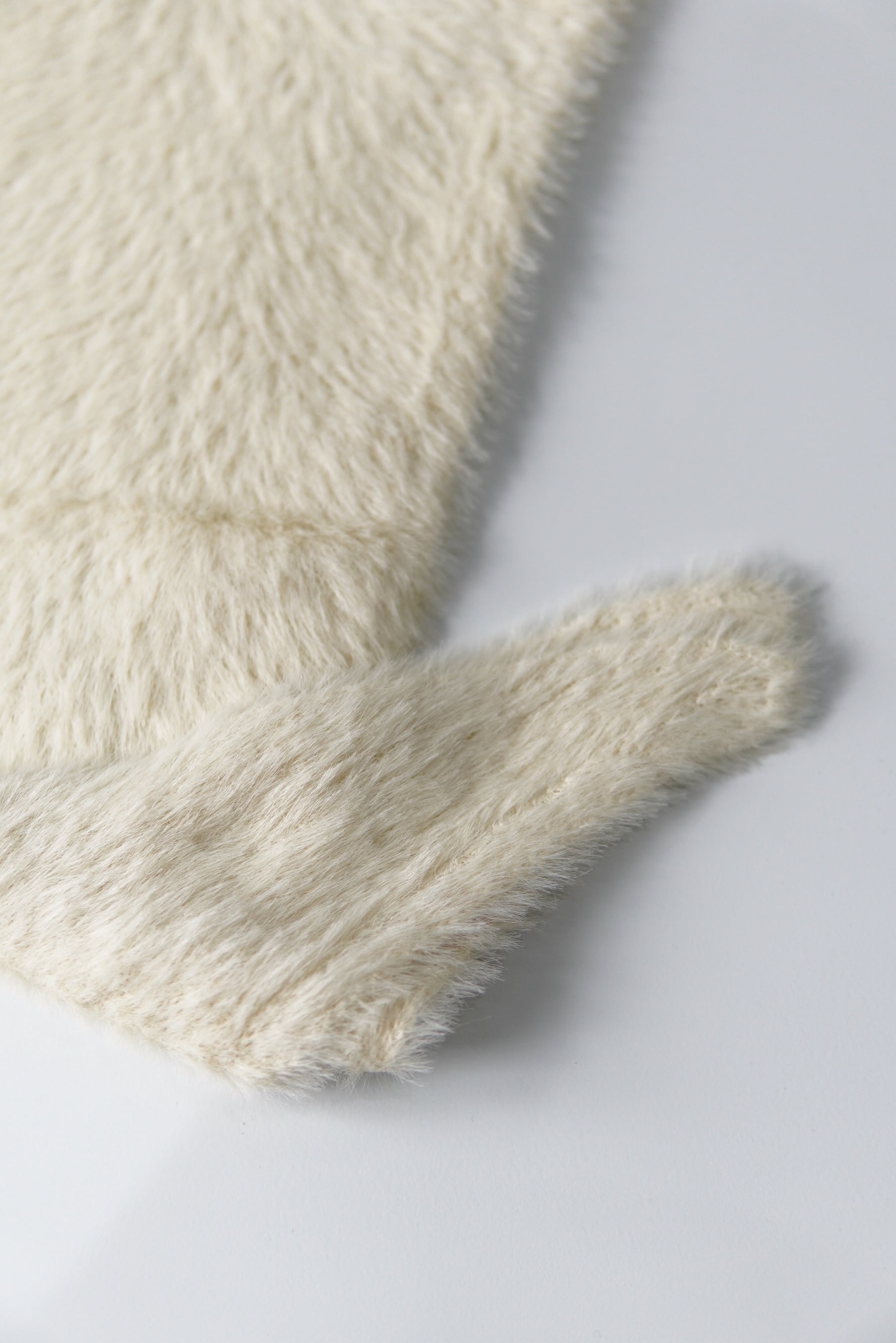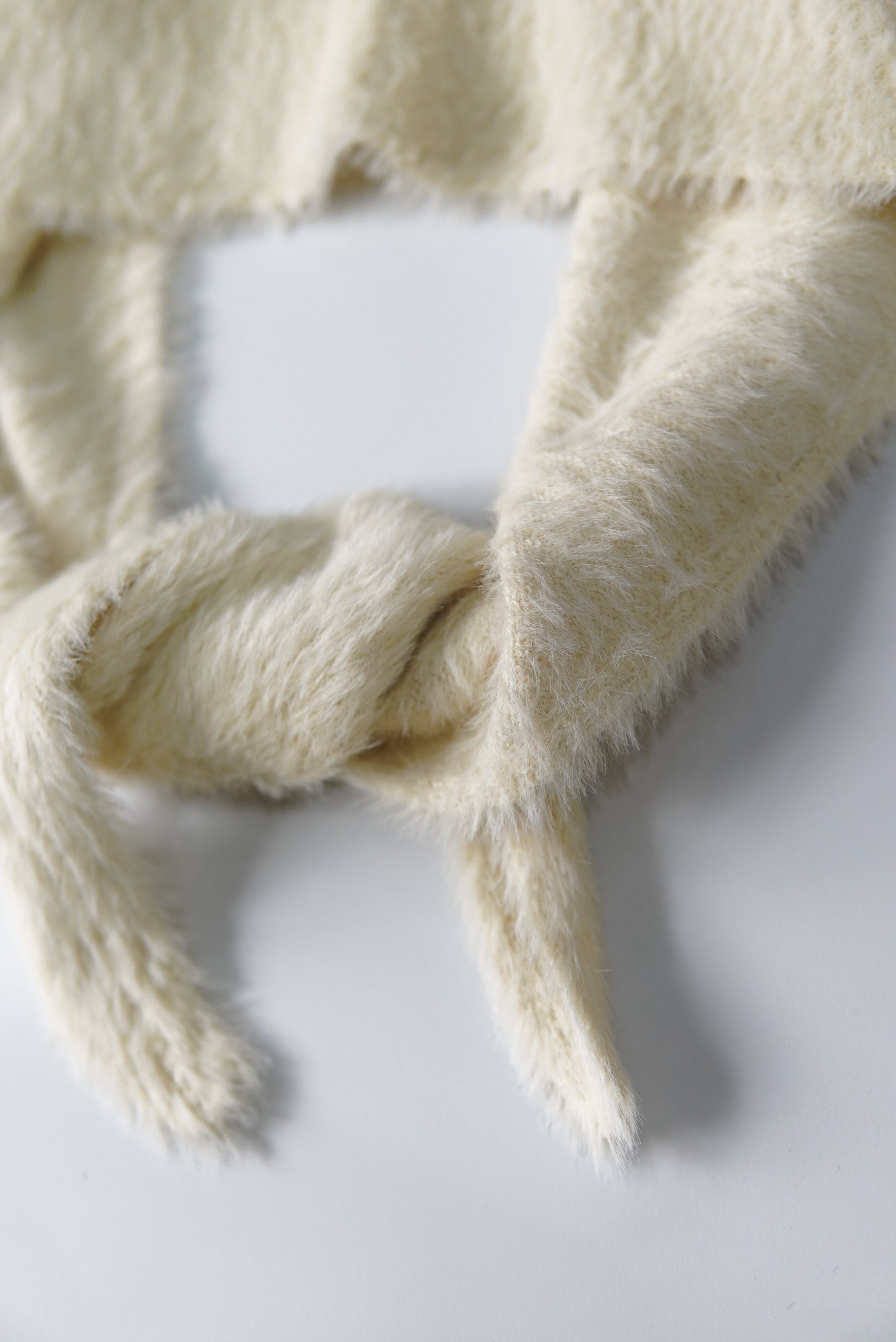 ファーのようにふんわりとした毛足のナイロン糸を使用したニットスカーフ。