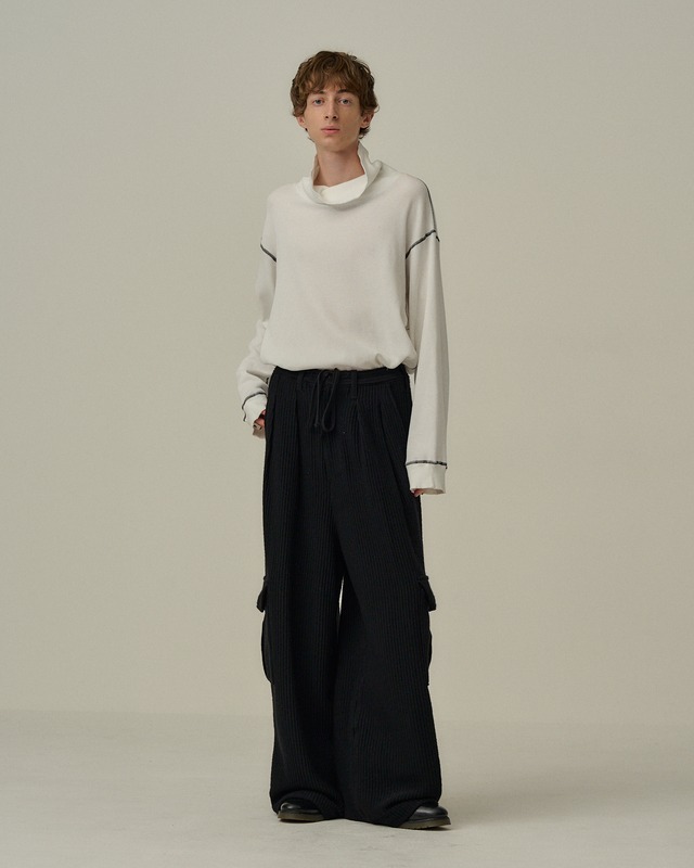 ワークやミリタリー由来のカーゴパンツですがあえてドレスのパターンテクニックを応用し
