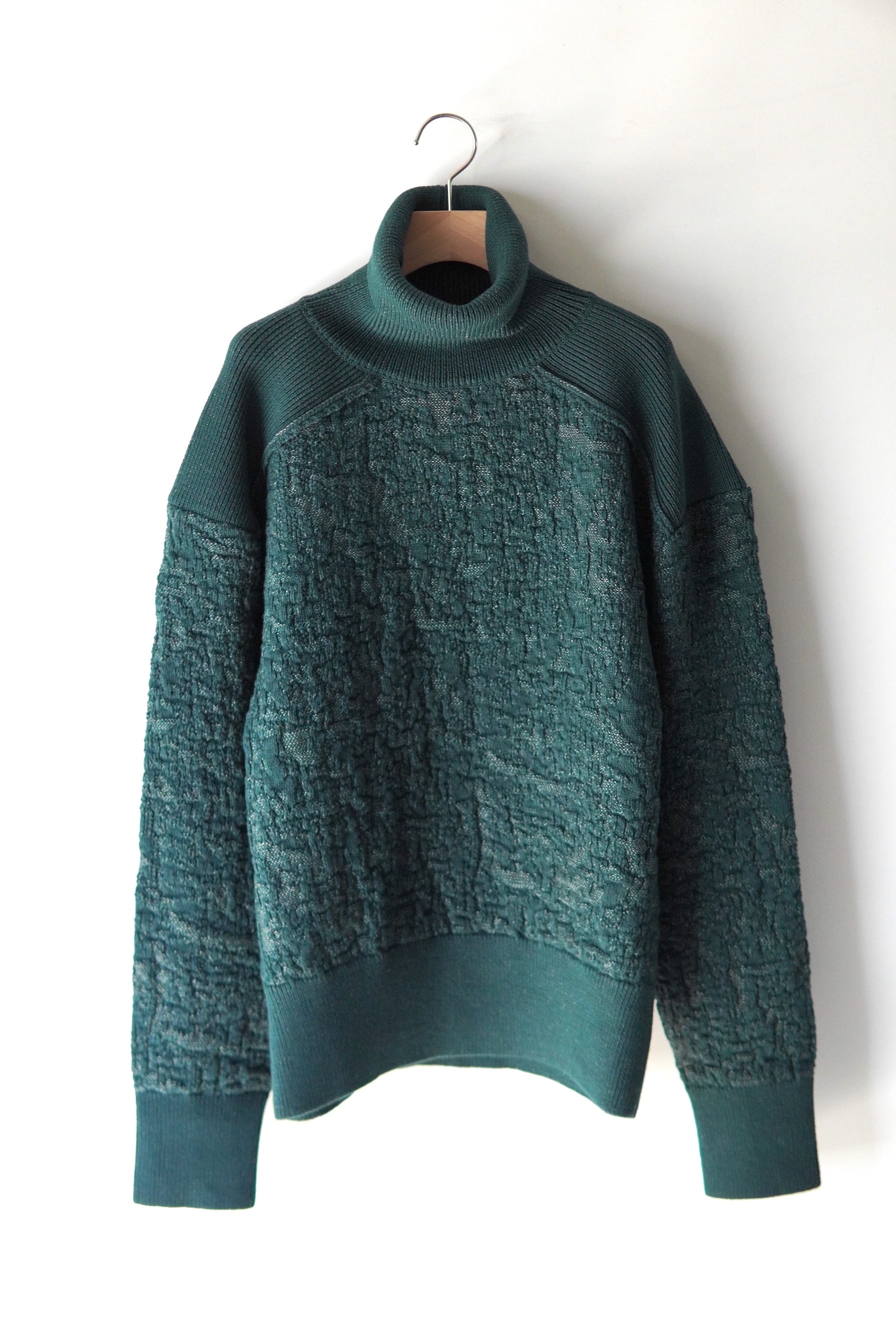 アルル地方で放牧されたメリノ種のウールと透明糸を立体的に編み込んだコマンドセーター