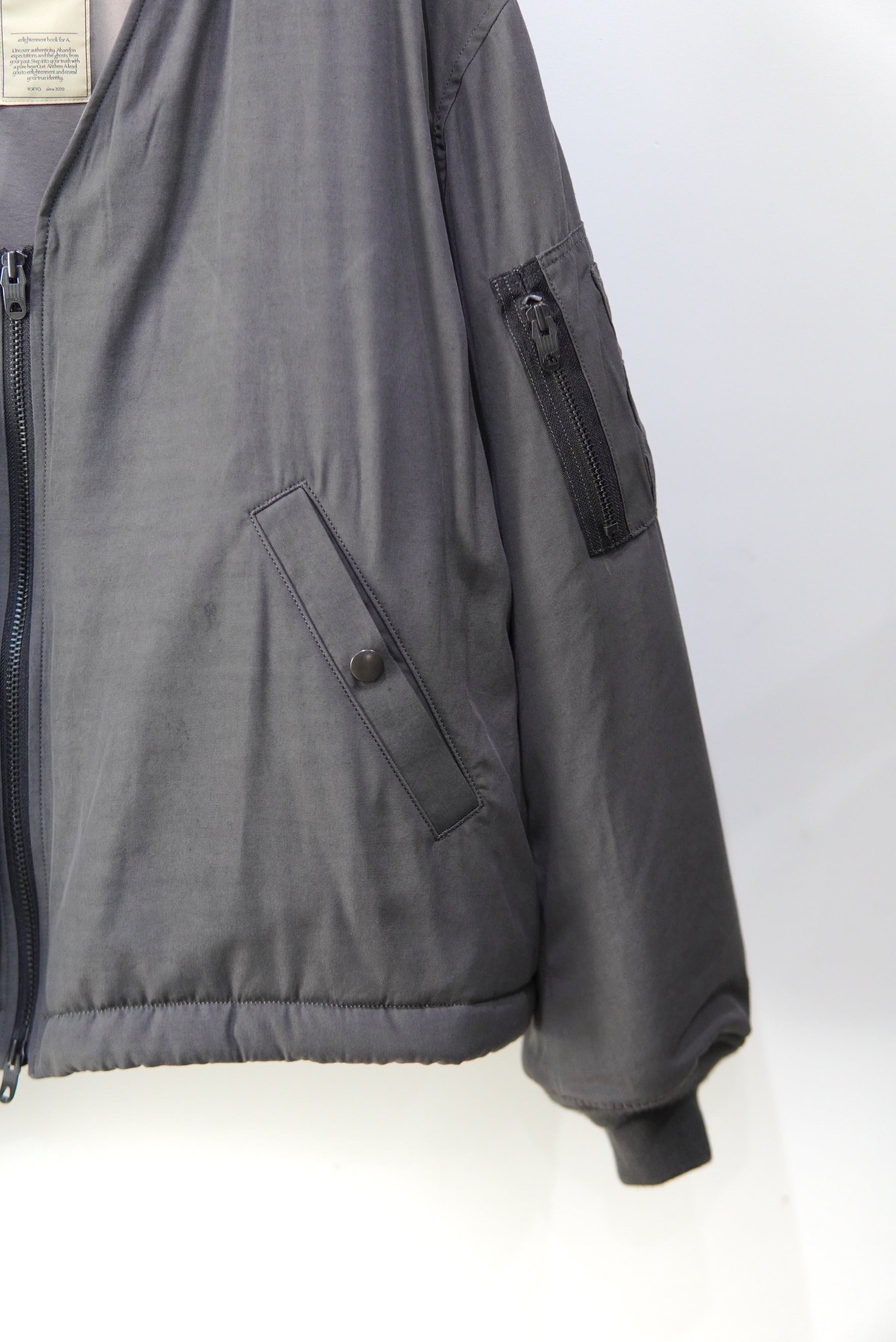 MA-1をベースにカッティングやディテールなどでアレンジを効かせたカラーレスの中綿ナイロンブルゾンです。