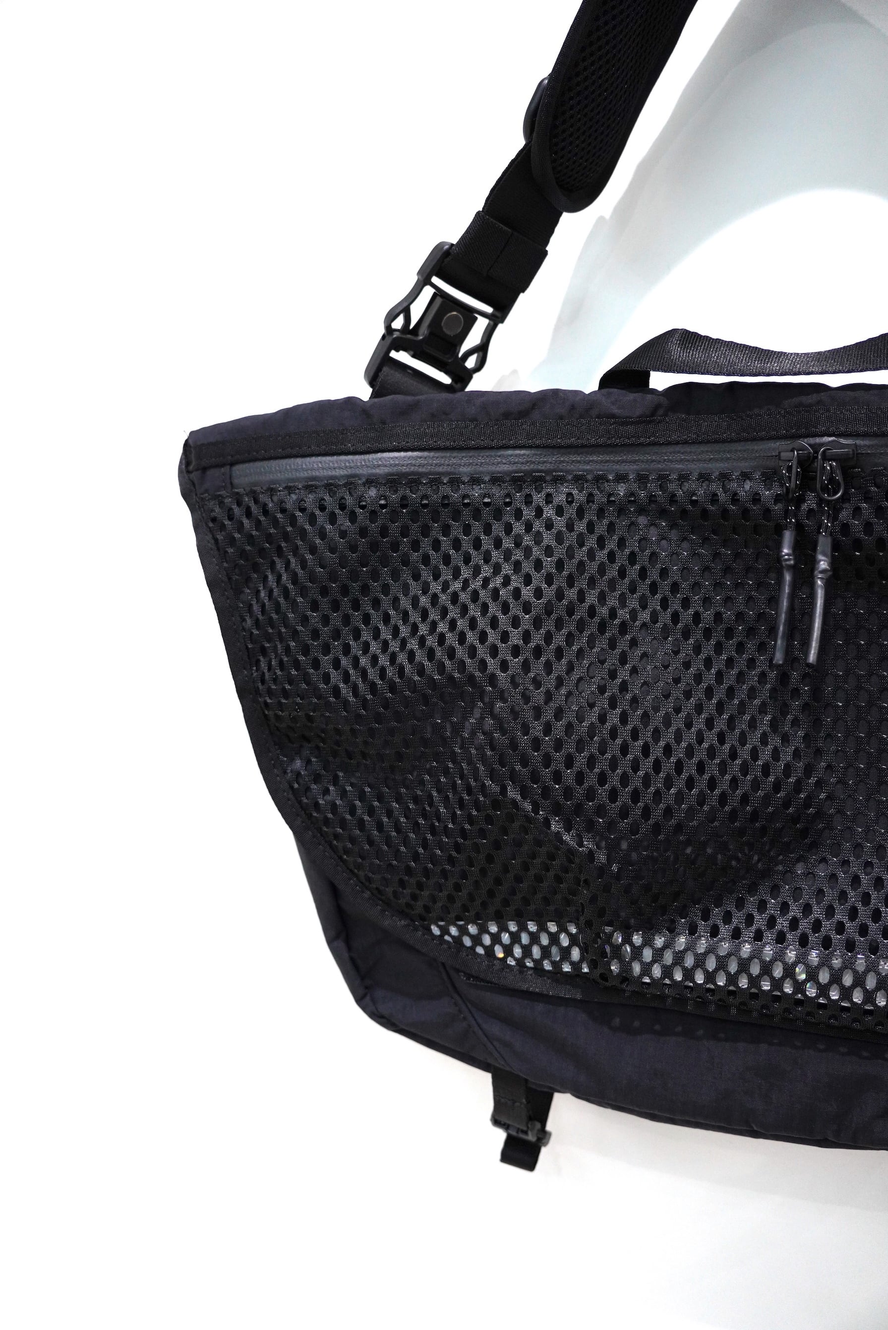 kullerは軽量で耐久性のある生地を使用することで、maastikのコンセプトの1つでもある身軽さを備え自転車はもちろん、街での使用も考え設計されたバッグです。フラップ全体にメッシュポケットを配置し、メッシュの隙間から反射するリフレクターが夜間の安全性を確保するのと同時にバッグの存在を引き立てます。バッグの大きな部分を占めるフラップポケットにメッシュ素材を用いることで軽やさがより増し、メッセンジャーバッグ特有の重たいイメージから解放された印象に仕上がっています。
