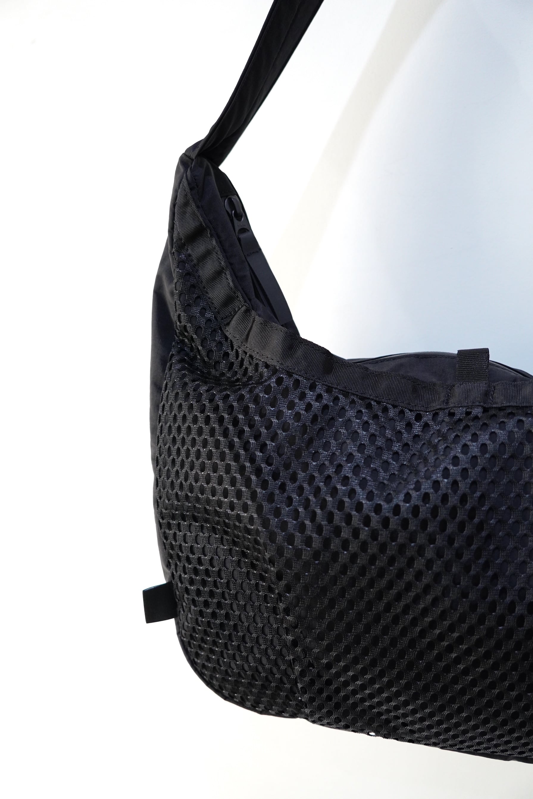 9Lの容量があり13インチのラップトップも入るサイズで、フロントの全面に設けられた外ポケットはメッシュ素材を採用し収納するアイテムによってバッグの表情も変化します。