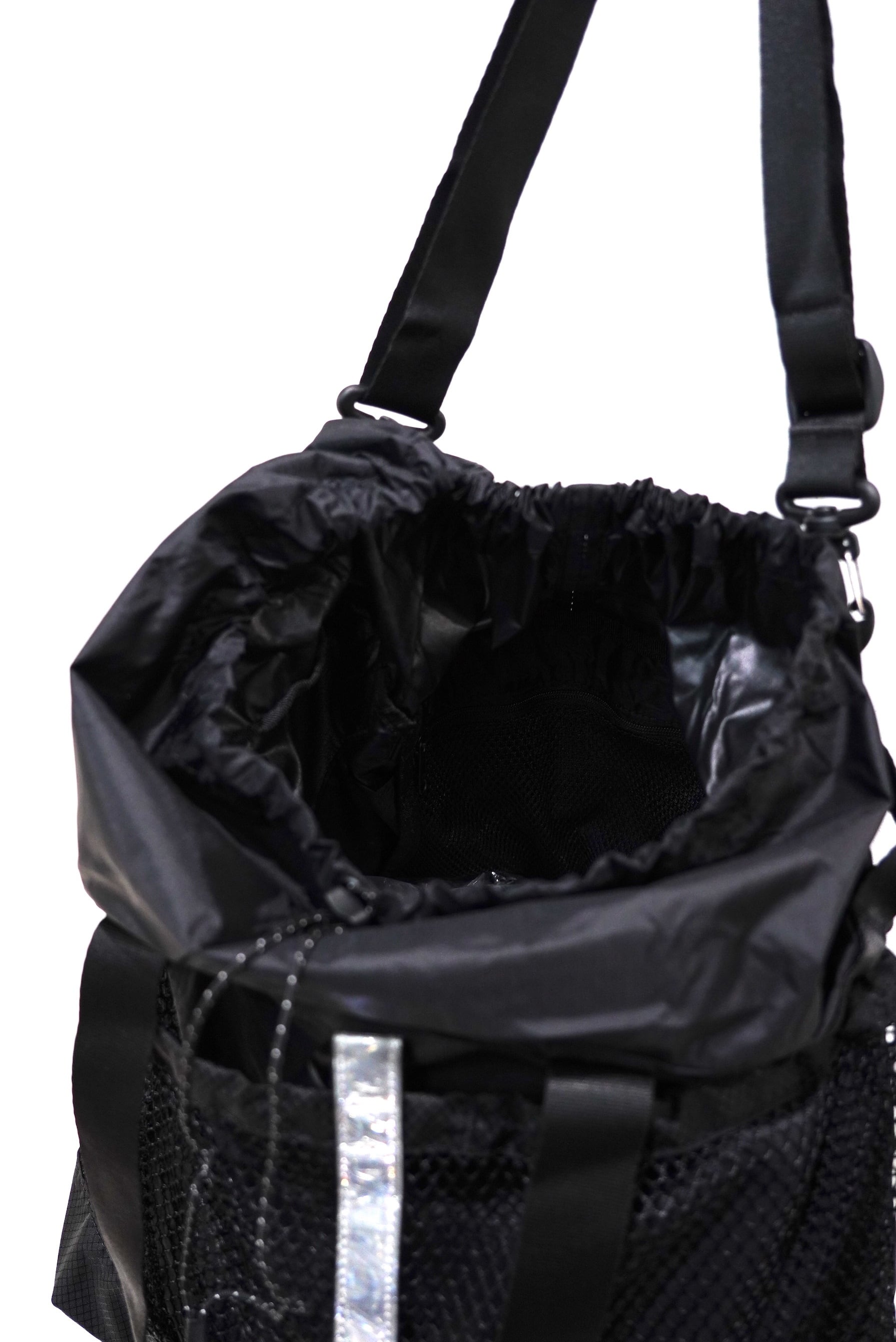 外側の大型メッシュポケットは、細かな仕切りをあえて作らないことで軽アウターの収納も可能で、コードを締めることで細かなアイテムも安心して格納できる汎用性の高い仕様になっています。また、アクティブなシーンでの使用には、付属のショルダーストラップをつければななめがけも可能に。底部分にはナイロン210デニールの高強度リップストップ生地を使用。ポリウレタン(PU)コーティングを施した耐久性のある素材で、強度、耐摩耗性、耐引裂性を示します。幅広いシーンで活躍してくれるシンプルなアイテム。