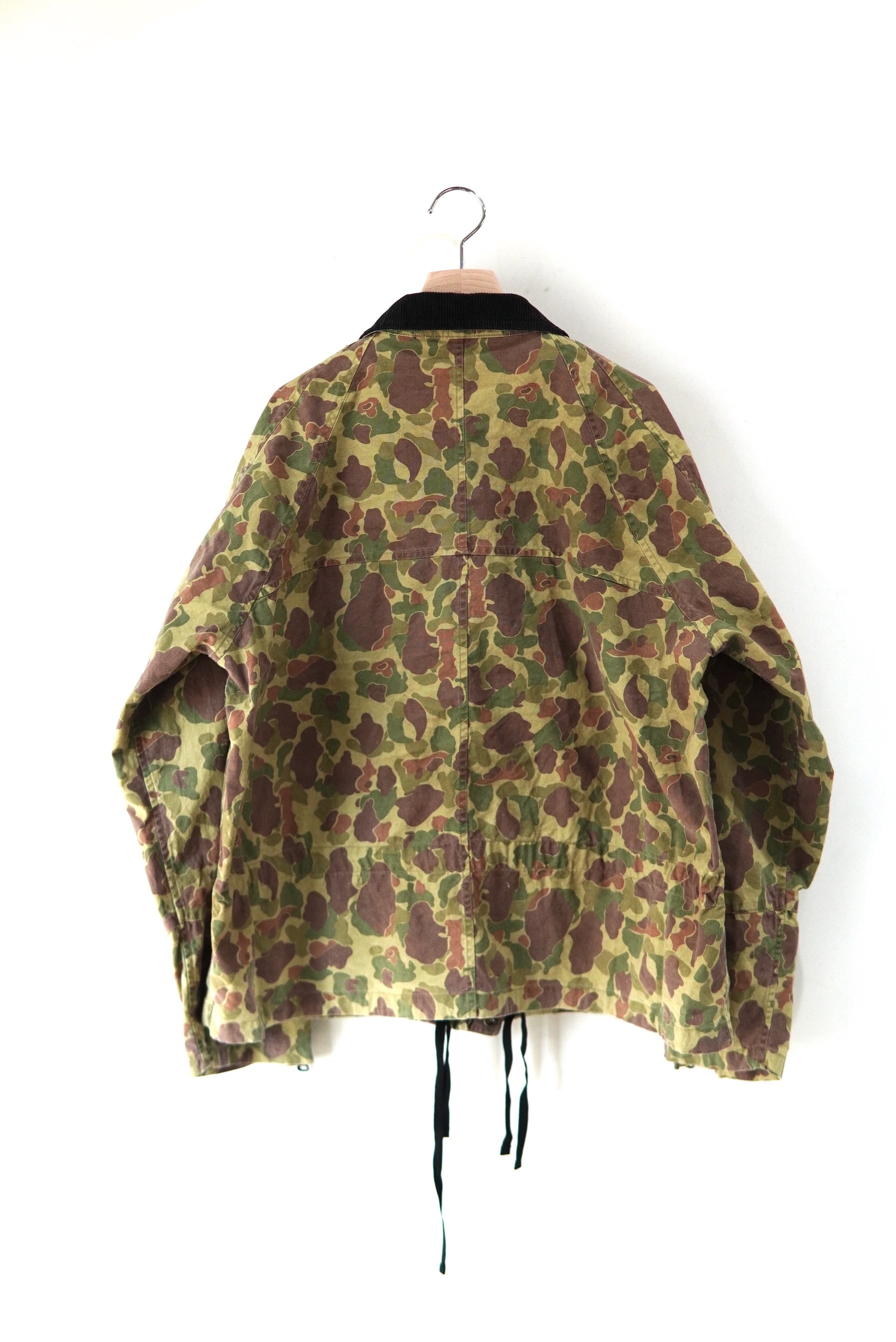 継続して製作しているカモフラージュのジャケット。今作ではミリタリーではなく古いアウトドアギアをベースに製作しました。