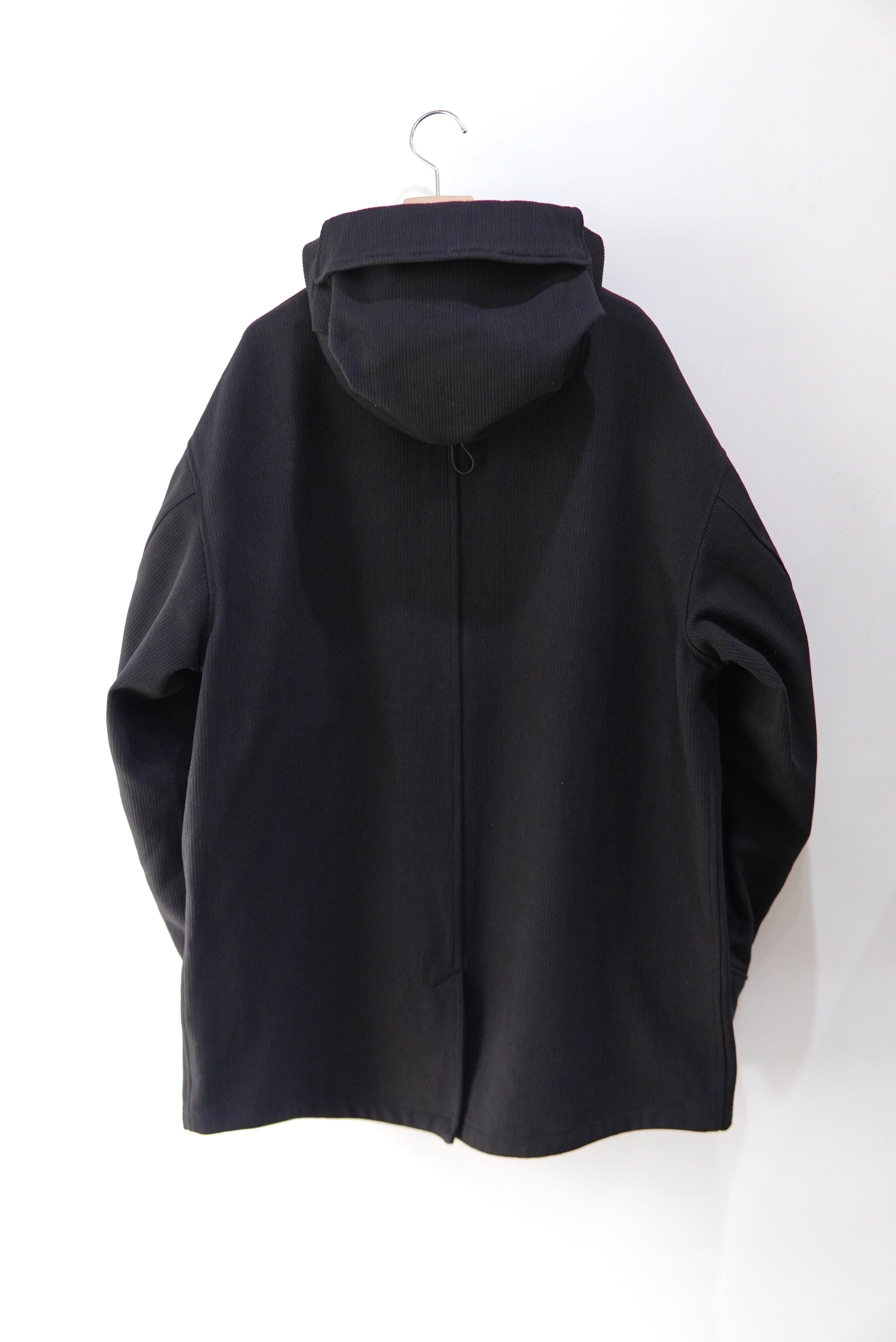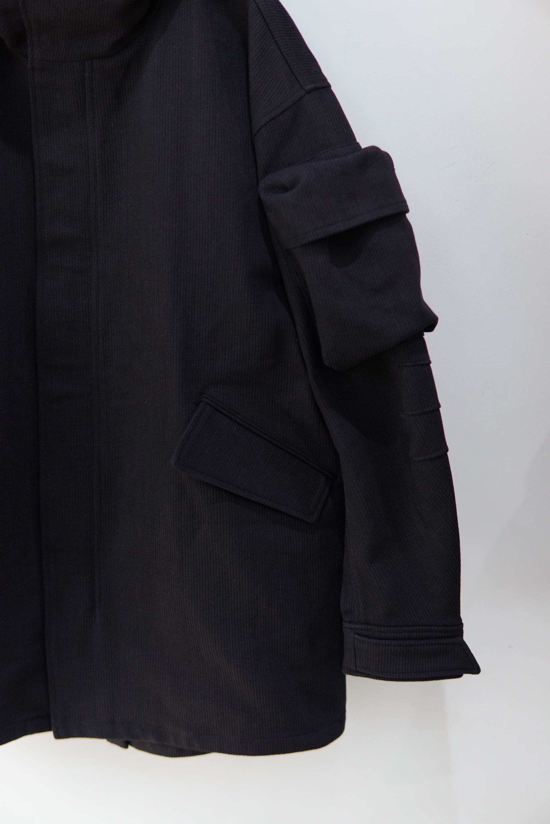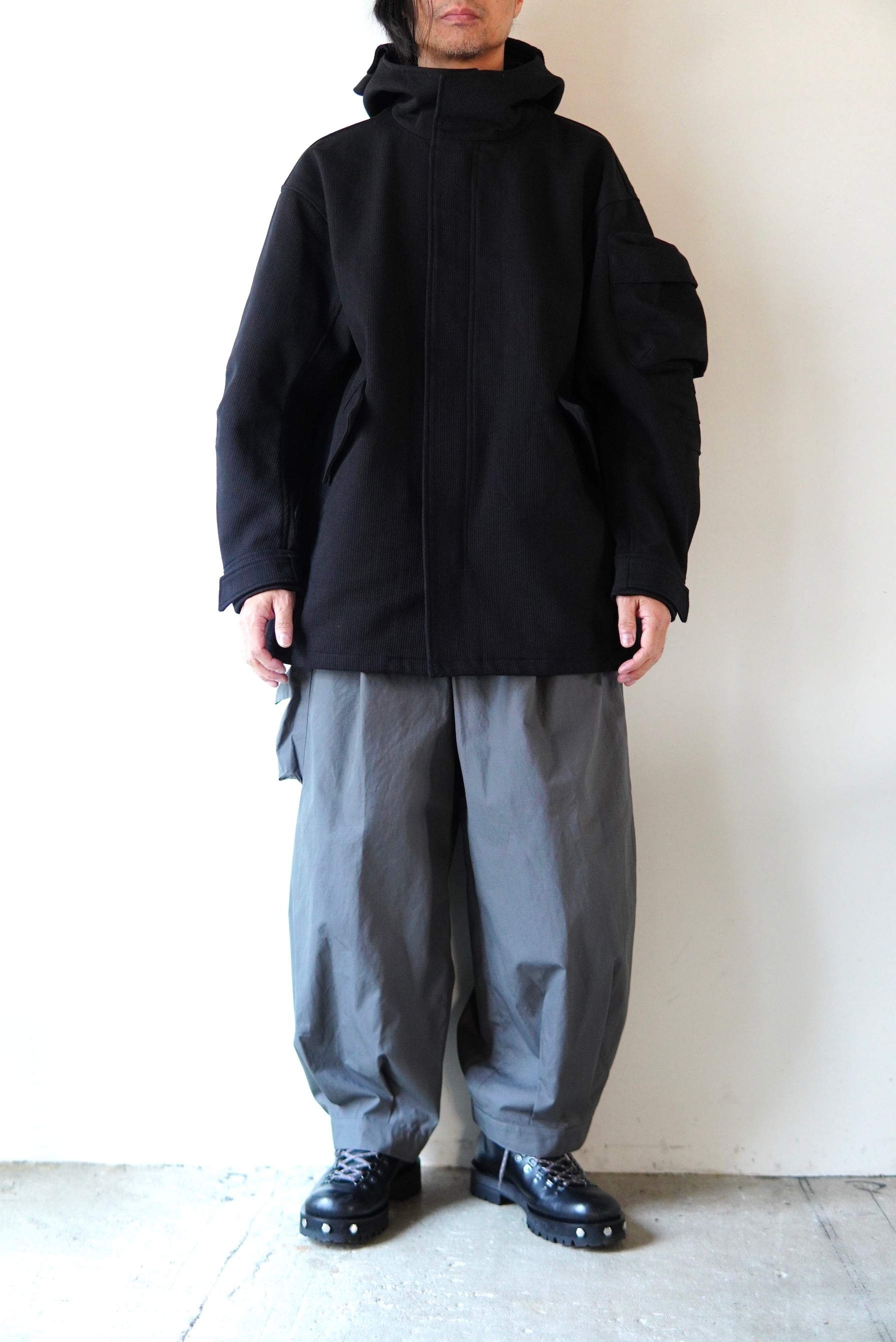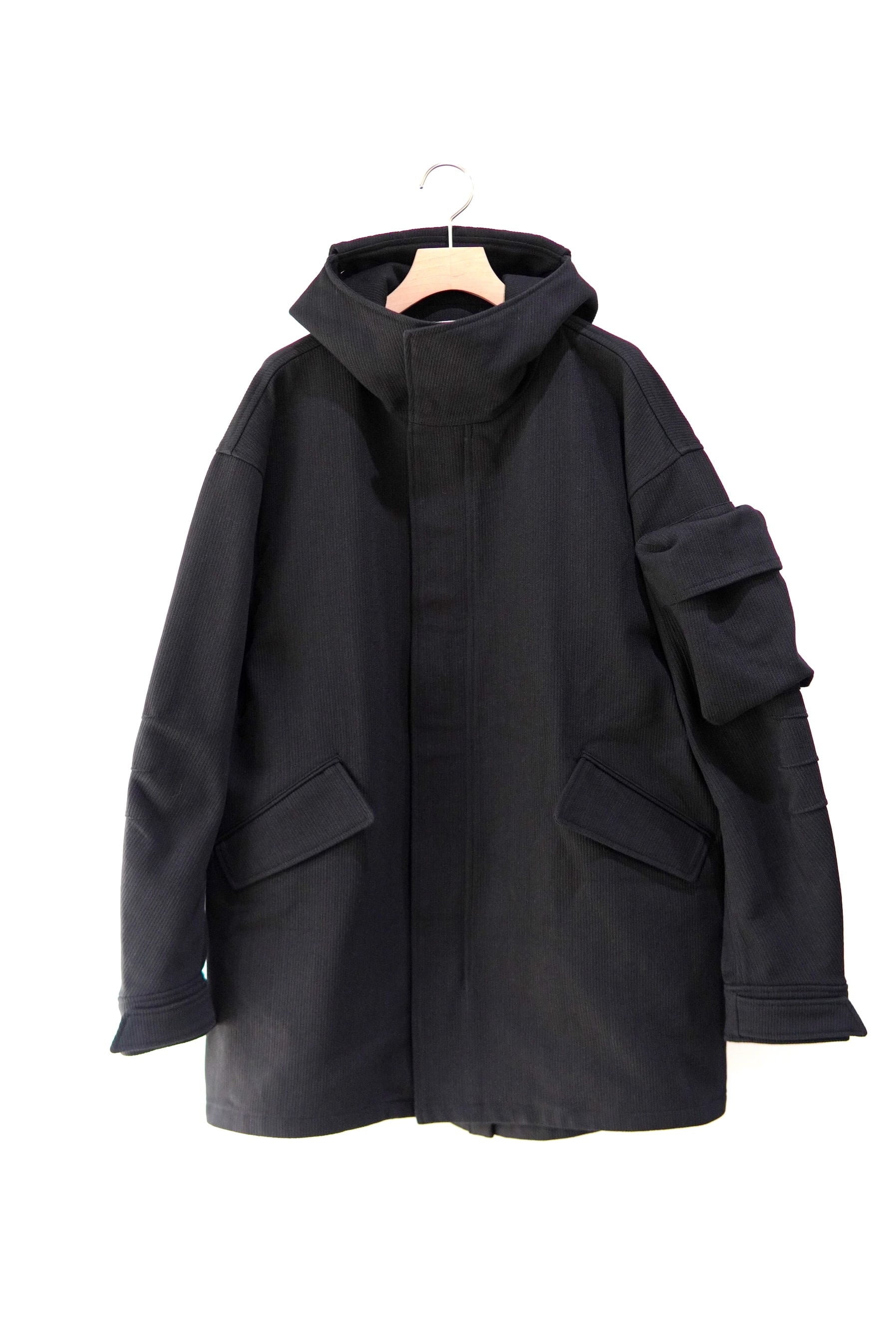 特徴的な腕のポケット、立体的なボックスプリーツのフード、程よいハーフ丈のバランスも良いです。