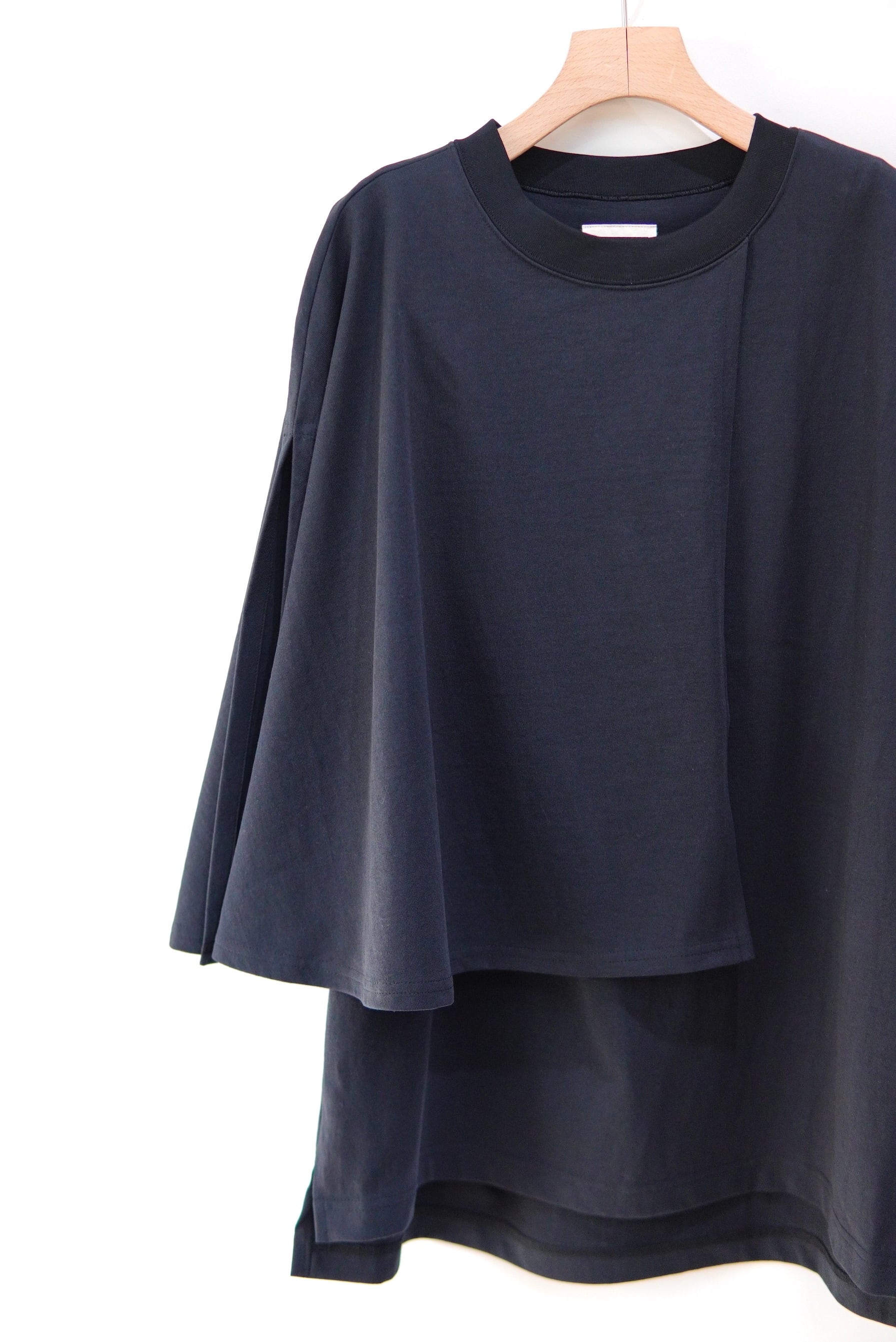 片袖はロングスリーヴ、もう一方はケープとなり、動きによりドレープ感が出ます。