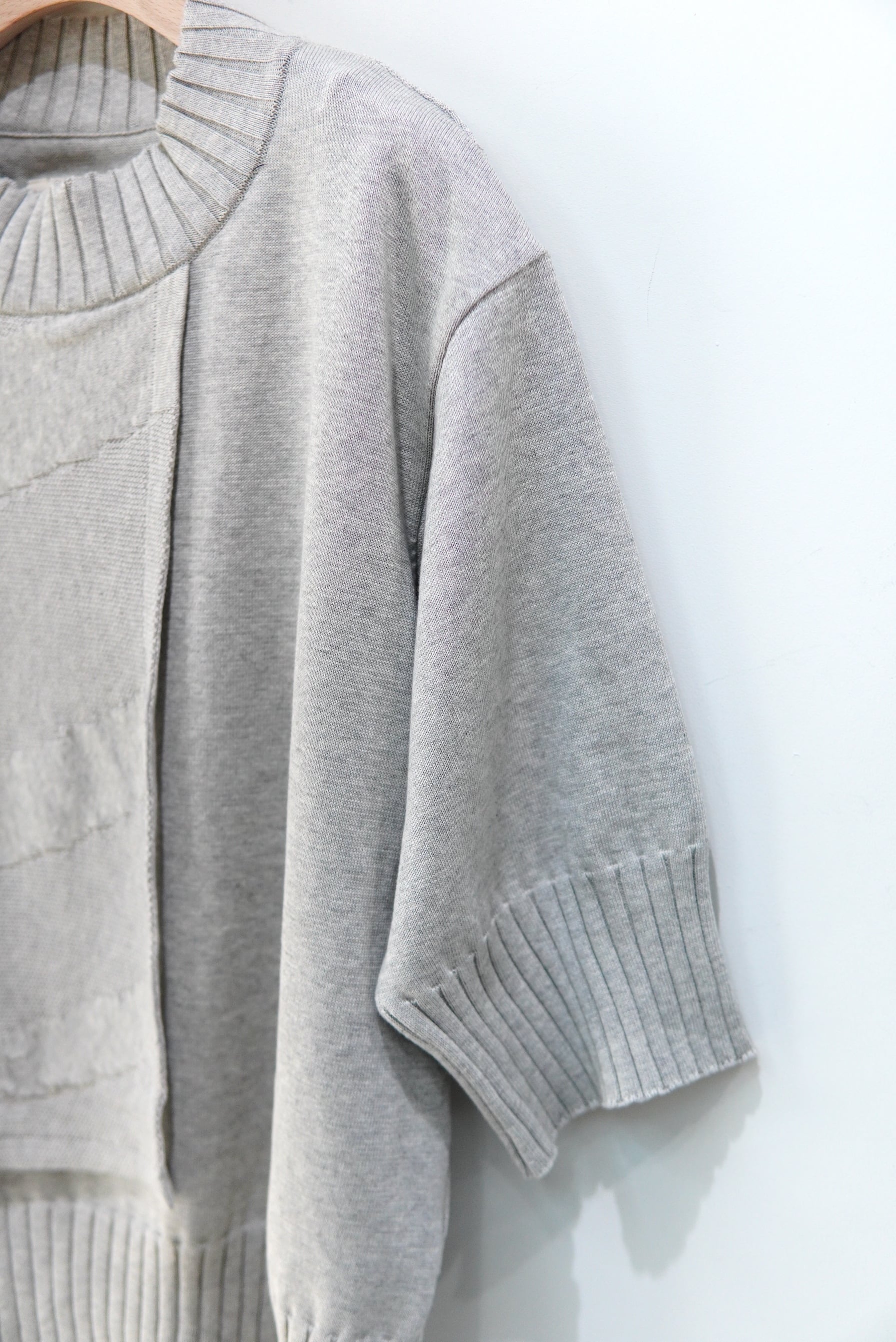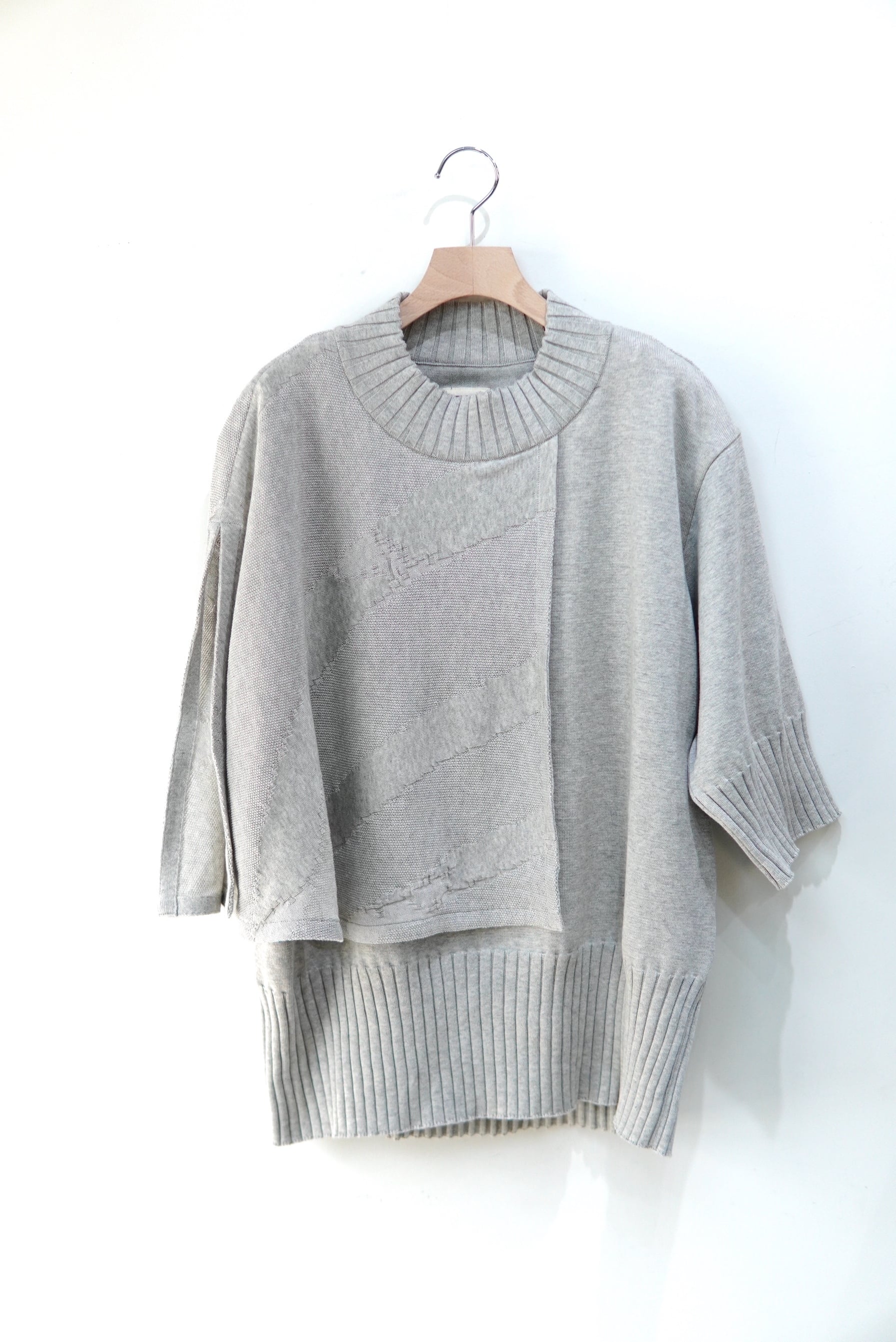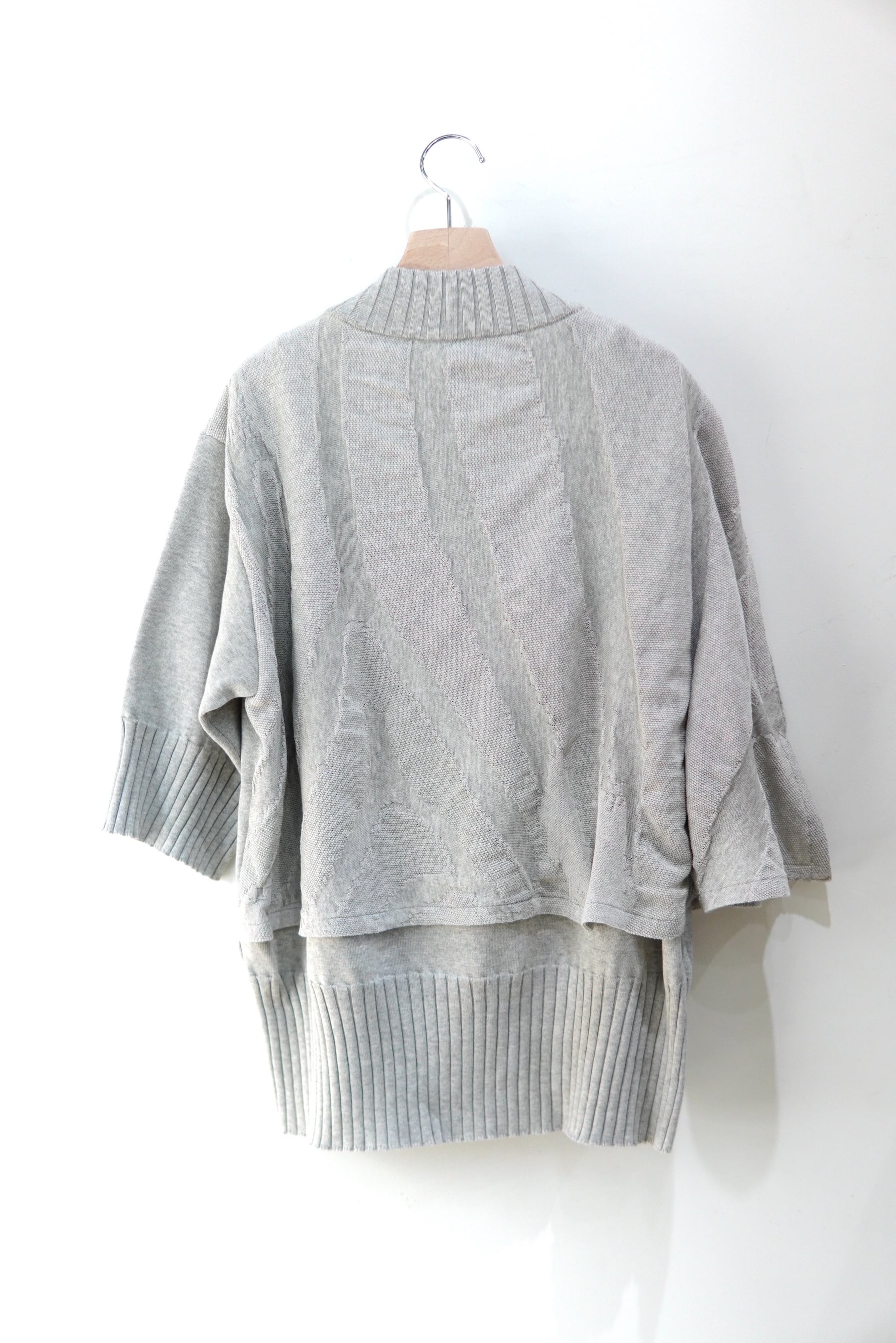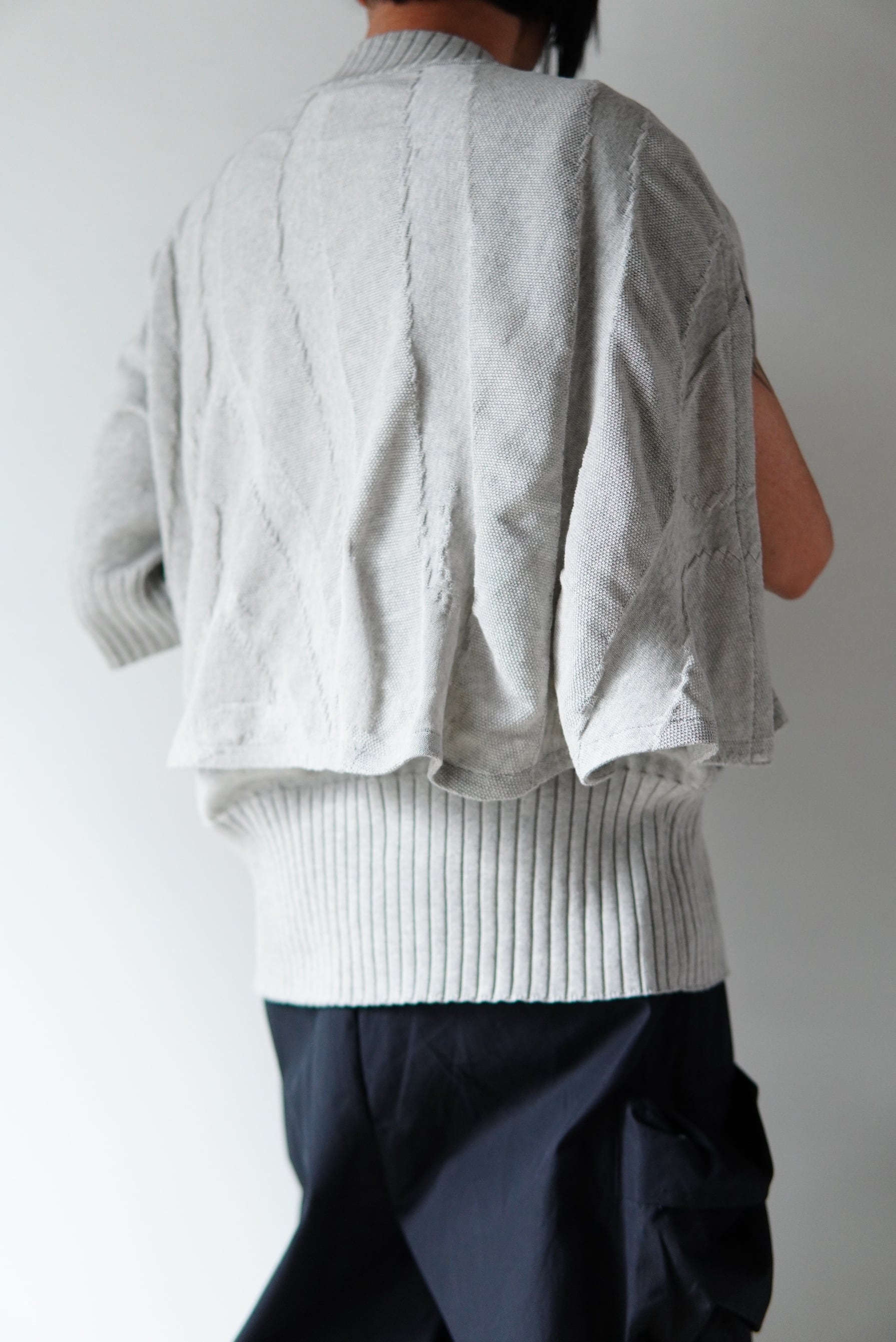 織り構造のみで作成されたゼブラパターンのニット生地が印象的なサマーニット。