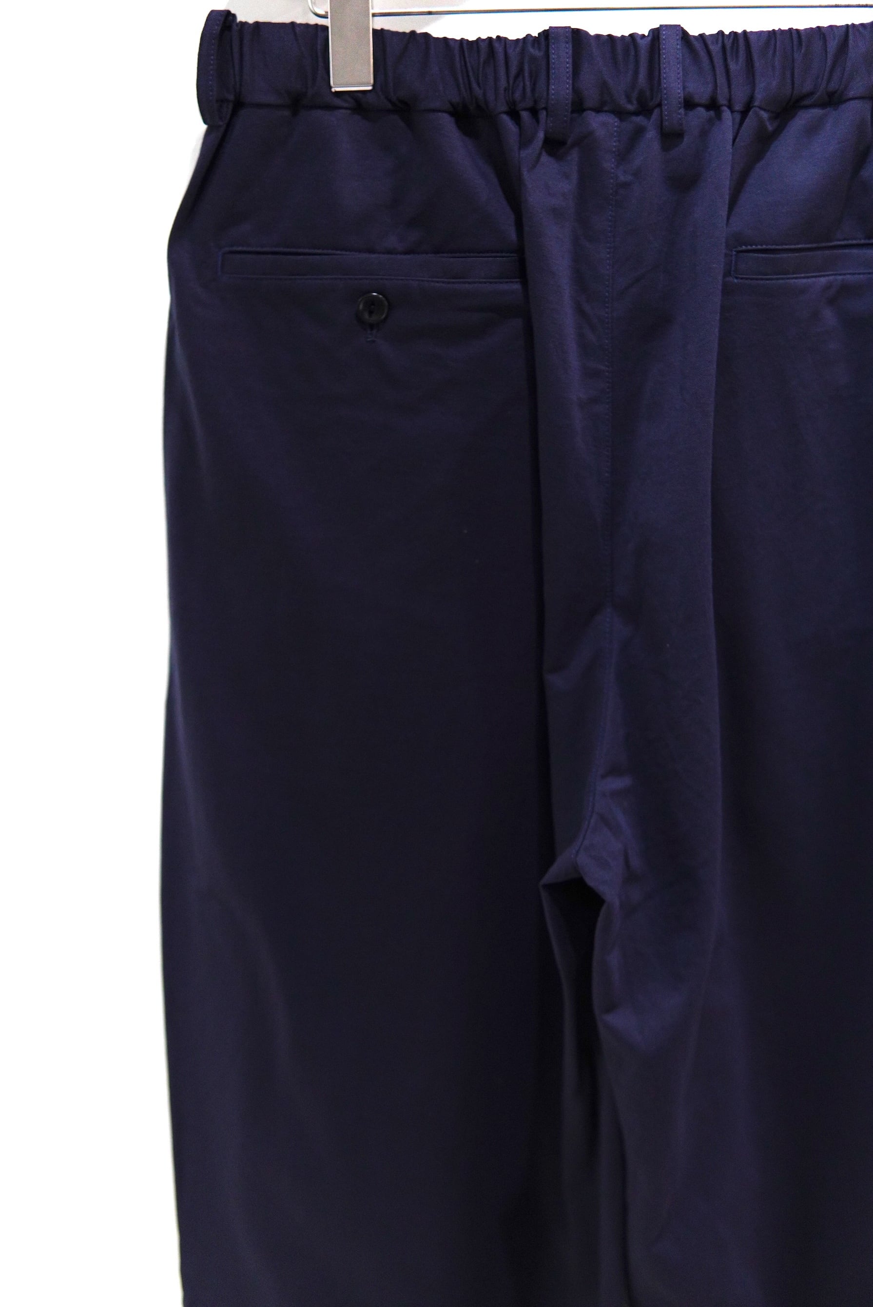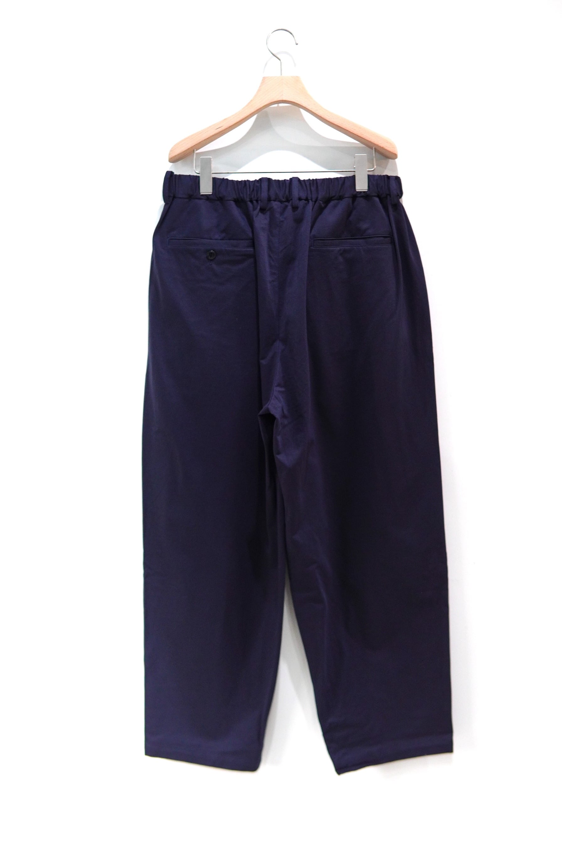 2タック、ウエストはイージータイプのワイドパンツ。