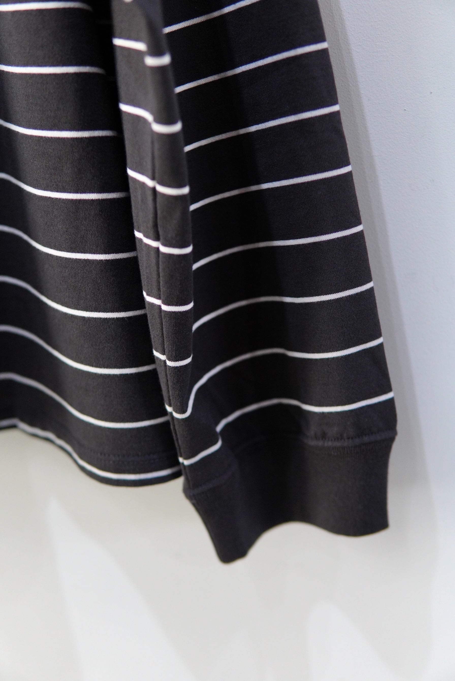 離れて見ると少し錯覚し、擦れて見えるような濃度と細さのナローボーダーを採用。