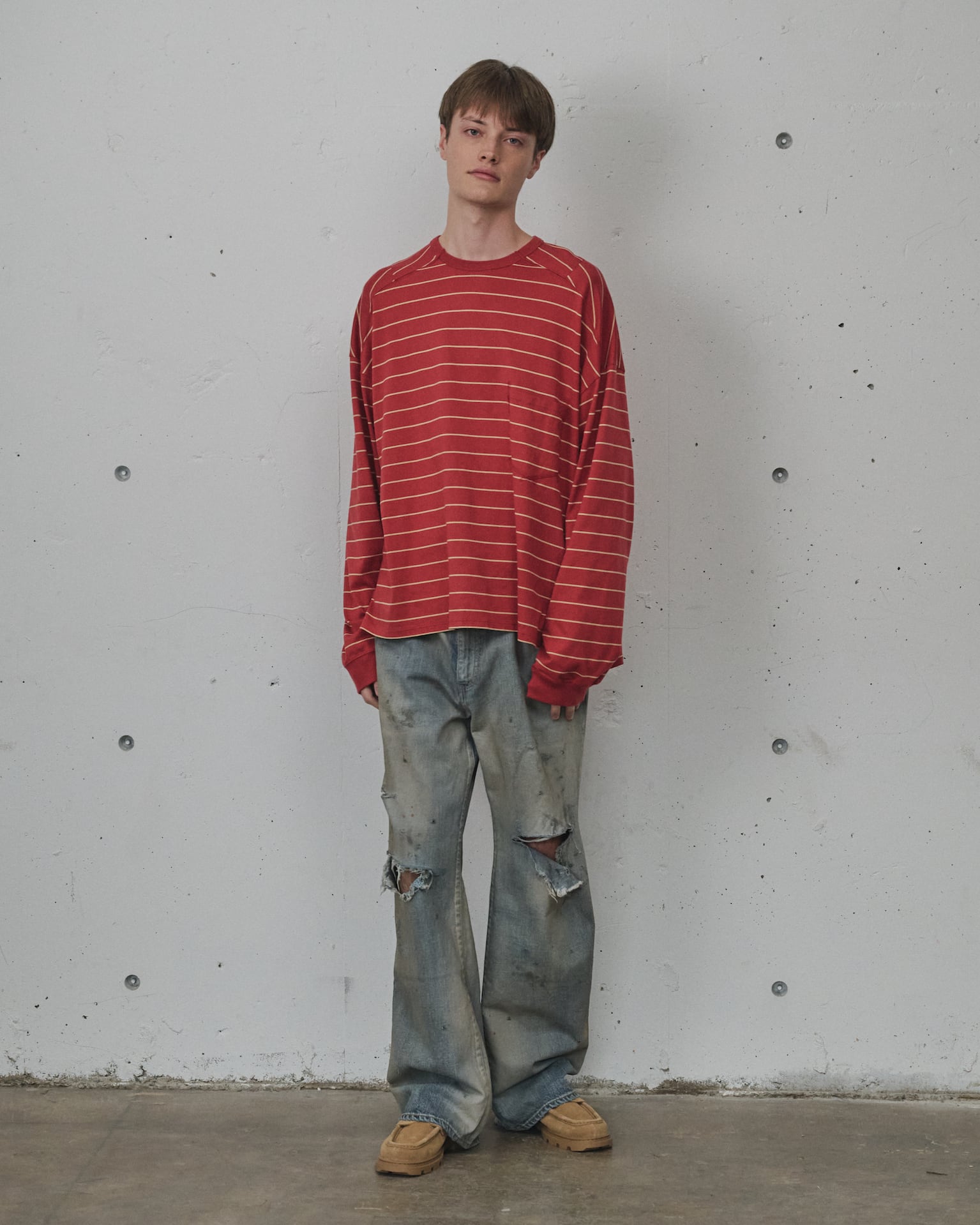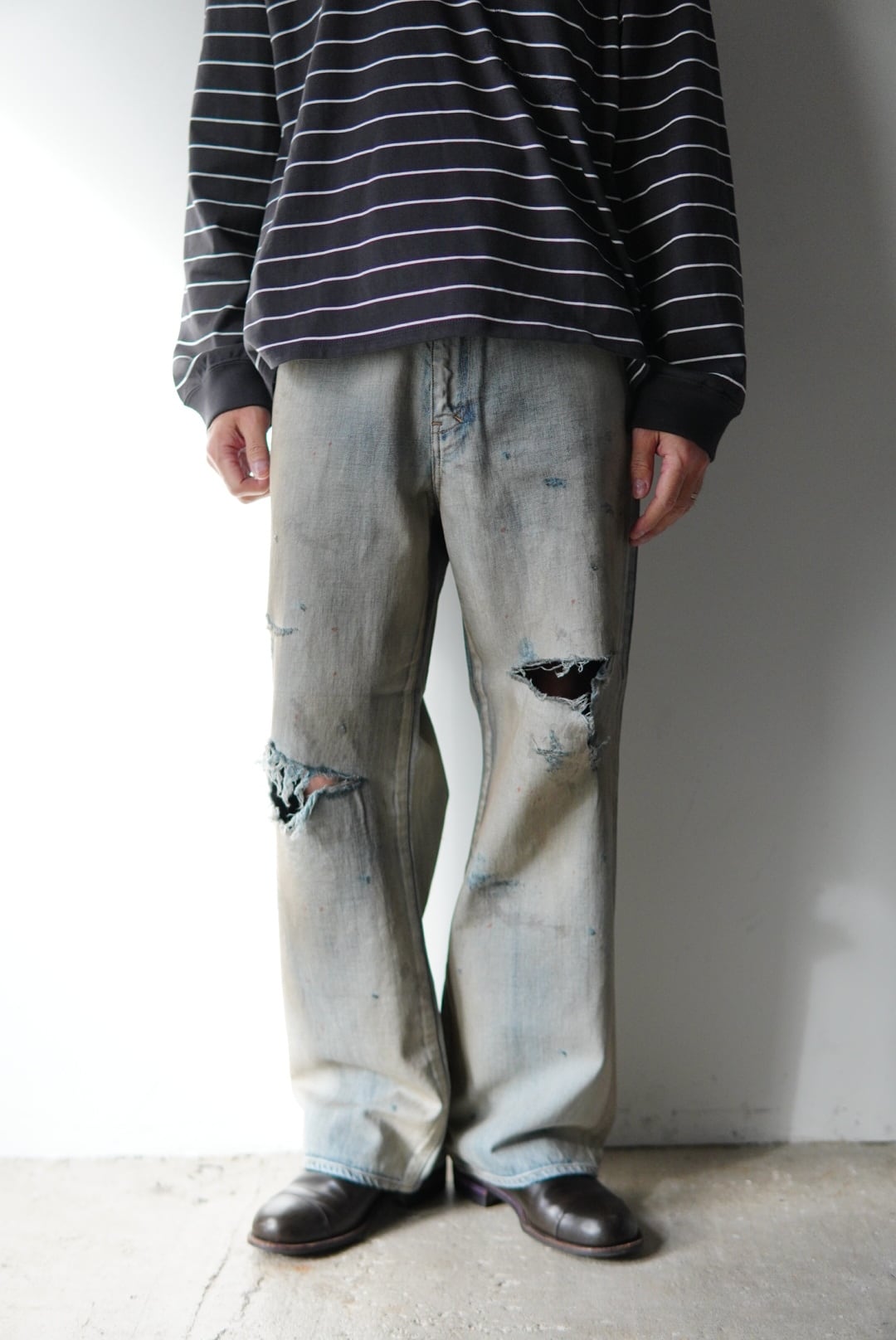 ミドルストレートをベースに迫力のあるクラッシュダメージを加え、より強くグランジの空気を纏わせております。