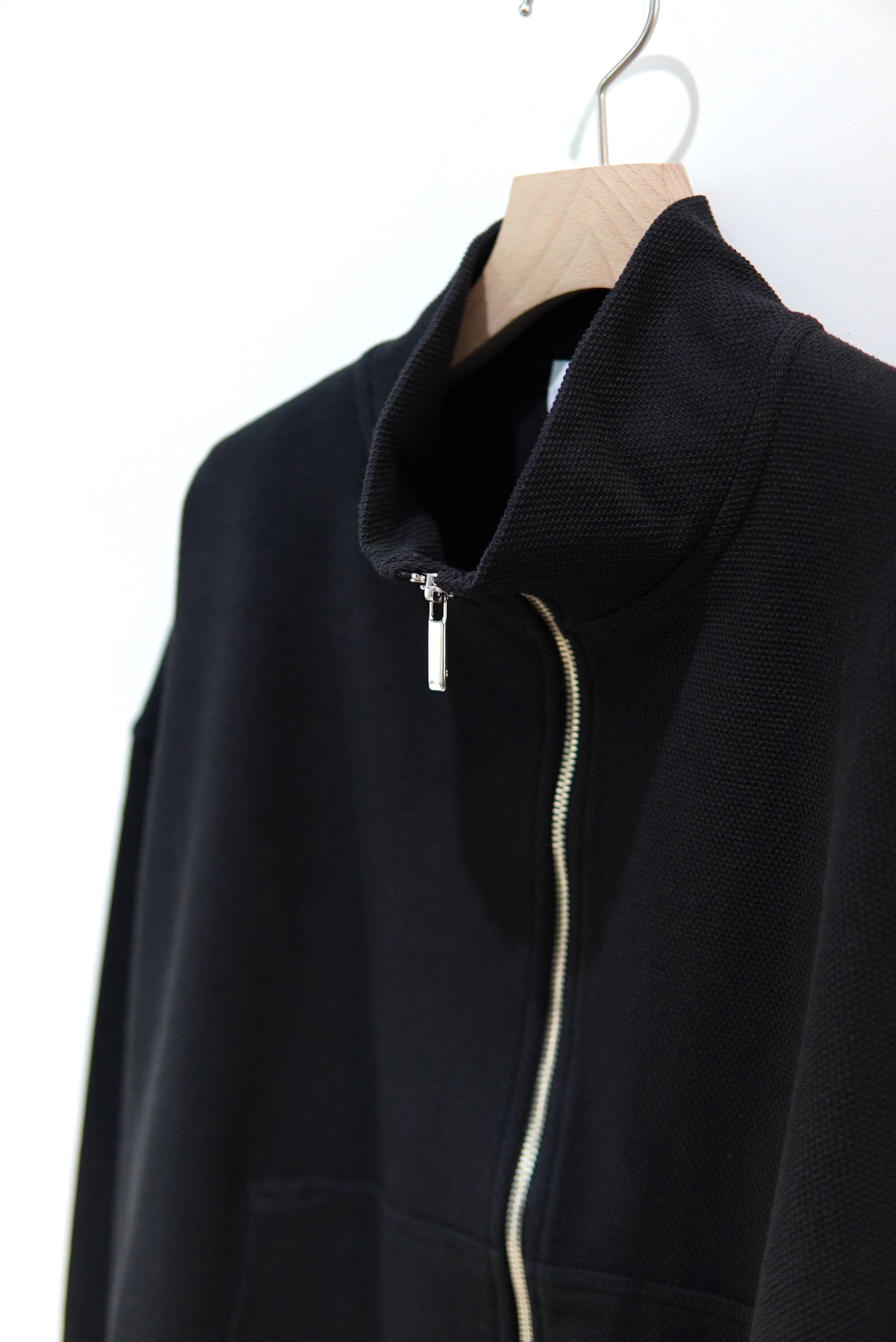 REVERBERATE リバーバレイト 今期はボックスシルエットを採用。 カンガルーポケットを配したスタンドカラーデザインで、素材には鹿の子生地を使用している。ダブルジップ仕様で、上下からの開閉が可能。 MATERIAL 100% COTTON size 2 着丈 63cm 身幅 64cm 肩幅 62cm 袖丈 60cm