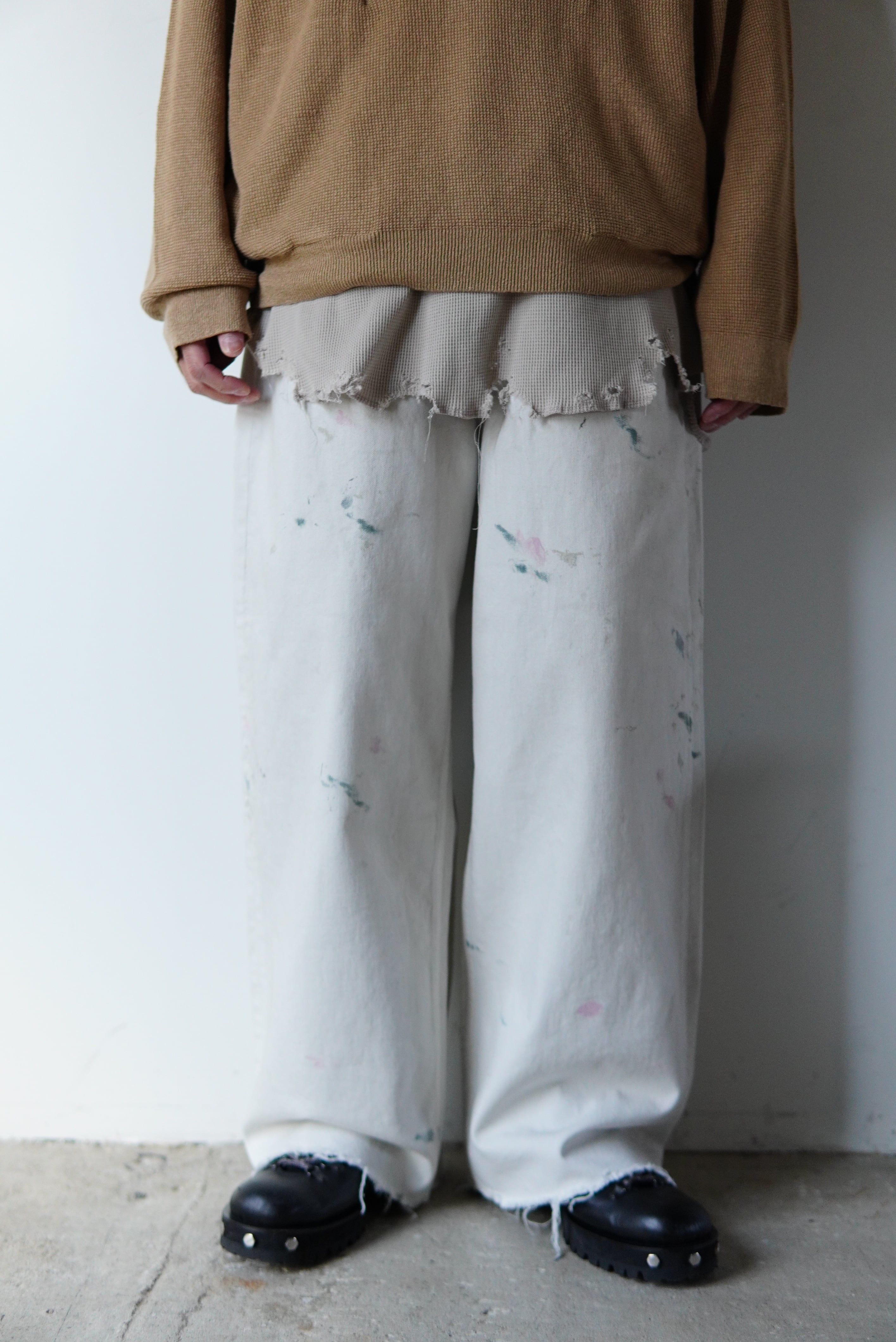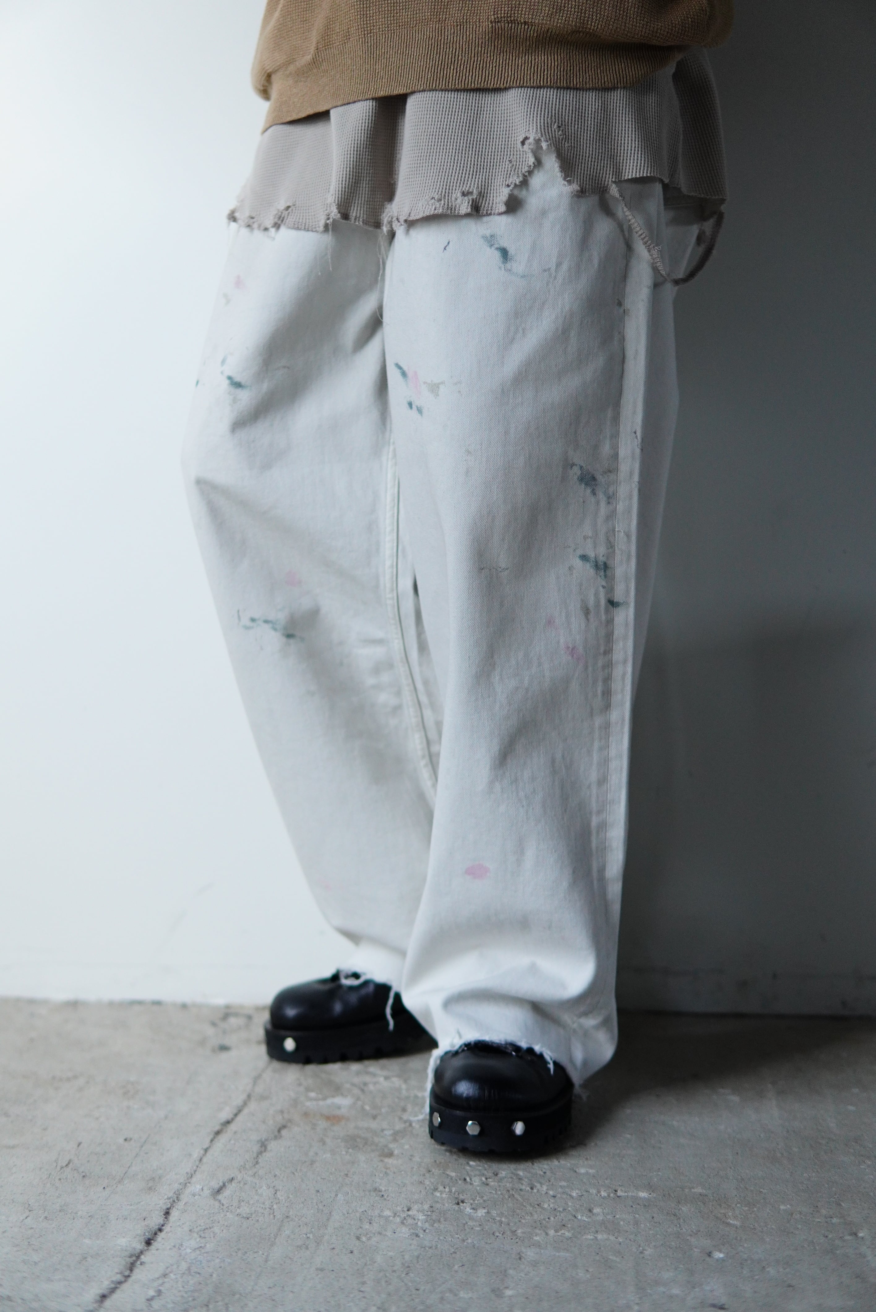 大きく生地分量を持たせたワイドさに、裾に向かって美しく落ちる#05。