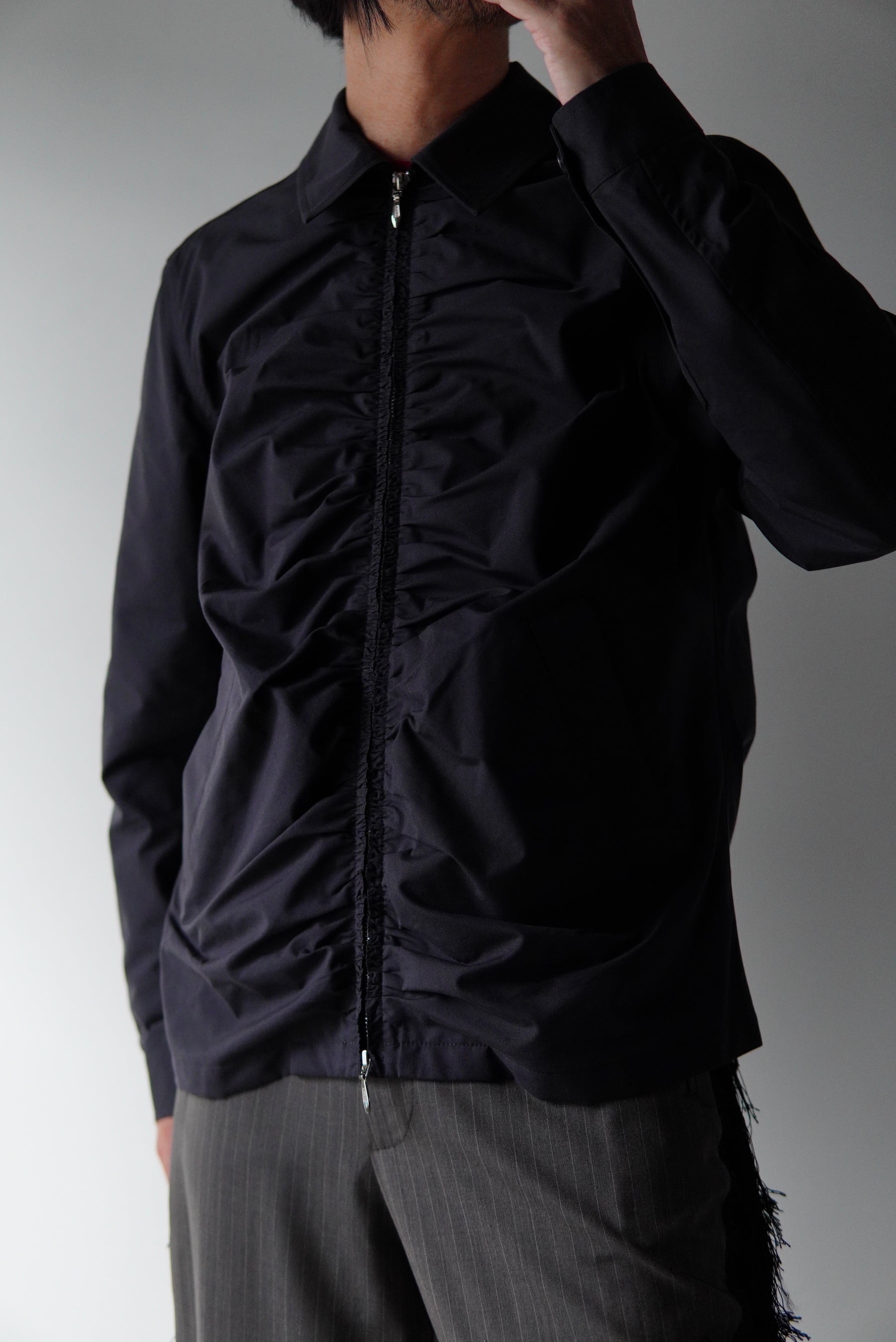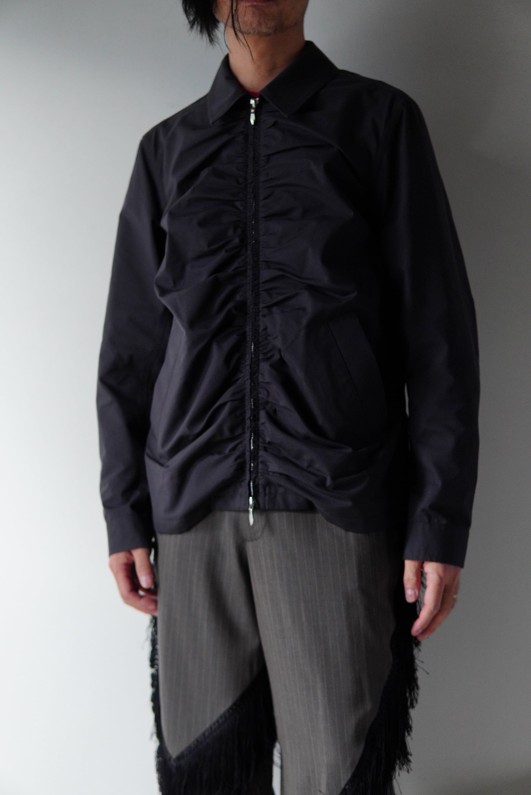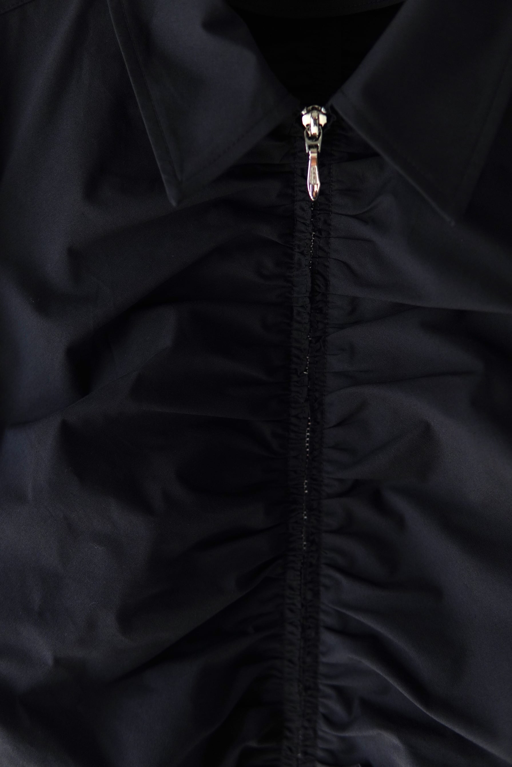 スポーティな意匠をベースに、シルク特有の気品と繊細なギャザーの造形が、カジュアルの中に揺らぐエレガンスを形成している。