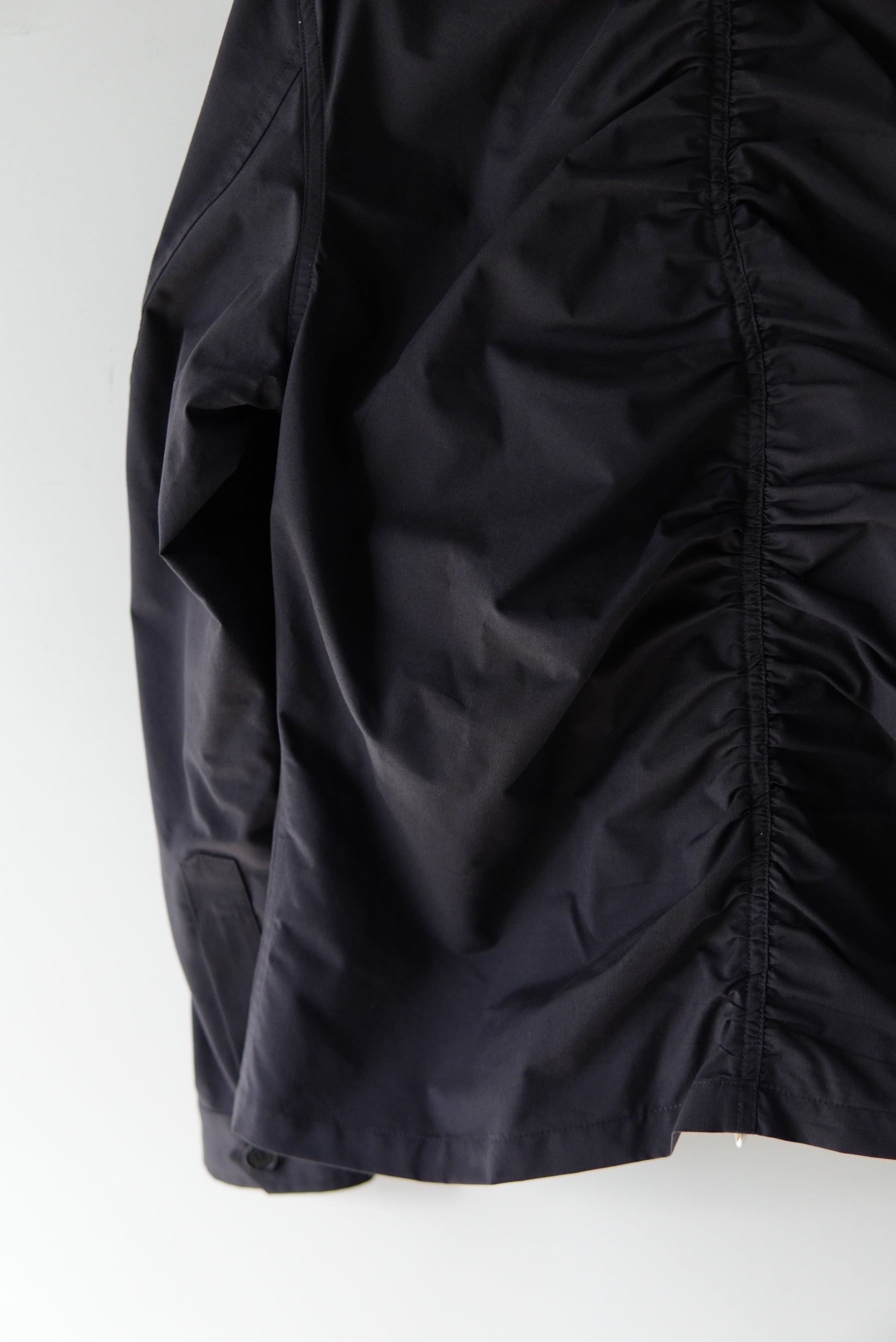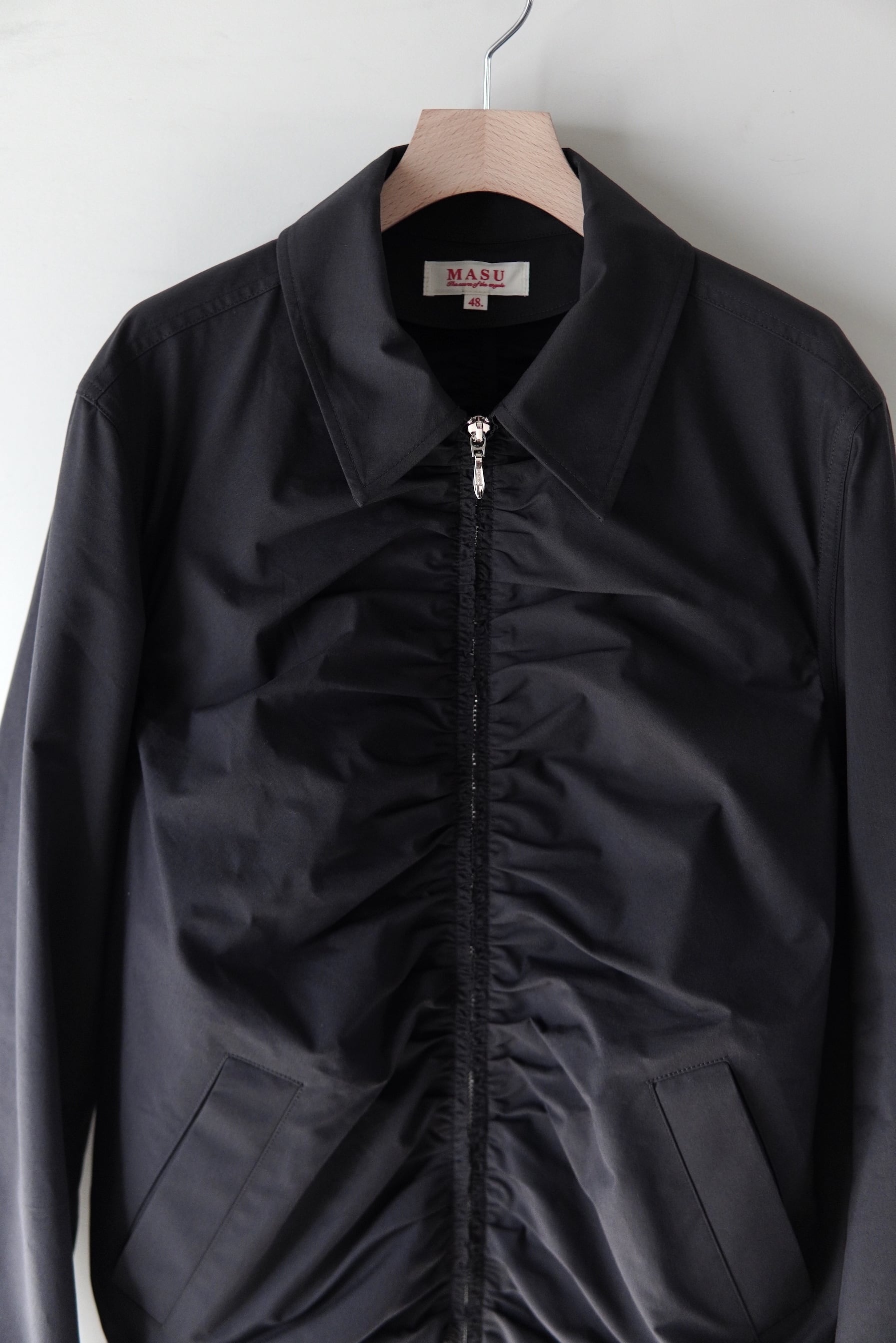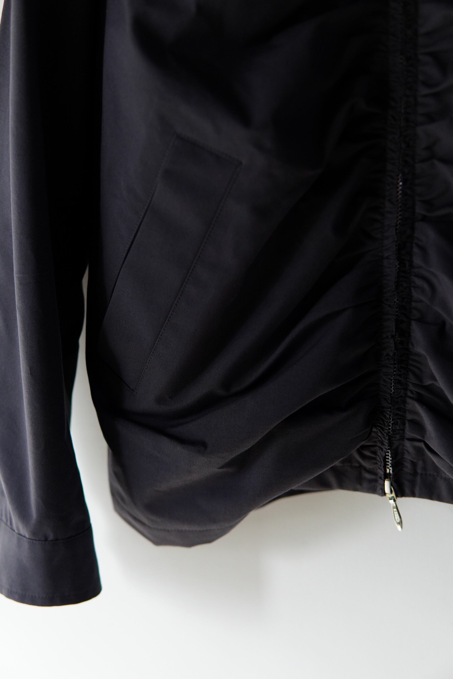スポーティな意匠をベースに、シルク特有の気品と繊細なギャザーの造形が、カジュアルの中に揺らぐエレガンスを形成している。
