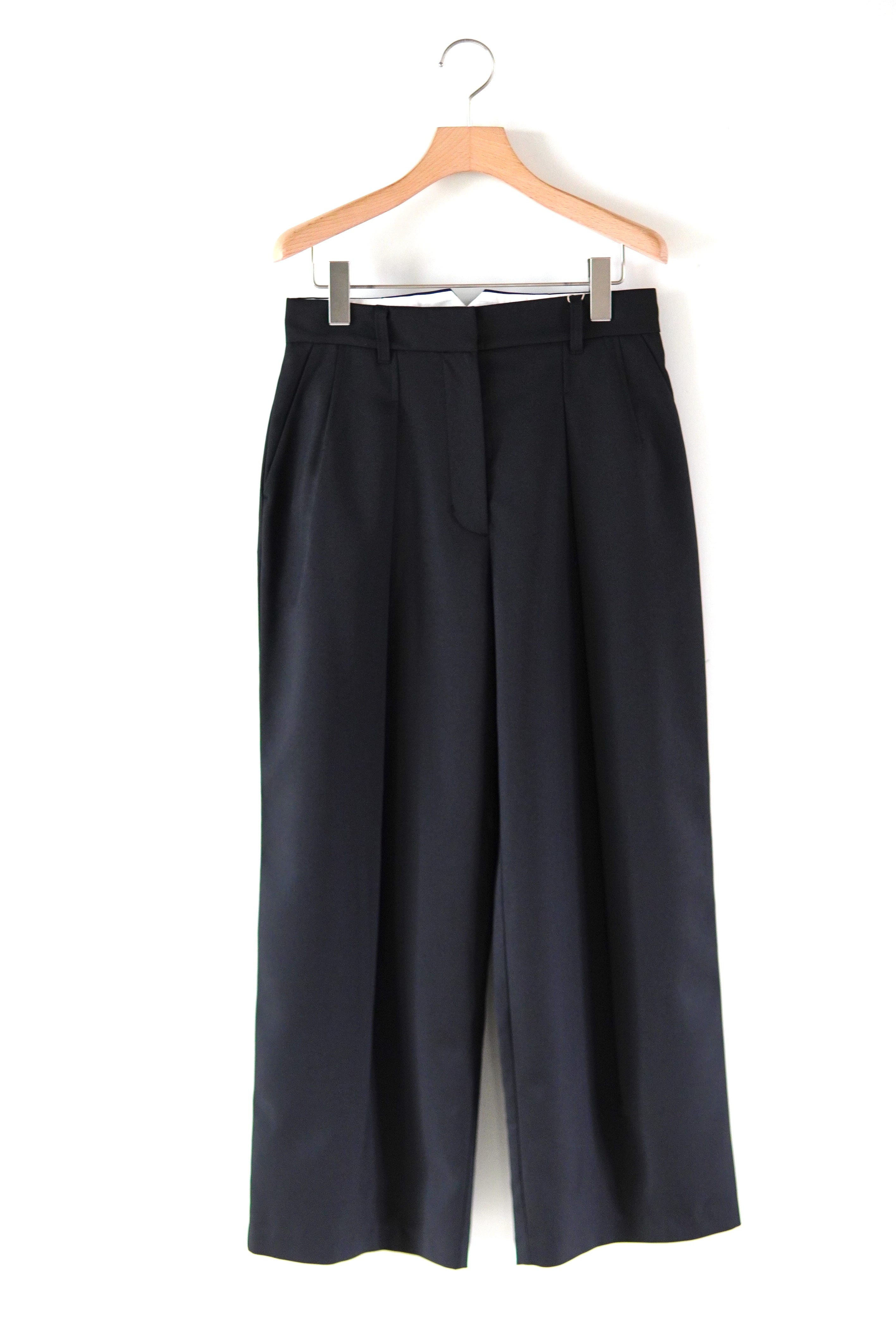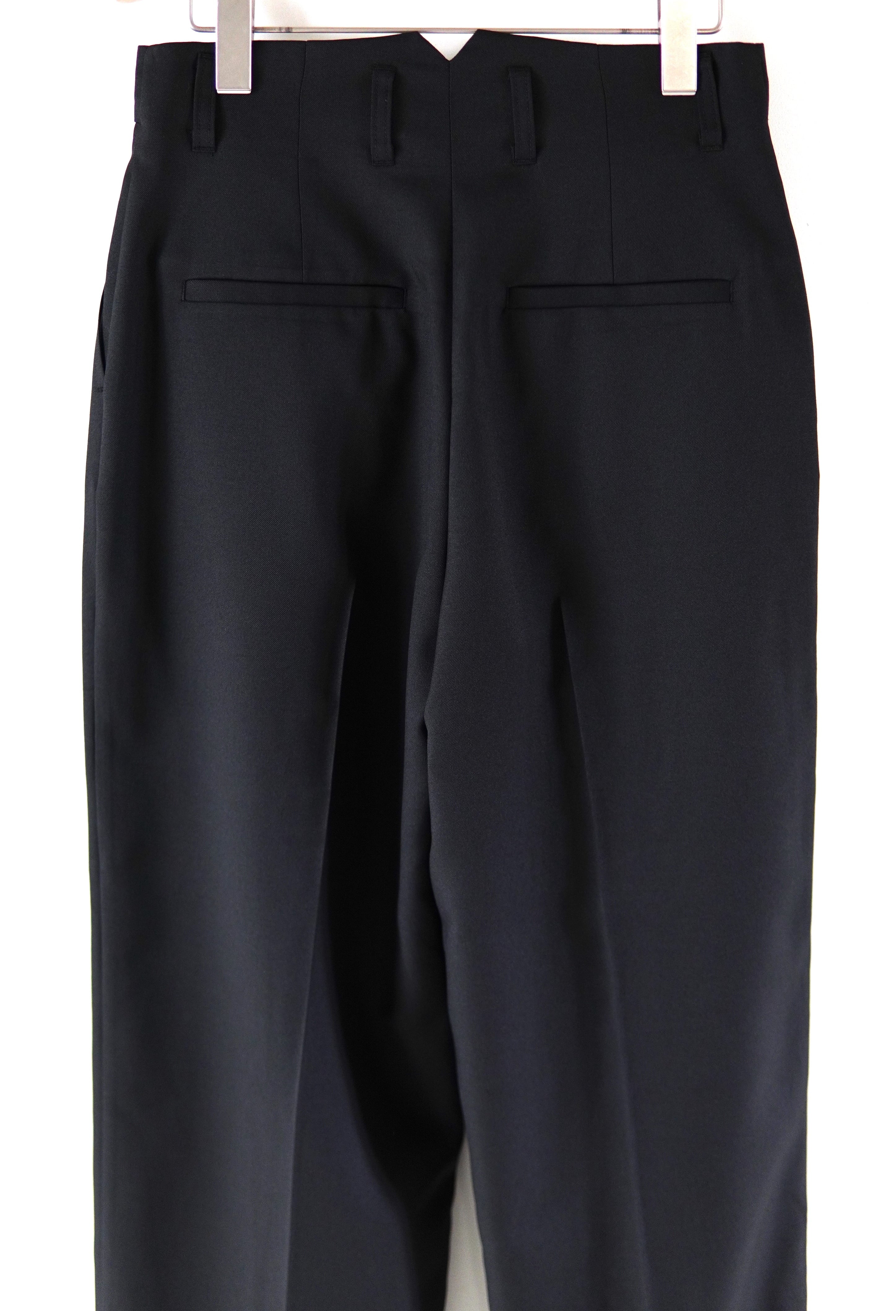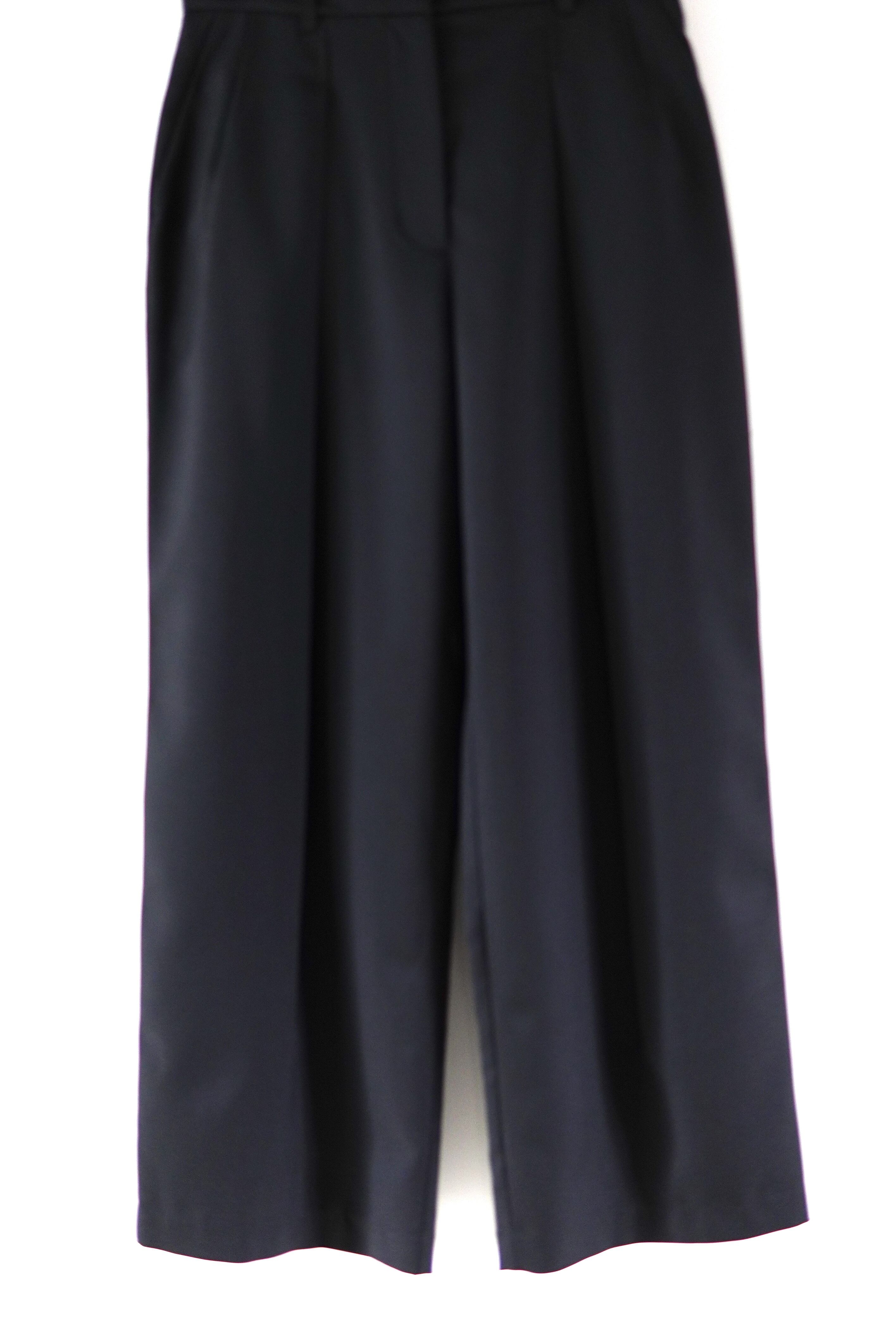 非常に軽く防しわ加工が施されたイージーケアのウール混生地を使用した2タックスラックス。 ウエストは腰骨あたりまで落とし、ゆったりとしており、裾にかけて自然に少しテーパードしたシルエットとなります。 マテリアル ポリエステル98% ウール2% サイズスペック Size 36 ウエスト/73cm ヒップ/ 98cm 股上/ 30cm もも周り/ 66cm 股下/ 68cm 裾回り/ 52cm