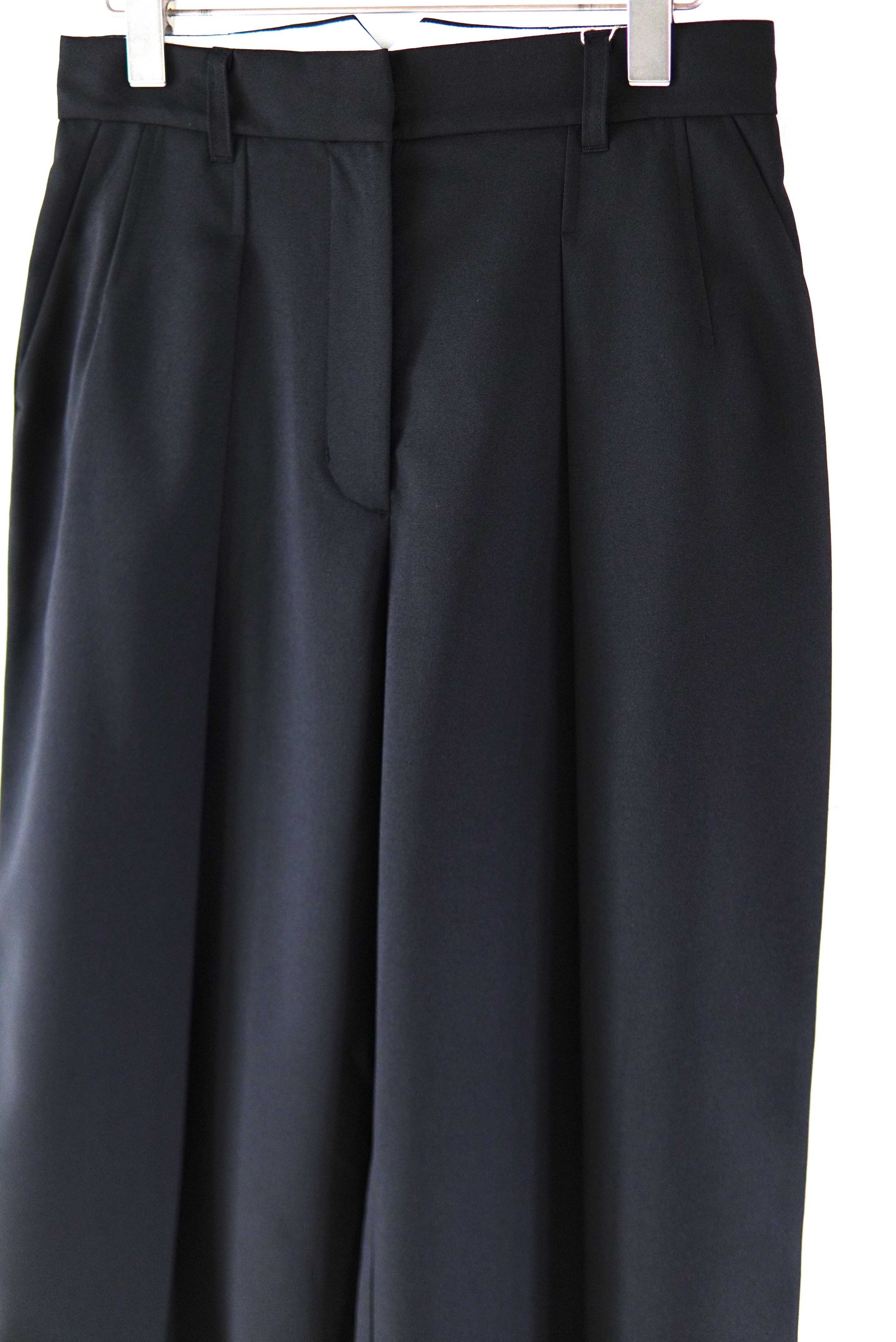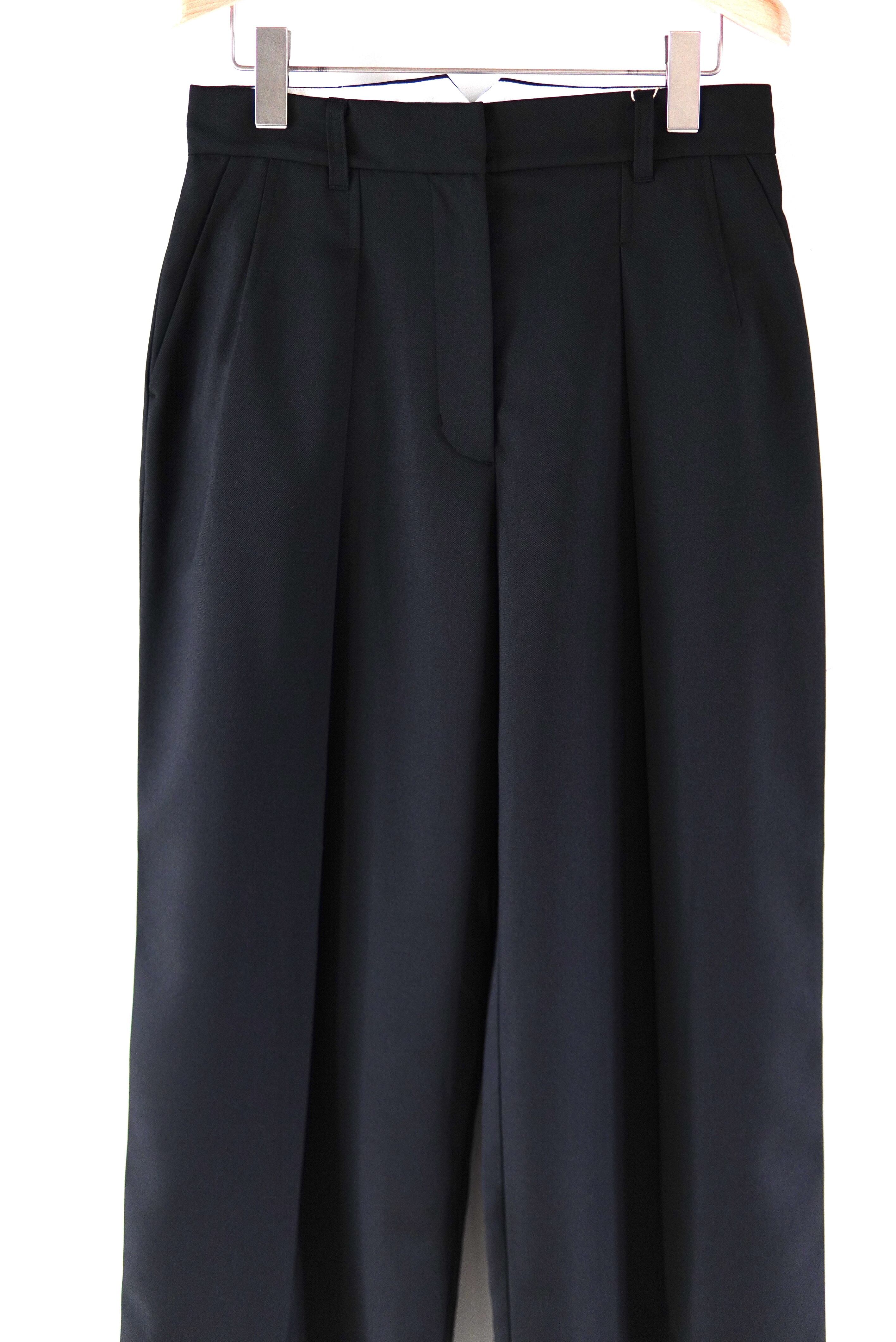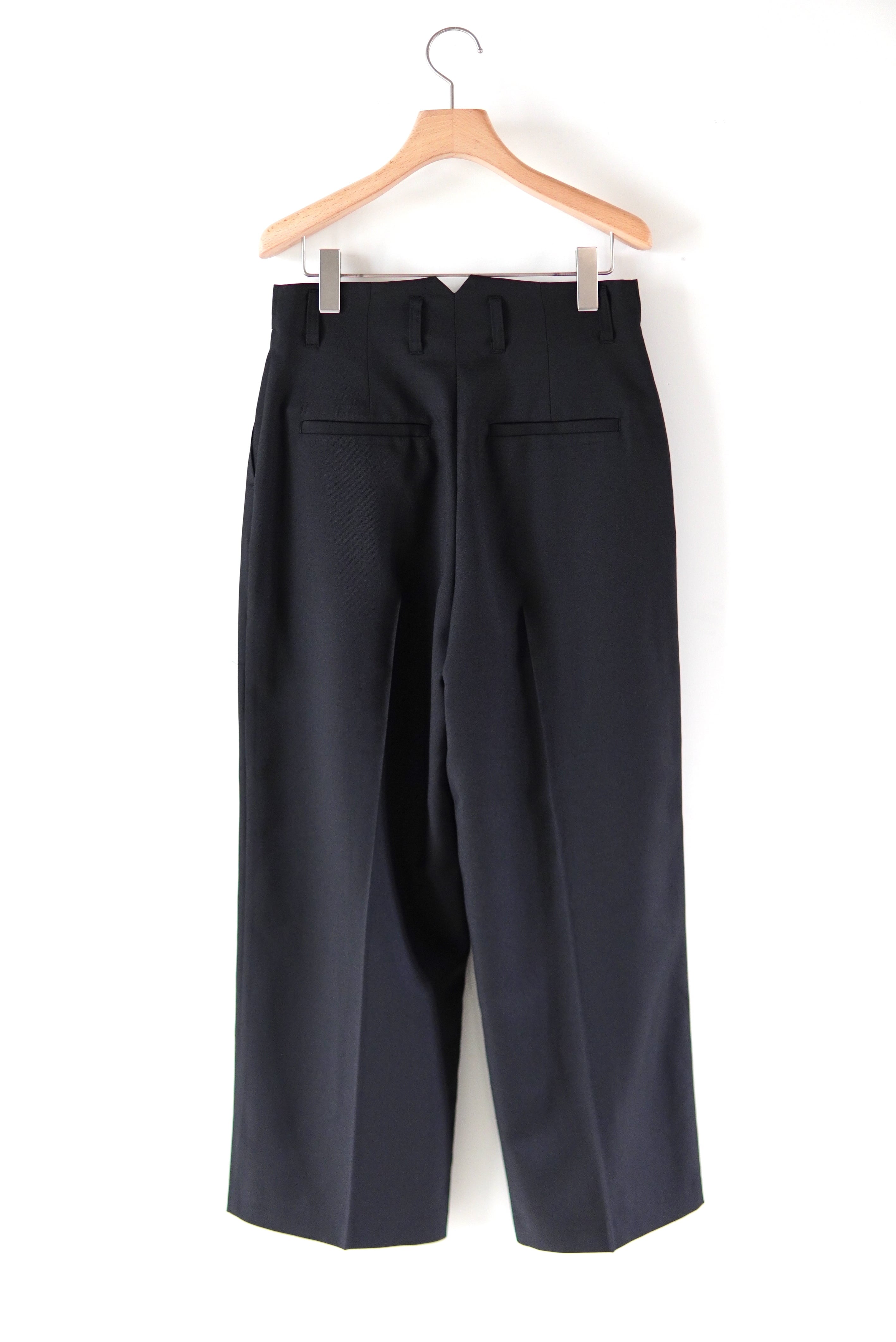 非常に軽く防しわ加工が施されたイージーケアのウール混生地を使用した2タックスラックス。 ウエストは腰骨あたりまで落とし、ゆったりとしており、裾にかけて自然に少しテーパードしたシルエットとなります。 マテリアル ポリエステル98% ウール2% サイズスペック Size 36 ウエスト/73cm ヒップ/ 98cm 股上/ 30cm もも周り/ 66cm 股下/ 68cm 裾回り/ 52cm