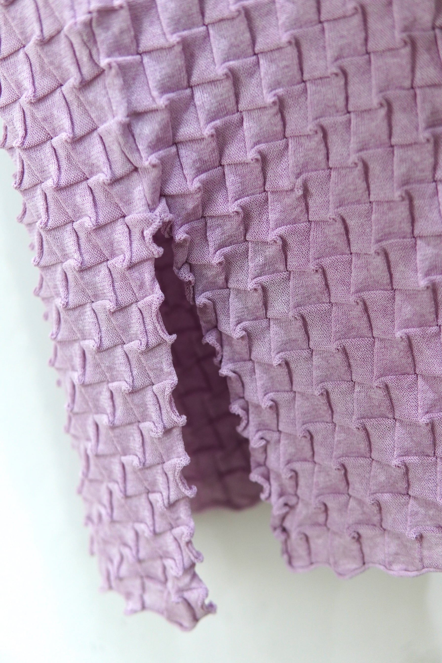 キックバック性と程よい張りを備えた素材を用い、波打つような立体感のあるテキスタイルに編み上げました。