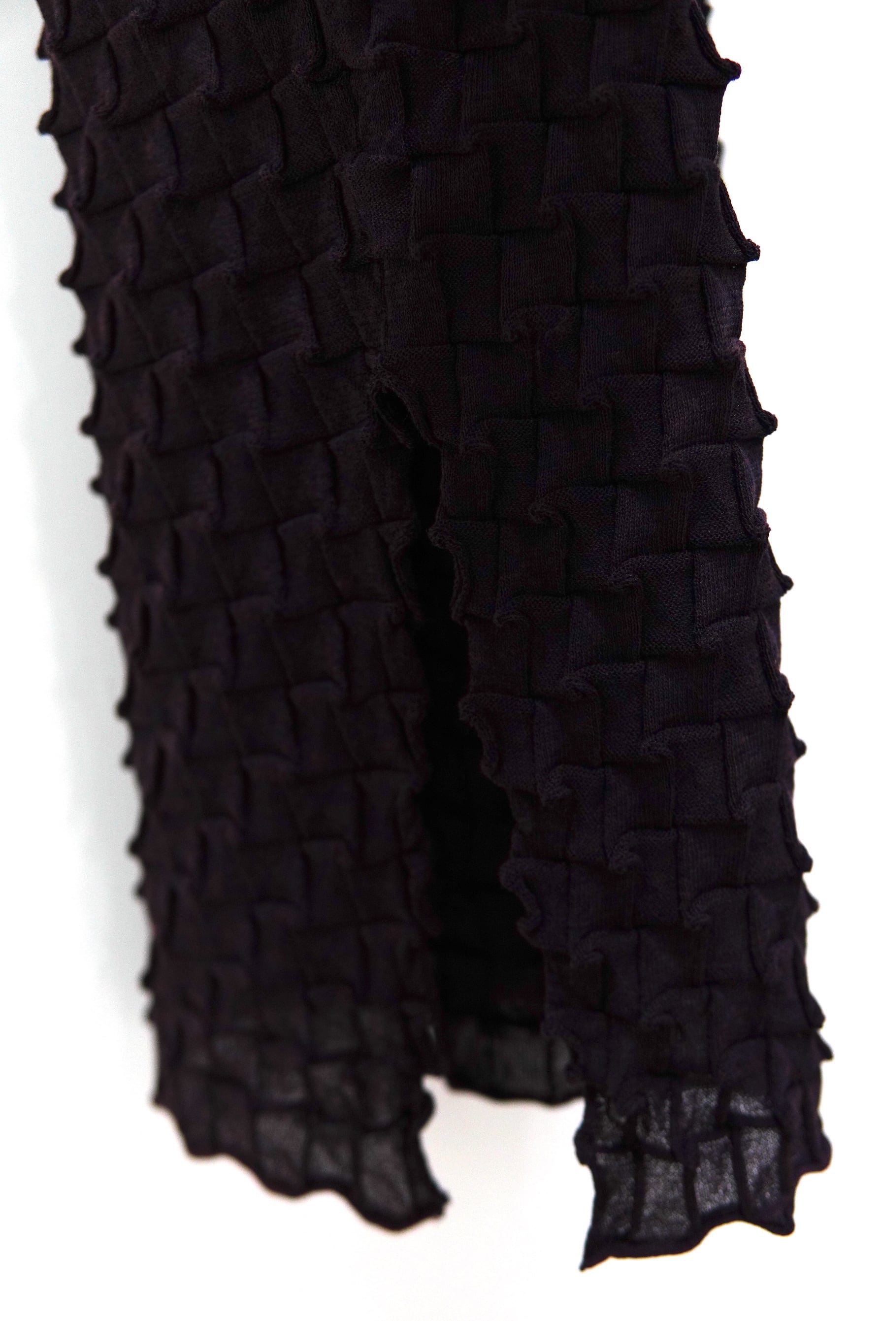 キックバック性と程よい張りを備えた素材を用い、波打つような立体感のあるテキスタイルに編み上げました。