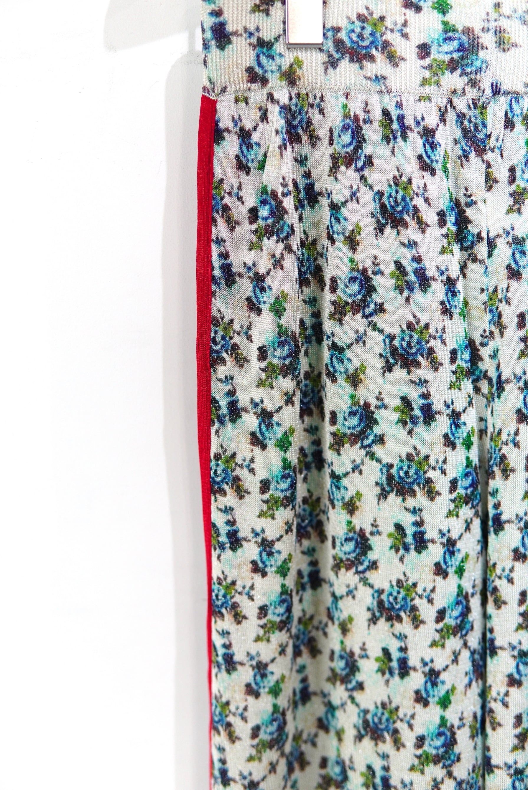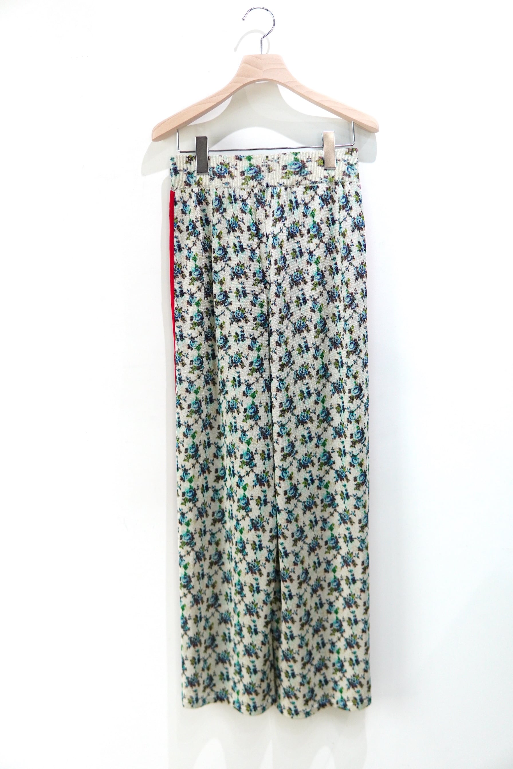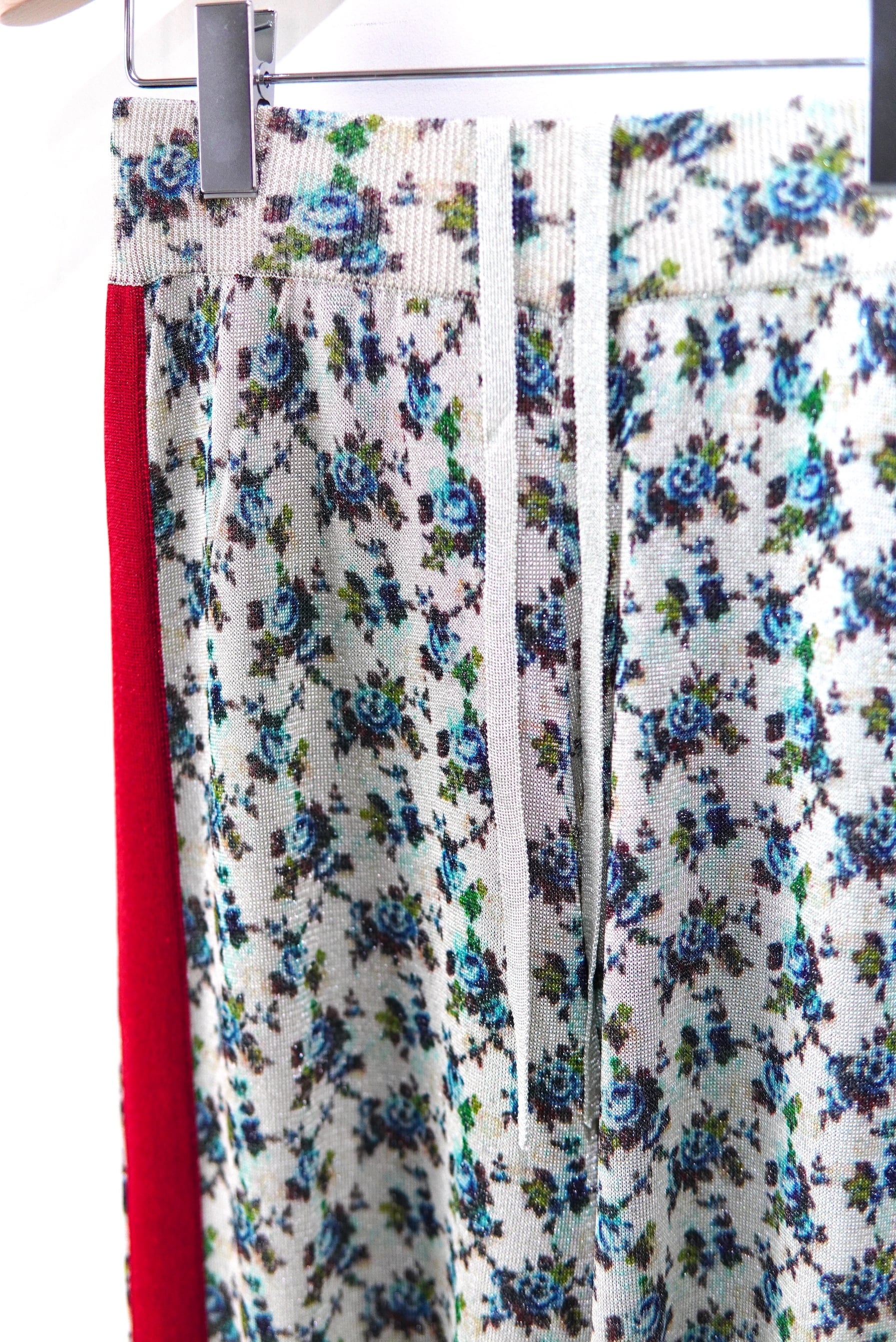 プリントはヴィンテージスカーフやテキスタイルの断片をもとに、オリジナルで描き起こした柄。 布帛にはない柔らかな落ち感とニュアンスが、スタイルに奥行きを添えます。