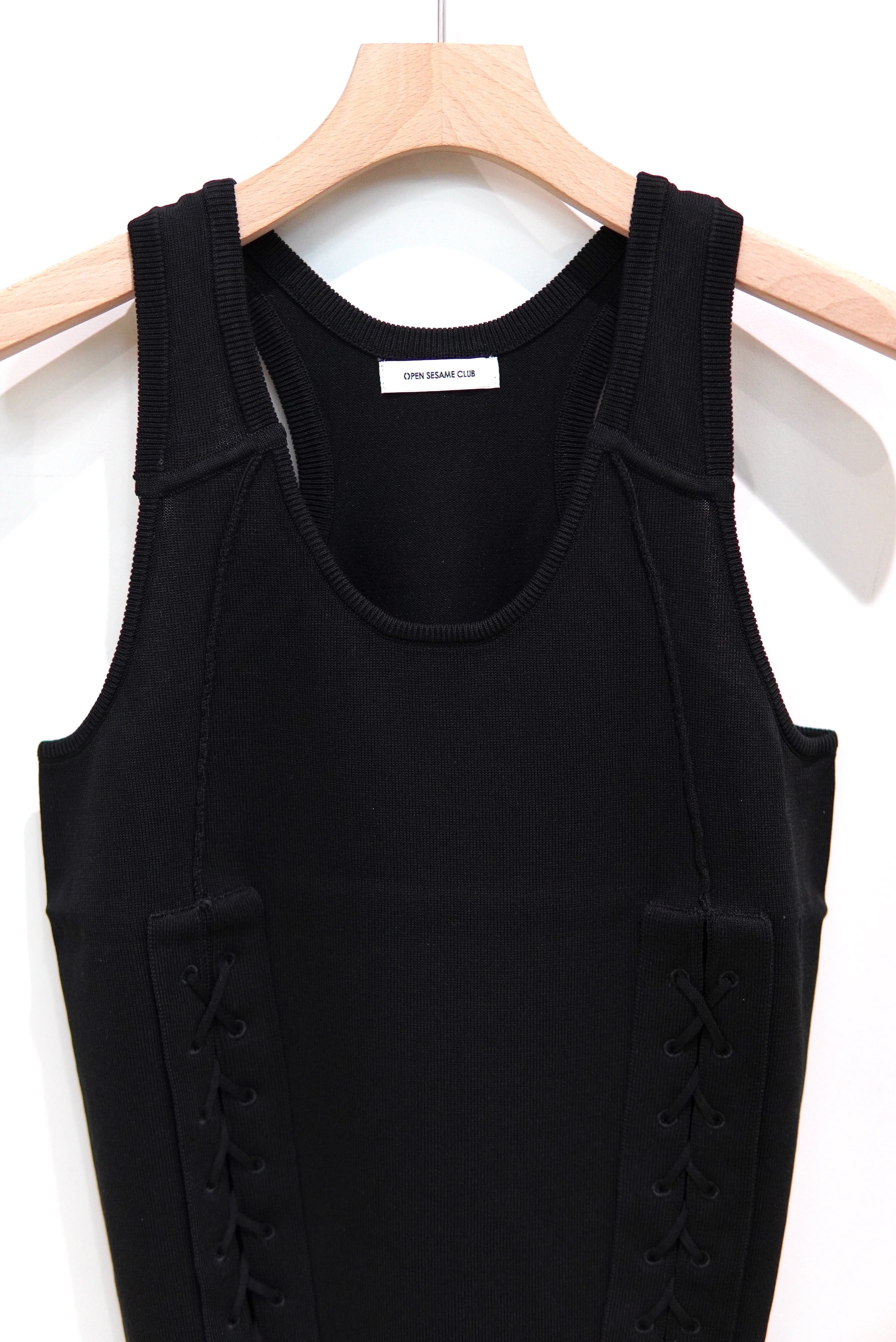 OPEN SESAME CLUB /lace-up tank top / BLACK