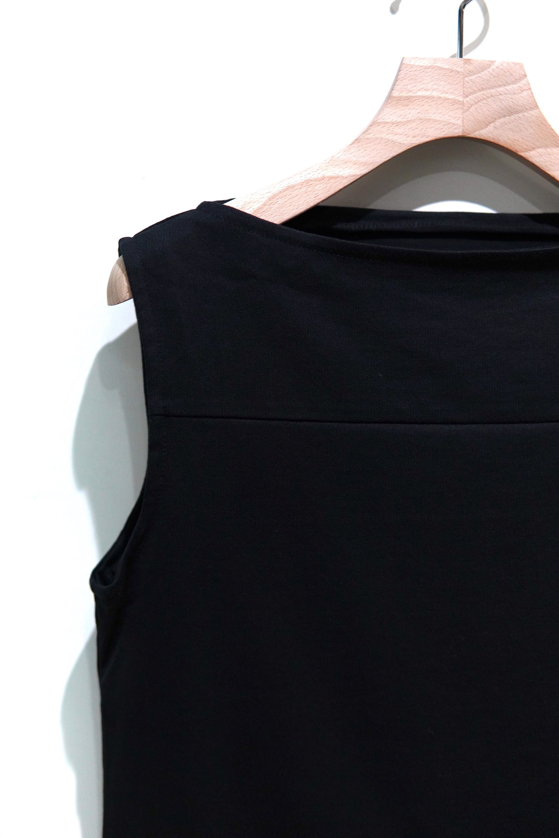 スクエアネックノースリーブのPiercing。 素材はTP02同様、40/2のコーマ糸を使用した肌触りの良い天竺を使用しています。 40番手の糸を2本撚りあわせたコーマ糸を使用し、毛羽が少なく上品でしなやかな風合いが特徴です。 MATERIAL cotton 100% FREE 着丈48cm 背肩37cm 身幅 41cm