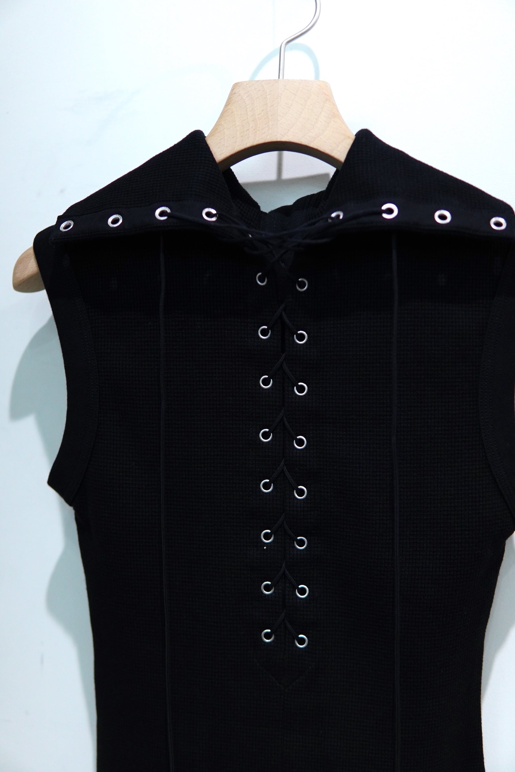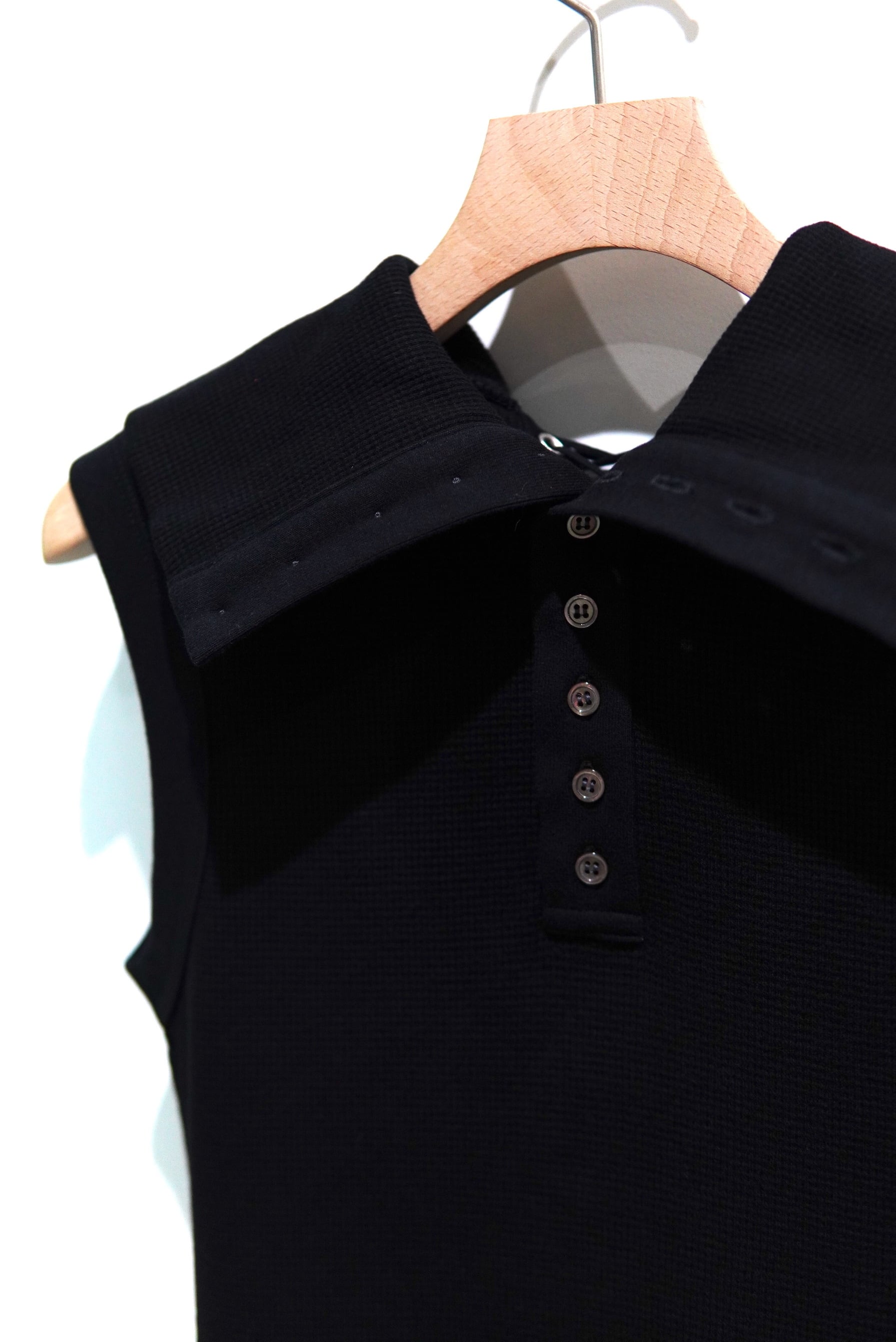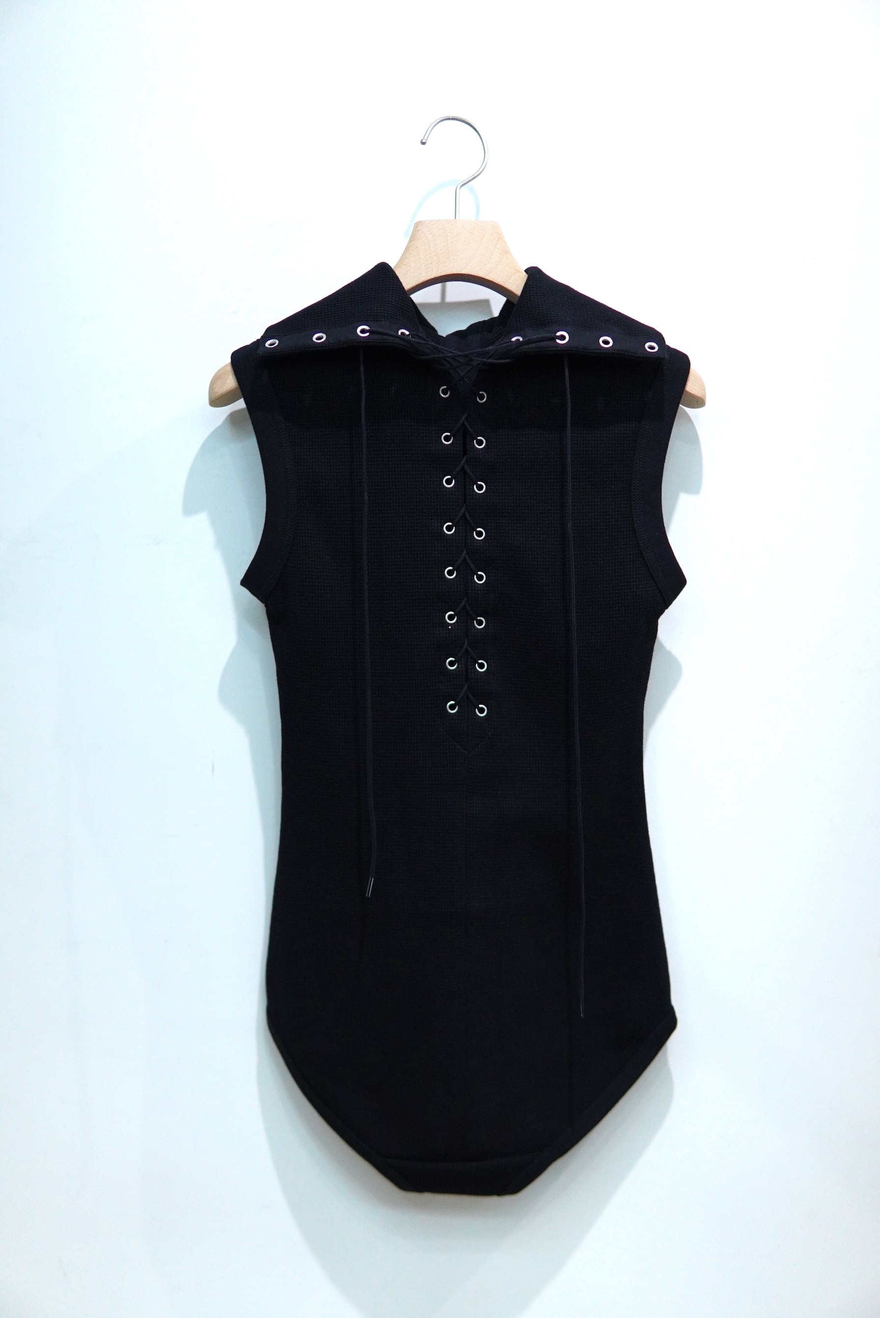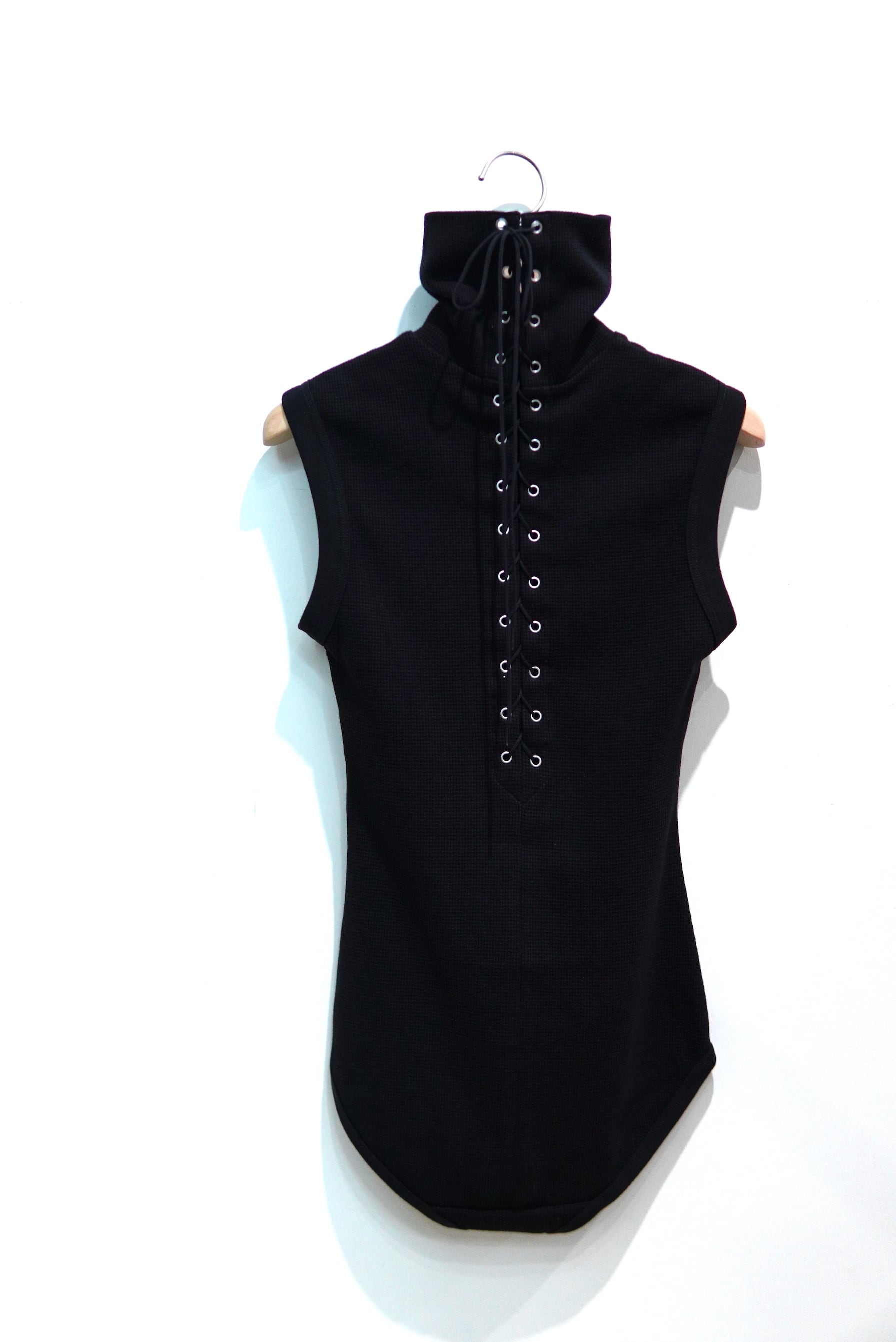 ゆったりとしたボディーにコルセットのようなディテールを重ね、解放と制御のアンバランスさを表現したTOPSです。 28Gのハイゲージ編機を使用して度詰に仕上げた綿100%で、透け感も抑えられ日常に寄り添った実用性も備えています。 細見なボディーが多いcobble du ではかなりオーバーなサイズ設定となっております。 MATERIAL CO99% PU1% FREE (サーマル素材で着やすく収縮がございます) 着丈62.2cm 身幅33cm〜 ウエスト60cm 〜