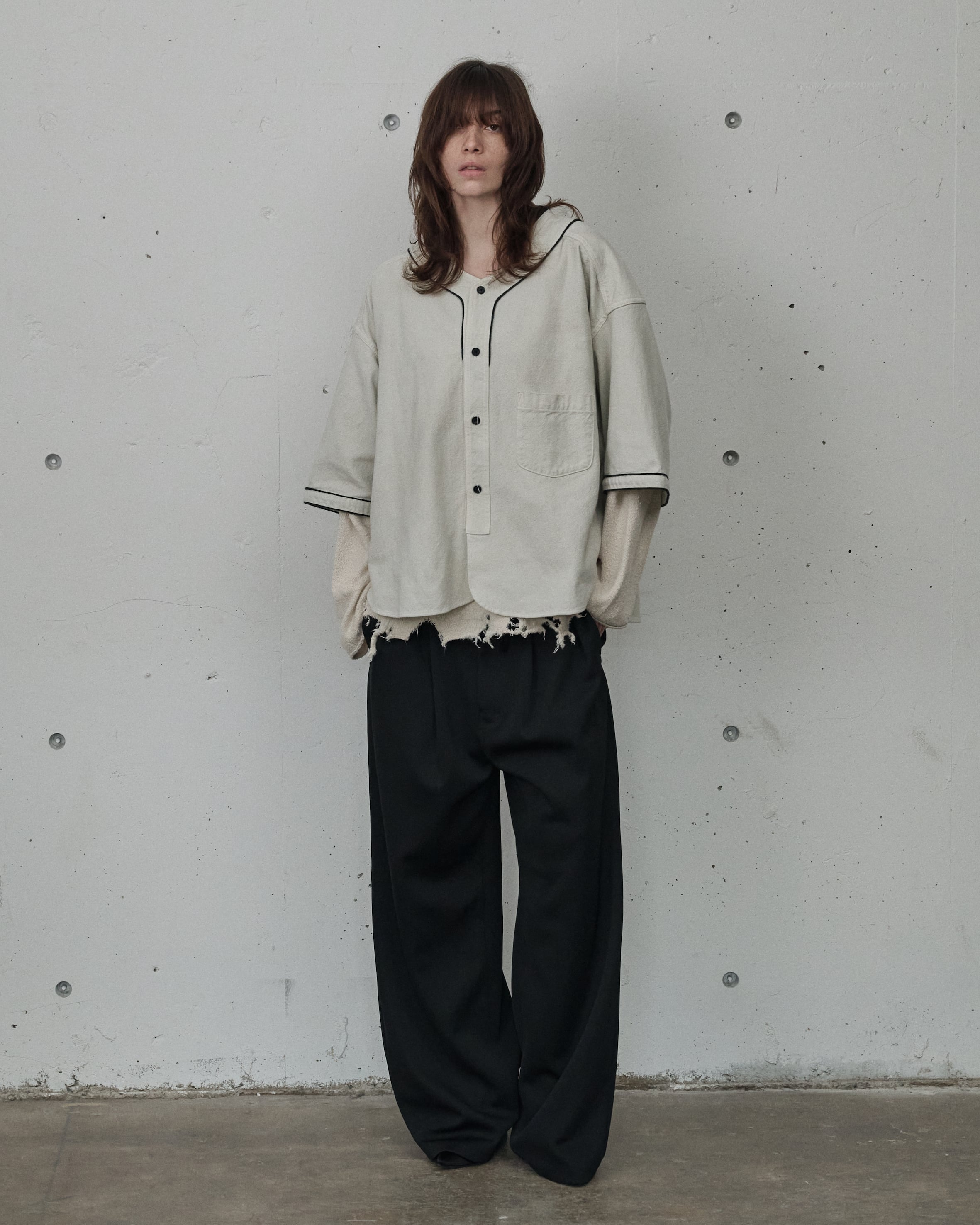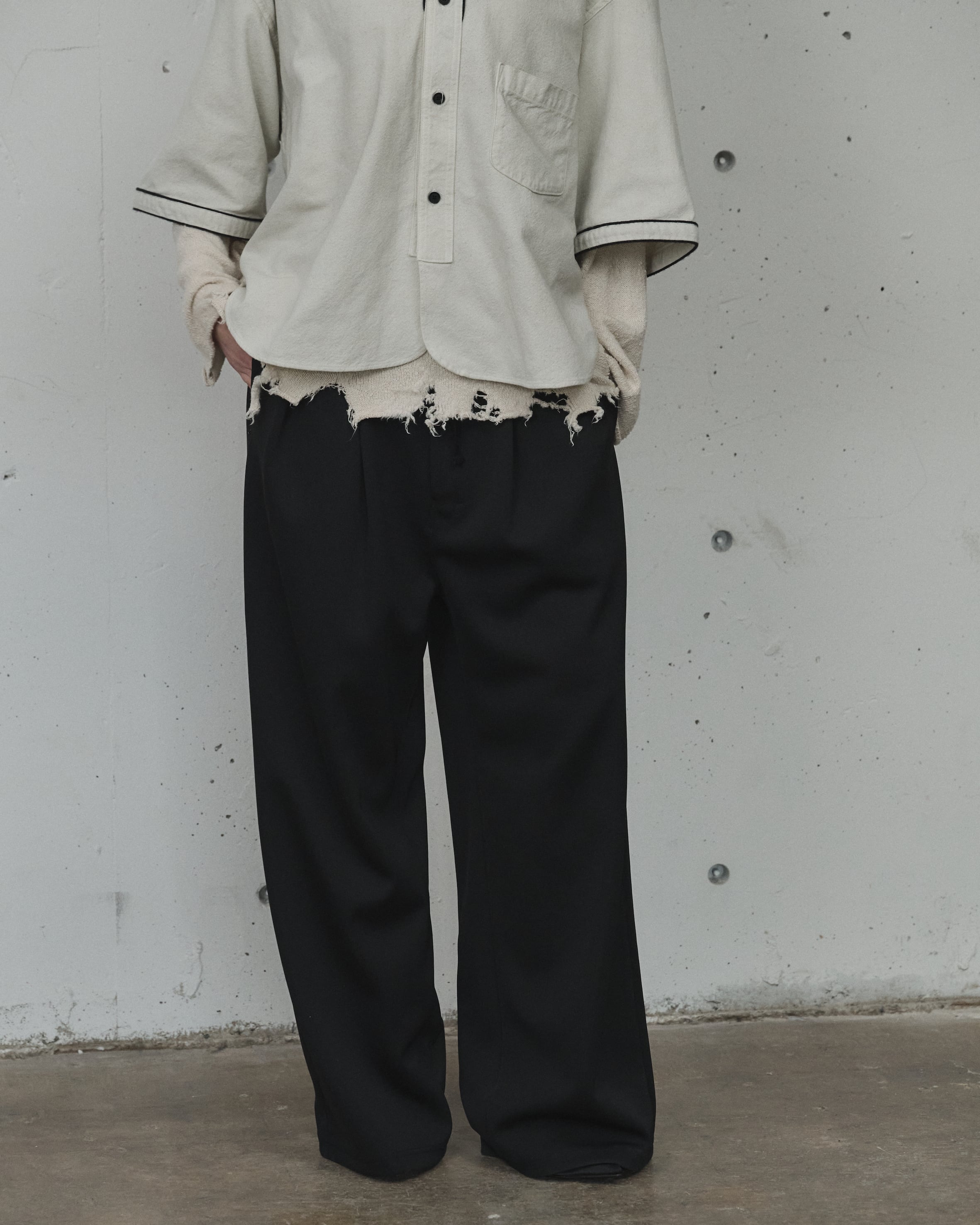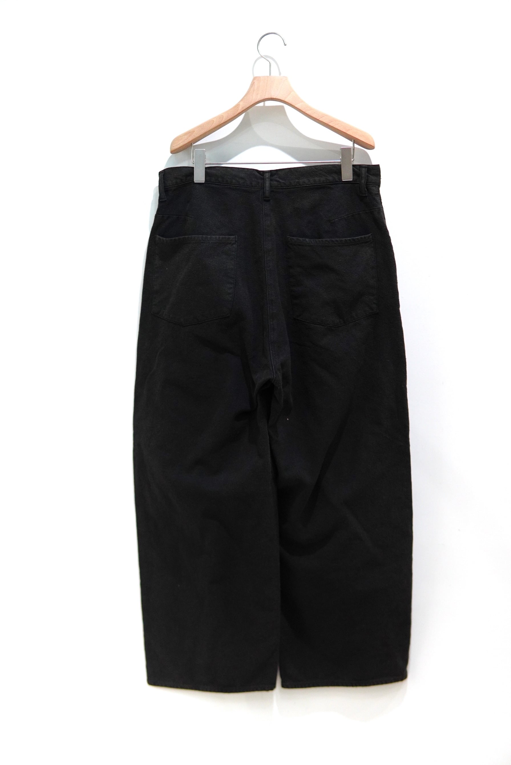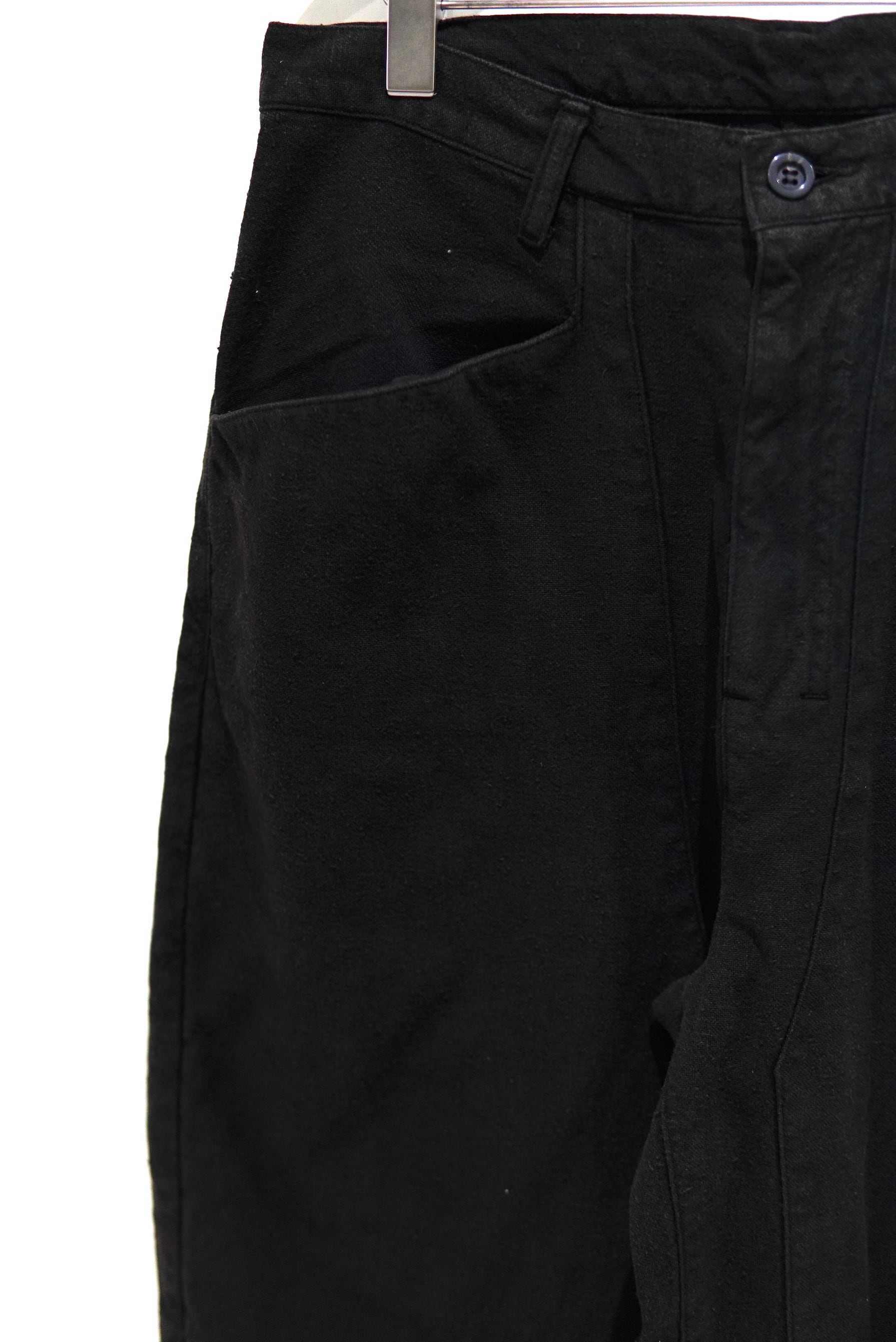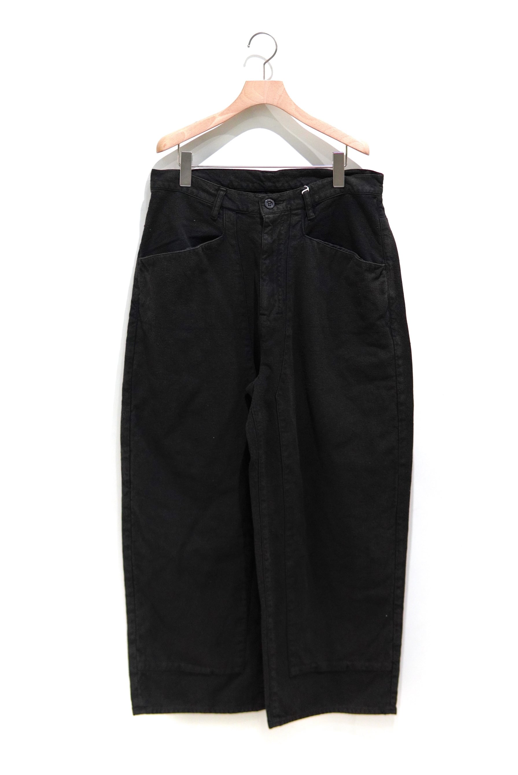 シルエットでは古い年代のペインターパンツを踏襲しながらも、スラックスのパターンを応用し、非常に綺麗な立ち姿へとアップデートしました。