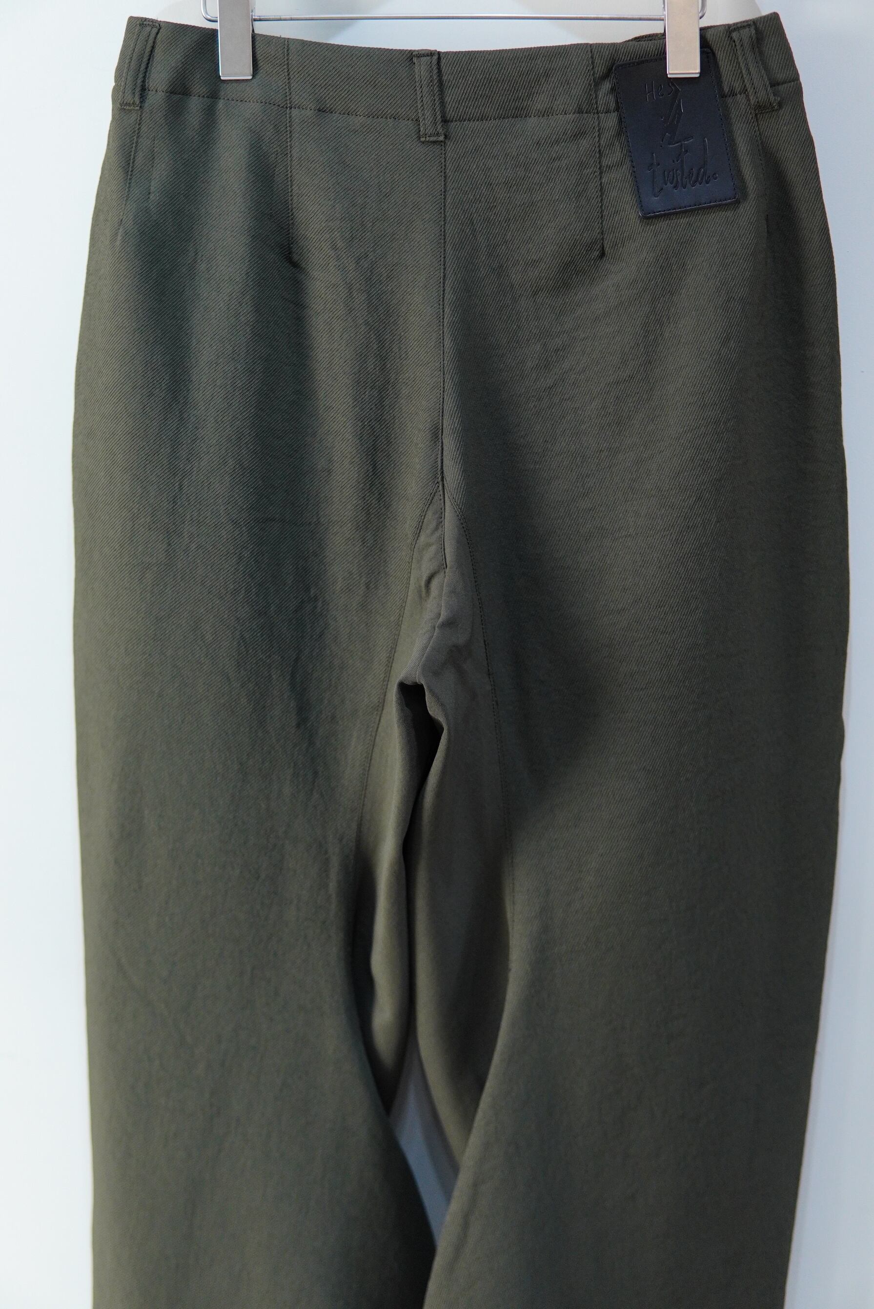 立体3面パターン構成で、 大きくネジれたフォルムを表現したツイスト/デニムパンツ。