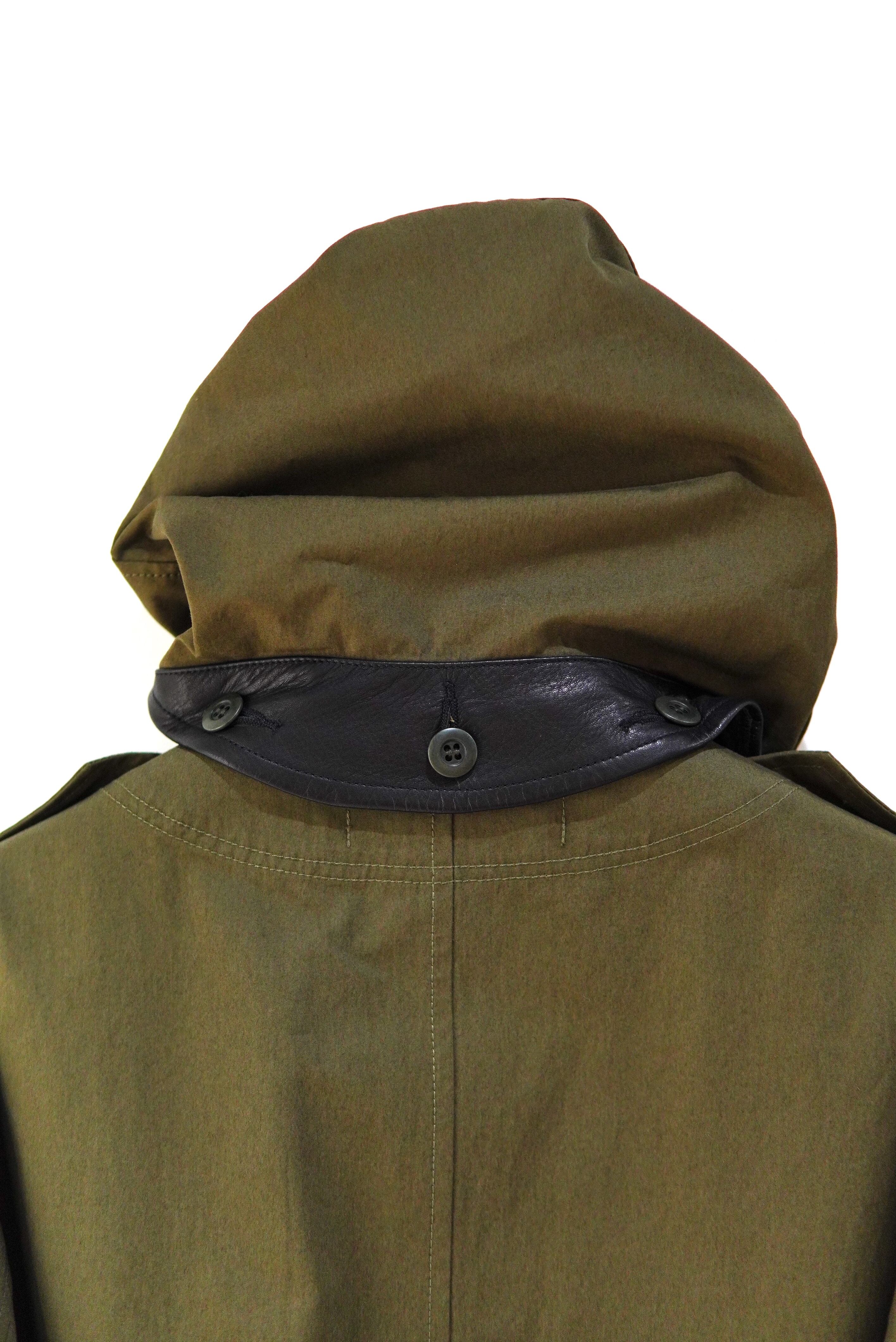 フード型ストールがドッキングされた、2WAYミリタリージャケット。