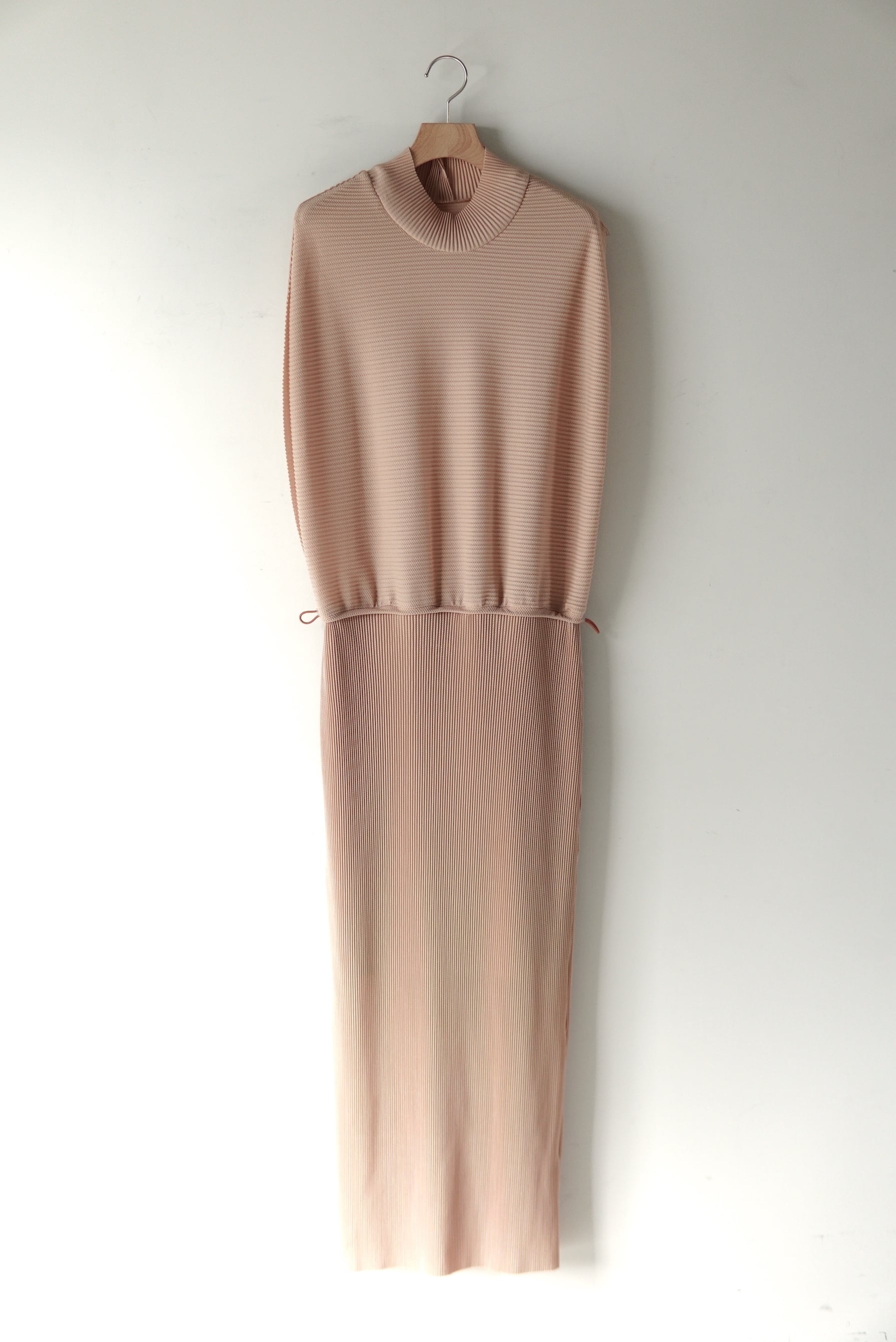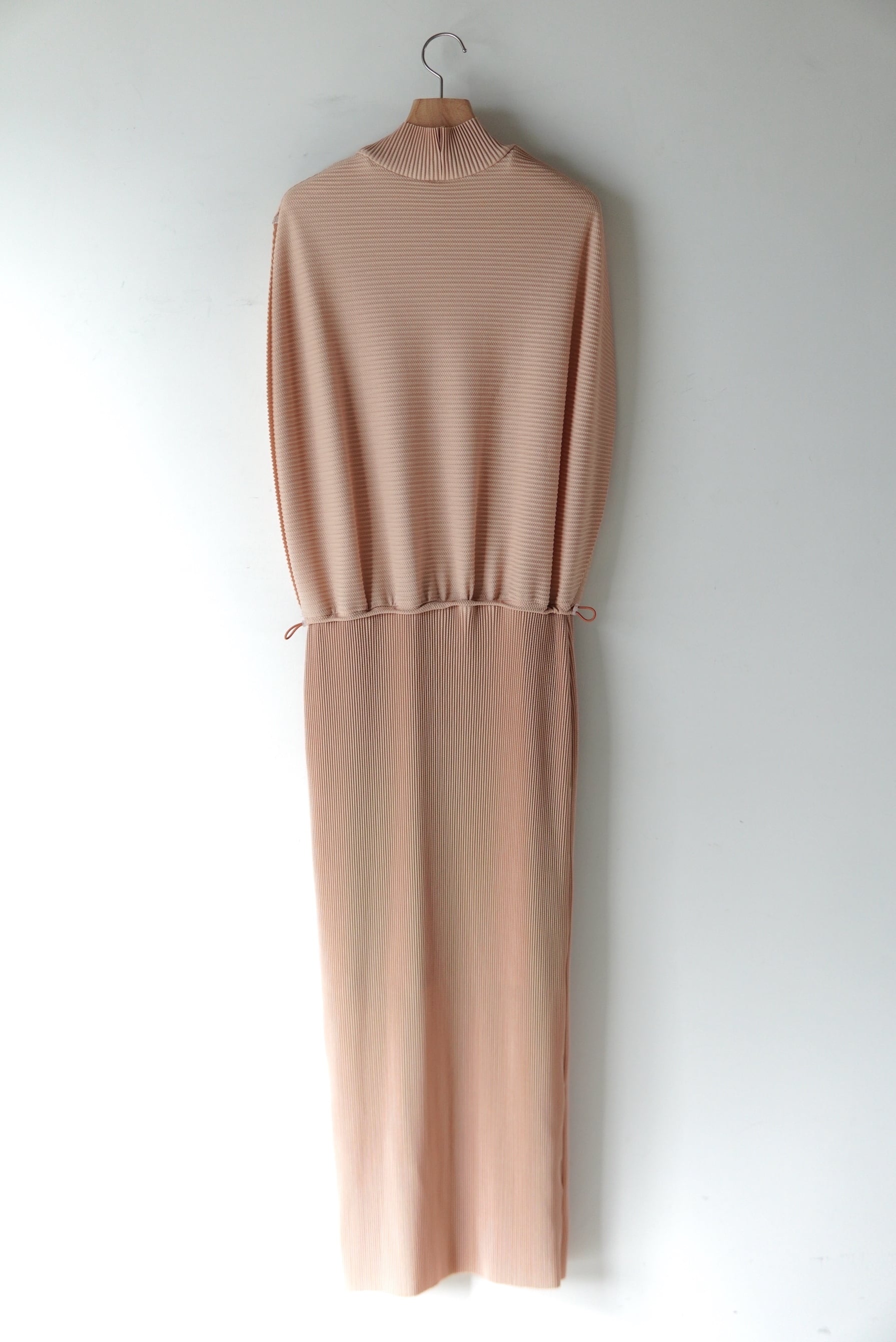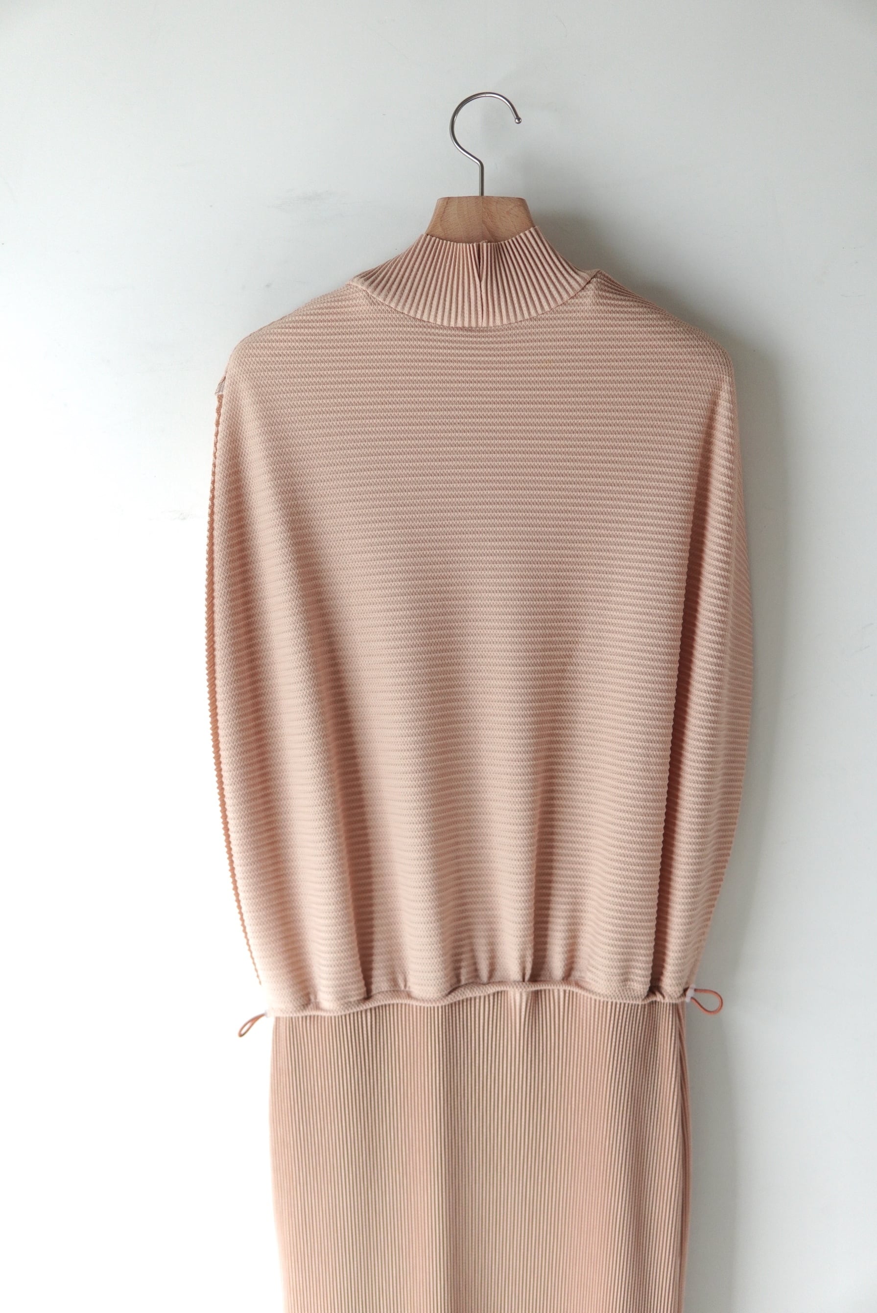 Jens 前後着用可能な定番のプルオーバー。 しっとりした滑らかな質感が特徴的なシーズンレスのプリーツ。 柔らかさがあり快適なドライ感を保つトリコット生地にプリーツを施しました。 ゴムを多用し、機能性とシルエットの変化を兼ね備えたデザイン。 水洗い可能(ネット推奨)でシワにならないため、旅行先にも持ち運べるシリーズ。 マテリアル POLYESTR 100% SIZE 1 着丈124cm 肩幅 40cm ウエスト 〜 50cm 〜コードで絞れます