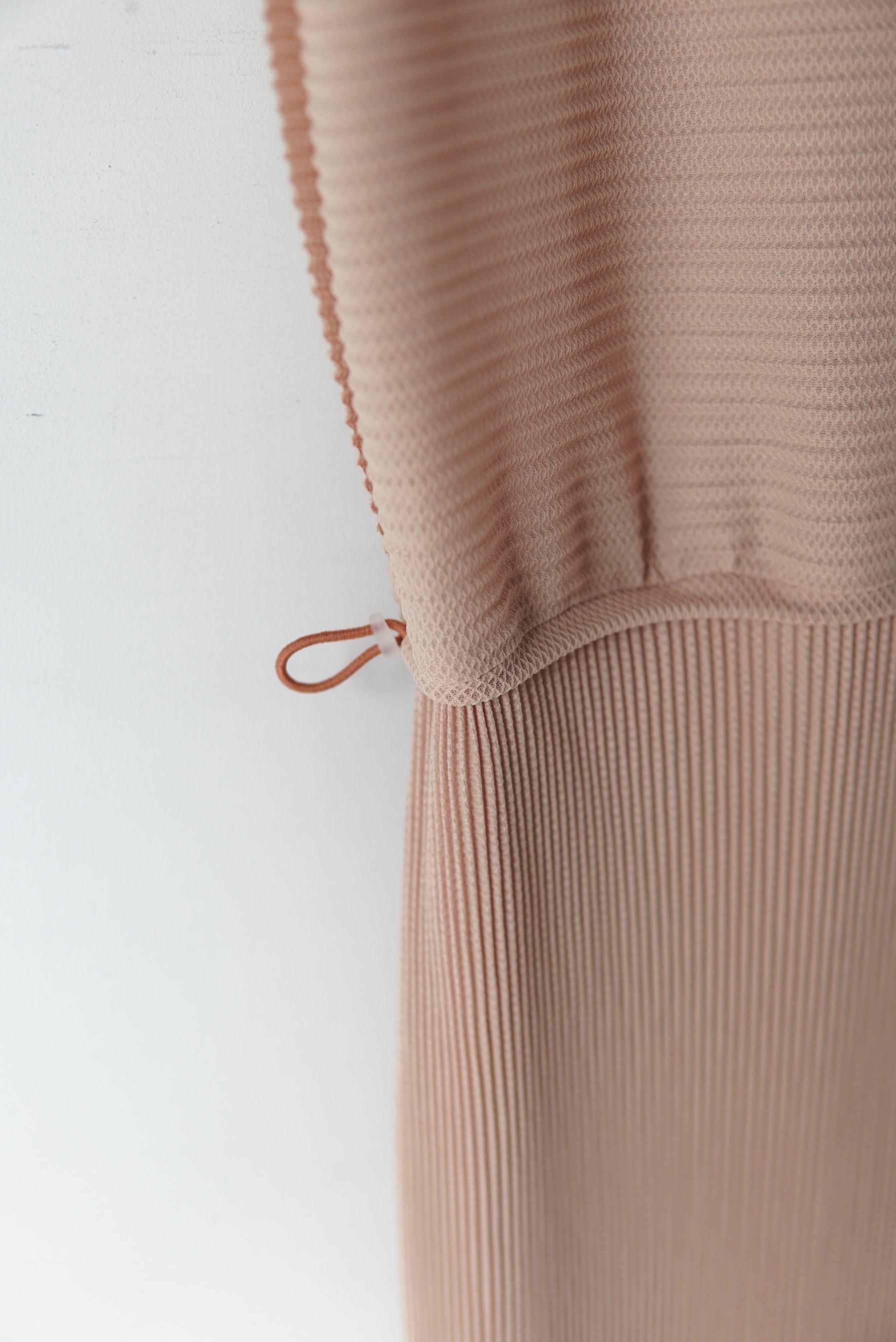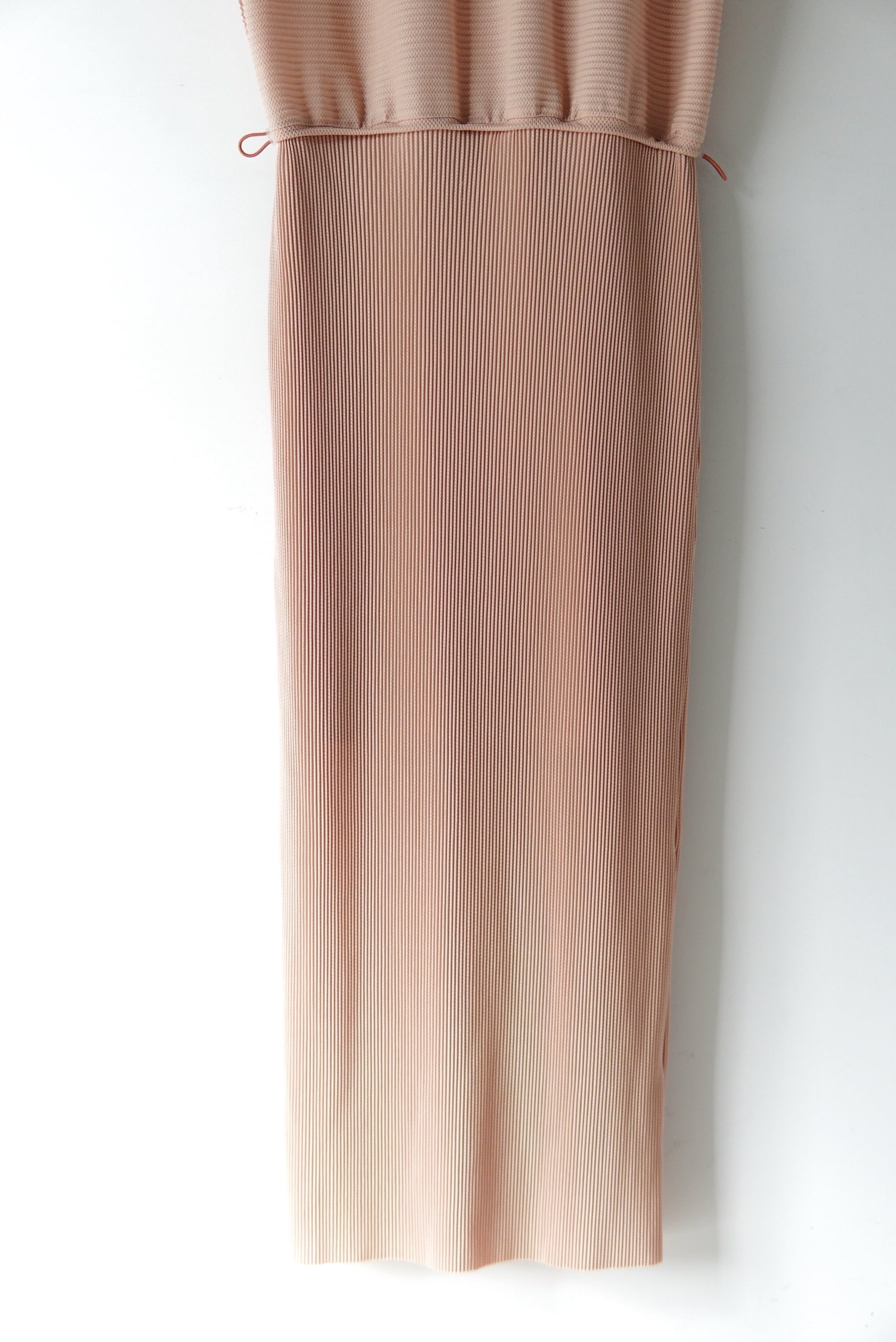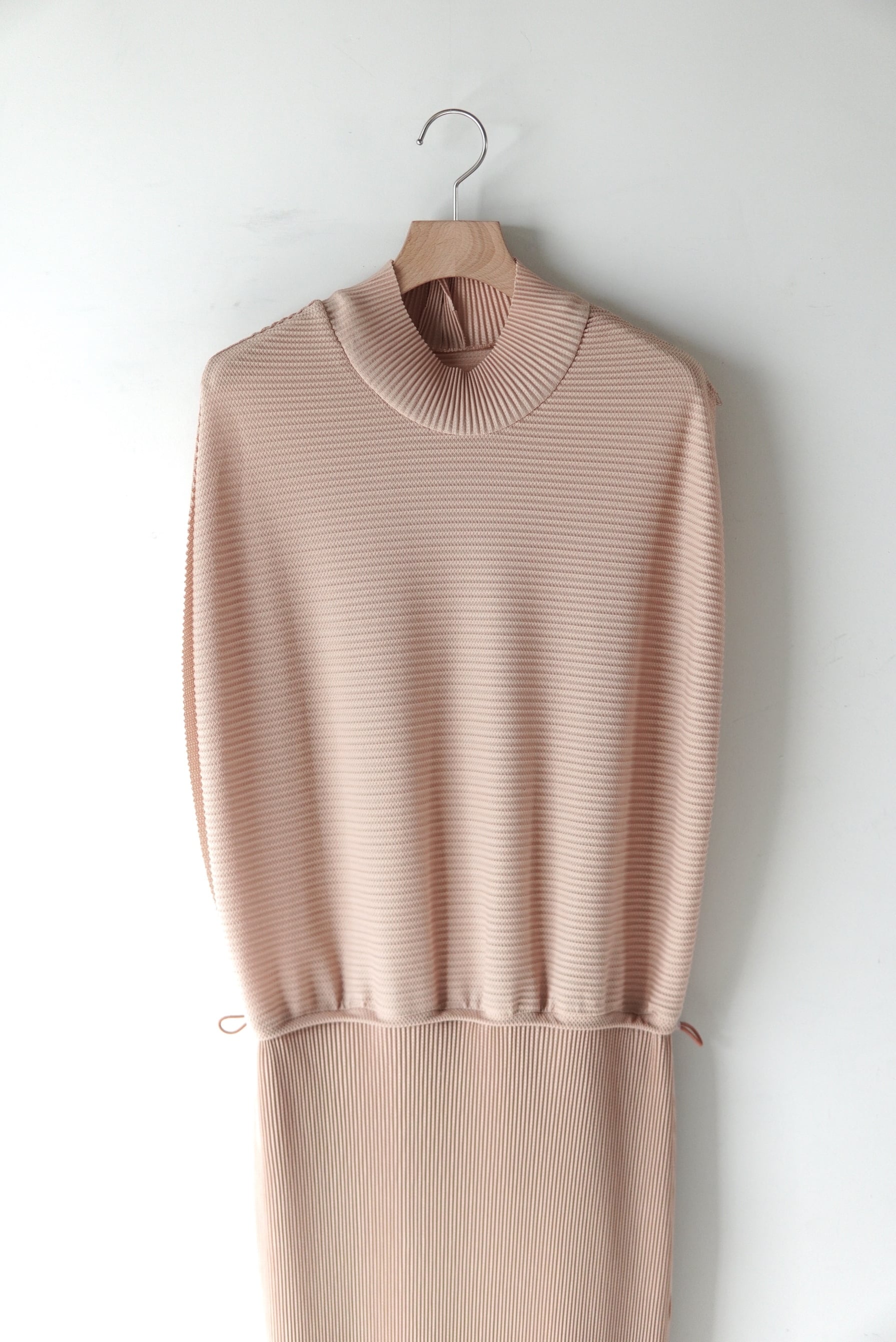 Jens 前後着用可能な定番のプルオーバー。 しっとりした滑らかな質感が特徴的なシーズンレスのプリーツ。 柔らかさがあり快適なドライ感を保つトリコット生地にプリーツを施しました。 ゴムを多用し、機能性とシルエットの変化を兼ね備えたデザイン。 水洗い可能(ネット推奨)でシワにならないため、旅行先にも持ち運べるシリーズ。 マテリアル POLYESTR 100% SIZE 1 着丈124cm 肩幅 40cm ウエスト 〜 50cm 〜コードで絞れます