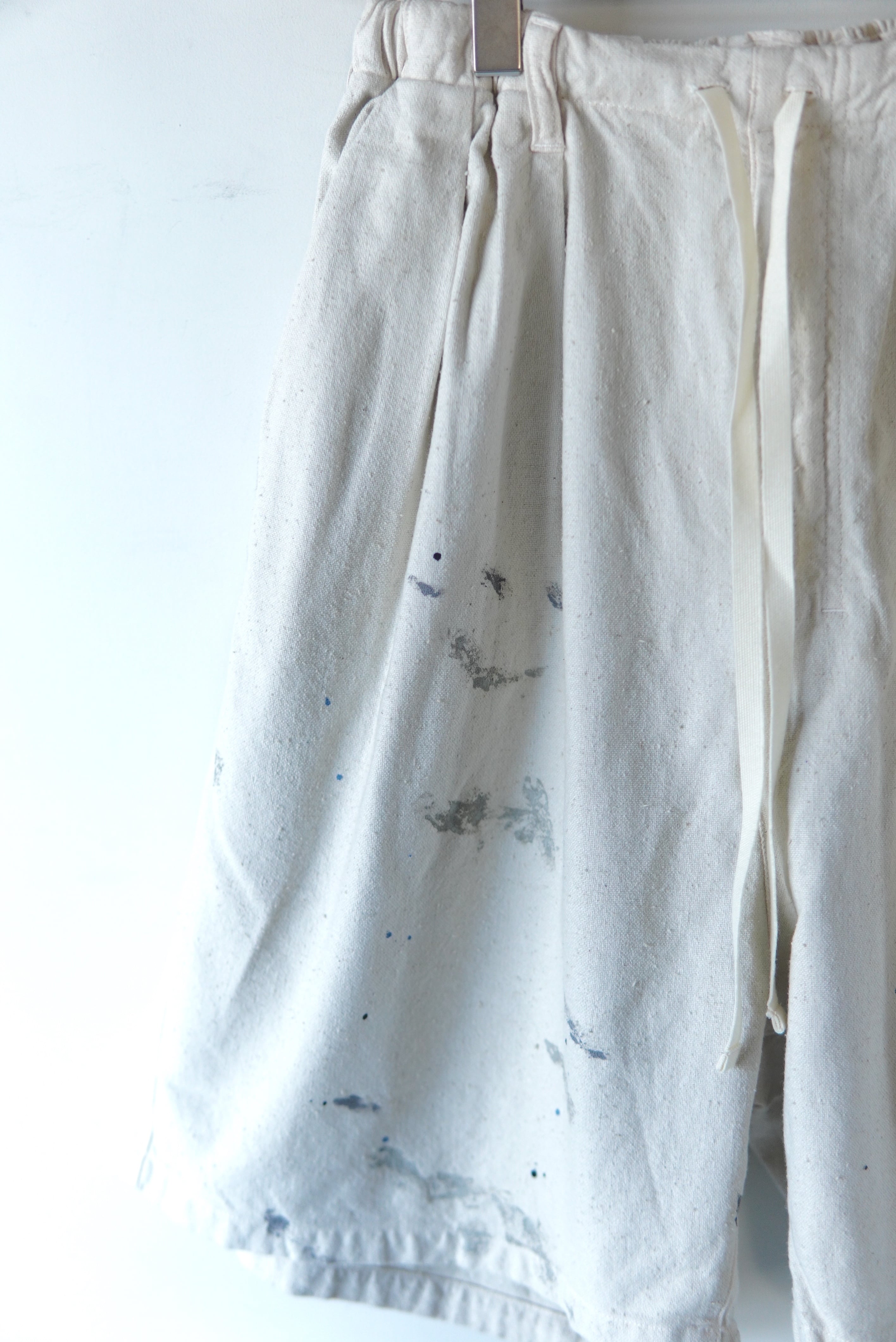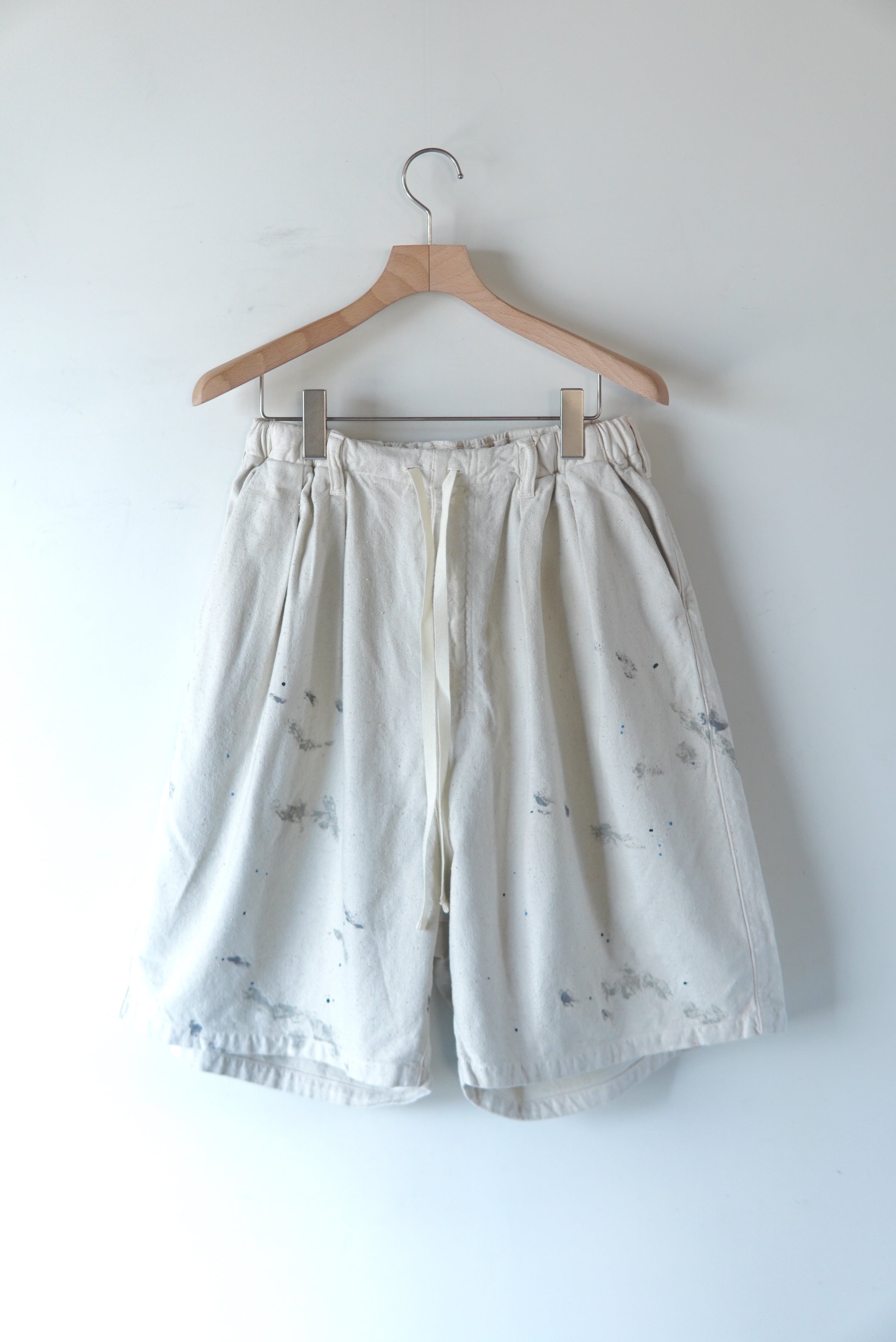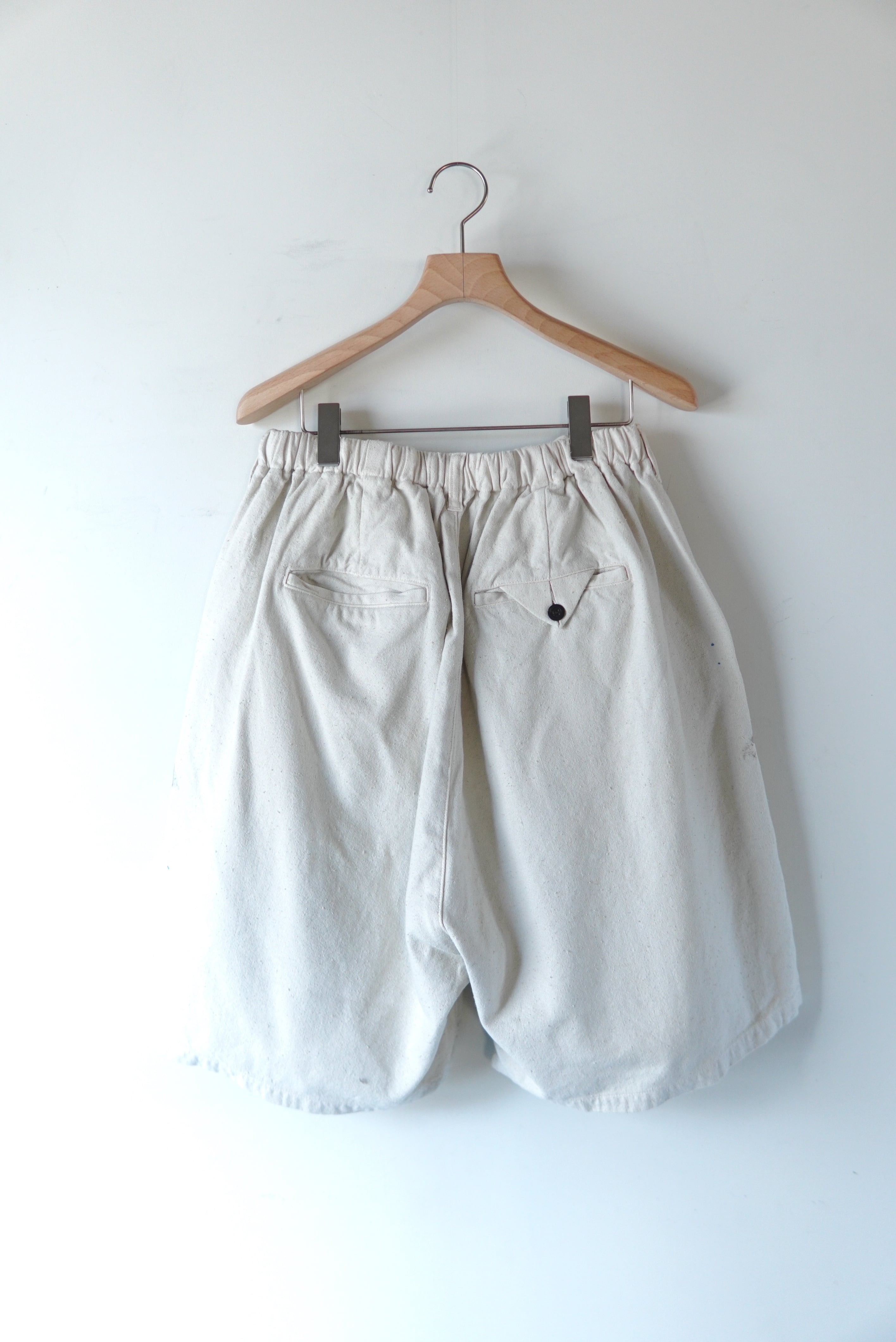 オリジナルで織り上げたダッククロスのワイドショーツ。